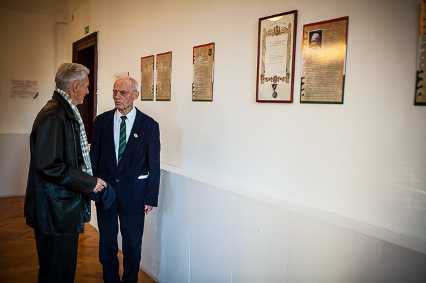 • Horváth Mariann ismerteti Szécsi Balázs életútját a kiállítás megnyitóján.