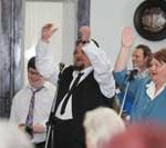 Bayer Zsolt, a FIDESZ megmondóembere volt ma a vendége a jobboldali érzelmű szarvasi közönségnek a Vajda Péter Művelődési Központ színháztermében. A mintegy 200-250 megjelent érdeklődőn kívül sokan a tévé előtt nézték végig a one man show-t., ugyanis a Körös TV élőben közvetítette azt.