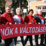 Piros sállal demonstráltak a nők jogaiért a szocialisták