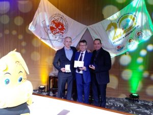 Az elfogyasztott finom vacsora után, láthattunk kettő kisfilmet a 2018-as Klub Világbajnokságról. Szép emlékeket idézett a közel negyedórányi „mozizás”! 🙂 A Világbajnoksághoz kapcsolódó szervezői, felkészítő, támogatói elismerésekből szintén kivettük részünket. Nyerges Miklós és Szitó Szabolcs együtt vehette át „A Magyar Sárkányhajó Szövetség nevében Elismerésül a kiemelkedő, közösségteremtő, felkészítő és szervező munkádért a 2018. évi 11. IDBF Klub Legénység Sárkányhajó Világbajnokság emlékére” díjat.
