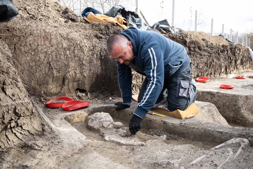 “A sírok sajátja, hogy egy kivételével mindegyik test a bal oldalára volt fektetve, fejük kelet, lábuk nyugat felé nézett, arccal dél felé fordulva. Az egy kivétel arccal északnak nézett. A sírokban találtak mind zsugorítottak voltak, úgynevezett alvó pózban lettek a sírjukba helyezve. Edénymelléklet eddig egyetlen sírból került elő. Egy felnőtt és egy gyermek sírjában a csípőn egy-egy obszidián penge volt található, ami egy temetési rítus része is lehet, vagy csak egyszerűen egy övön hordott bőr tartóba volt helyezve, ami az idők folyamán elporladt”, árulta el a leletekről a feltárást vezető régész.