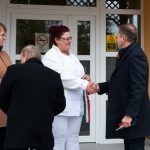 Vörösboros áfonyaszósszal és a burgonya toronyokkal tálaljuk.