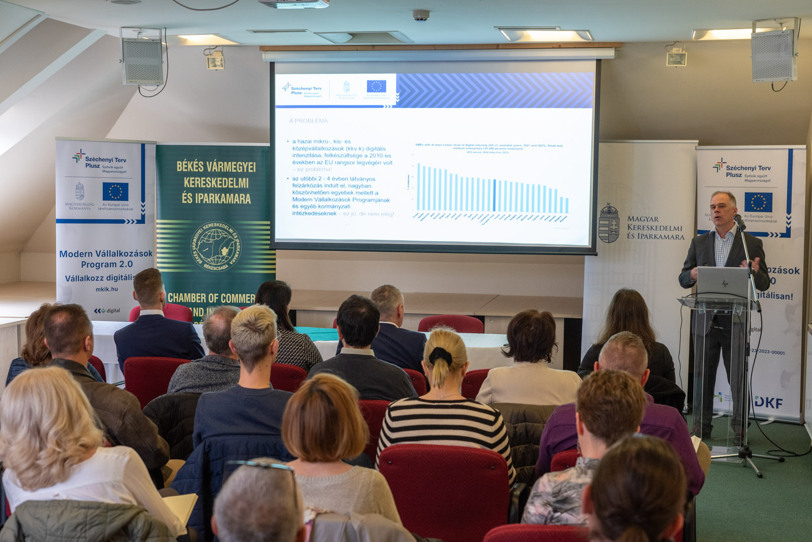 Míg a magyarok magánemberként interneteznek, vállalkozóként szinte analfabéták. Felmérések szerint a magyarok több mint 80 százaléka rendszeresen használja a netet magánemberként, azaz felteszik a gyerekek, unokák sikereit, de vállalkozóként mintha elfelejtenénk, hogyan is működik a közösségi média, a saját sikereikről, újításaikról nem számolnak be. Ez viszont hiba, hiszen a leendő ügyfelek 67%-a azokban a vállalkozókban bízik, akik megjelennek a világhálón. A Digitális innovációk kisvállalkozók számára Források, eszközök, lehetőségek címmel szakmai fórumon az is kiderült, hogy a leendő ügyfelek a honlapokat, közösségi oldalakat böngészik elsősorban, 81% a vásárlás előtt megnézi a neten, mit lehet tudni a szolgáltatásról, termékről. A programon, amelyet a Magyar Kereskedelmi és Iparkamara Modern Vállalkozások Program 2.0 projektje szervezte a Békés Vármegyei Kereskedelmi és Iparkamara közreműködésével, kiderült, számos finanszírozási forma elérhető most a kis- és középvállalkozások számára, hogy megjelenjenek vagy éppen jól jelenjenek meg az interneten. Ezekről is tájékoztatást kaptak a fórumon résztvevők kedden a Békés Vármegyei Kereskedelmi és Iparkamara székházában.