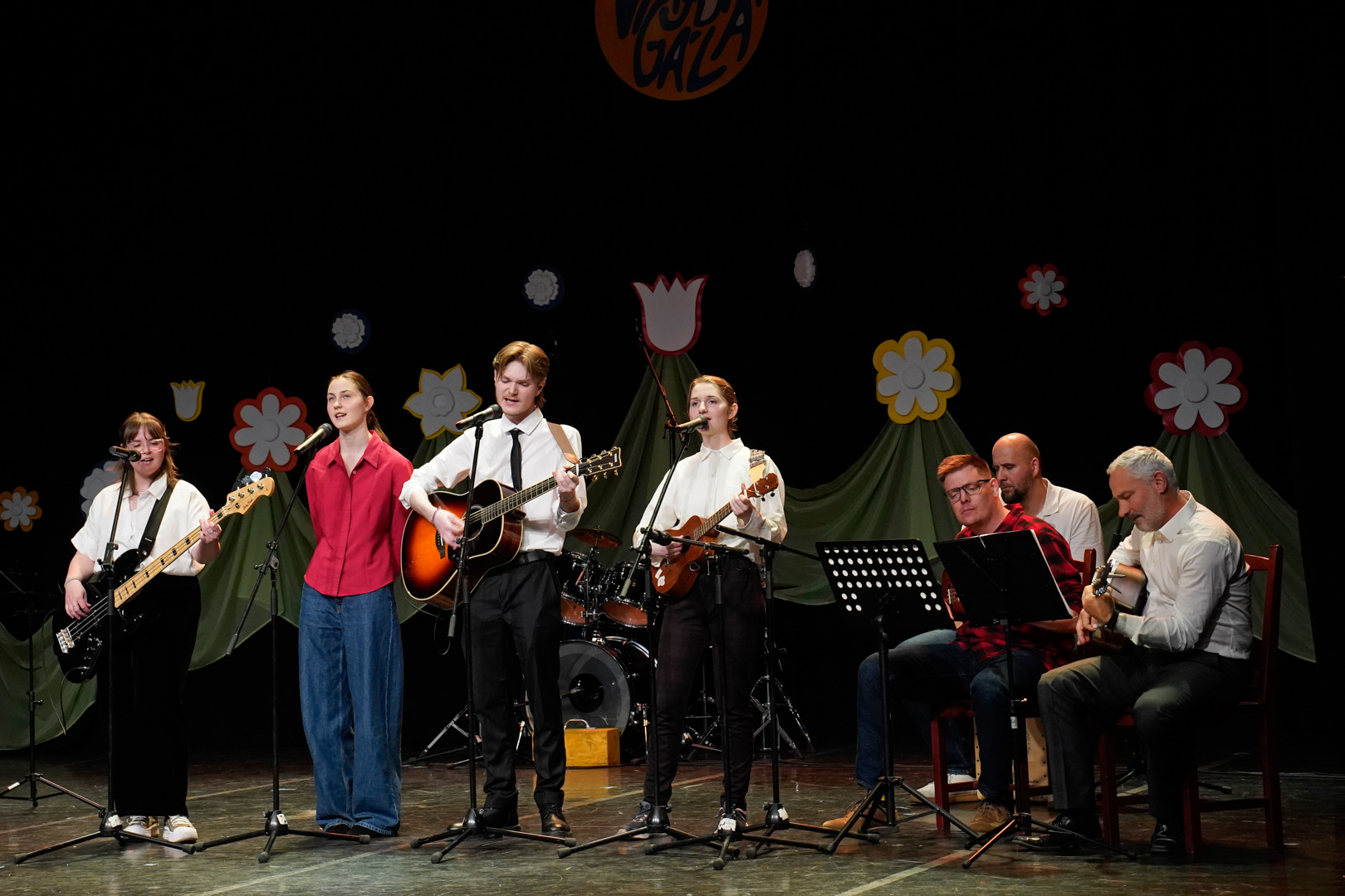 A hangulat egyre fokozódott a közönség soraiban, a továbbiakban pedig a zenés blokk részeként a gimnázium régi és új zenekarai következtek versbetétekkel fűszerezve.