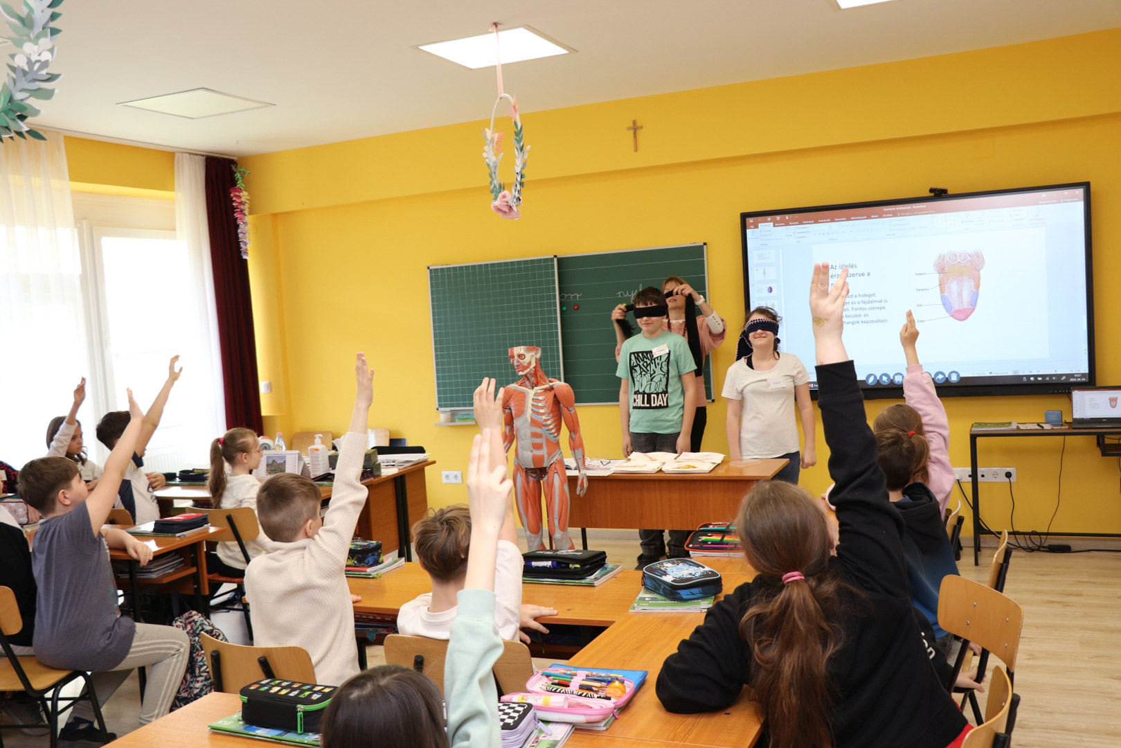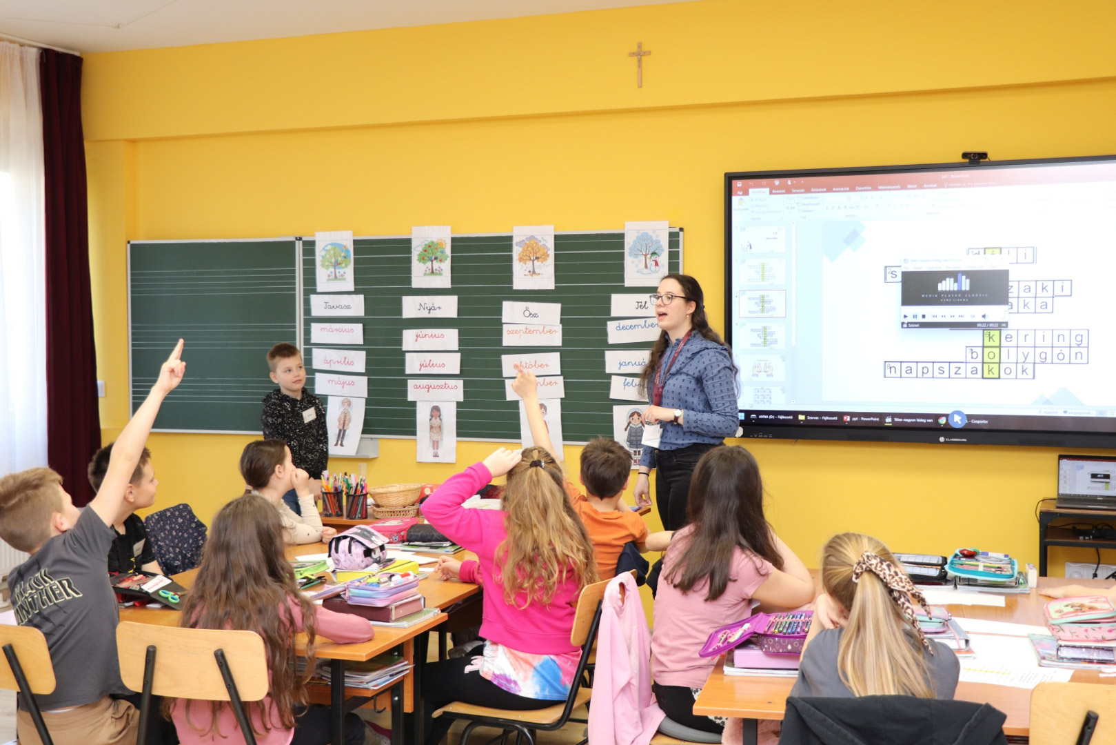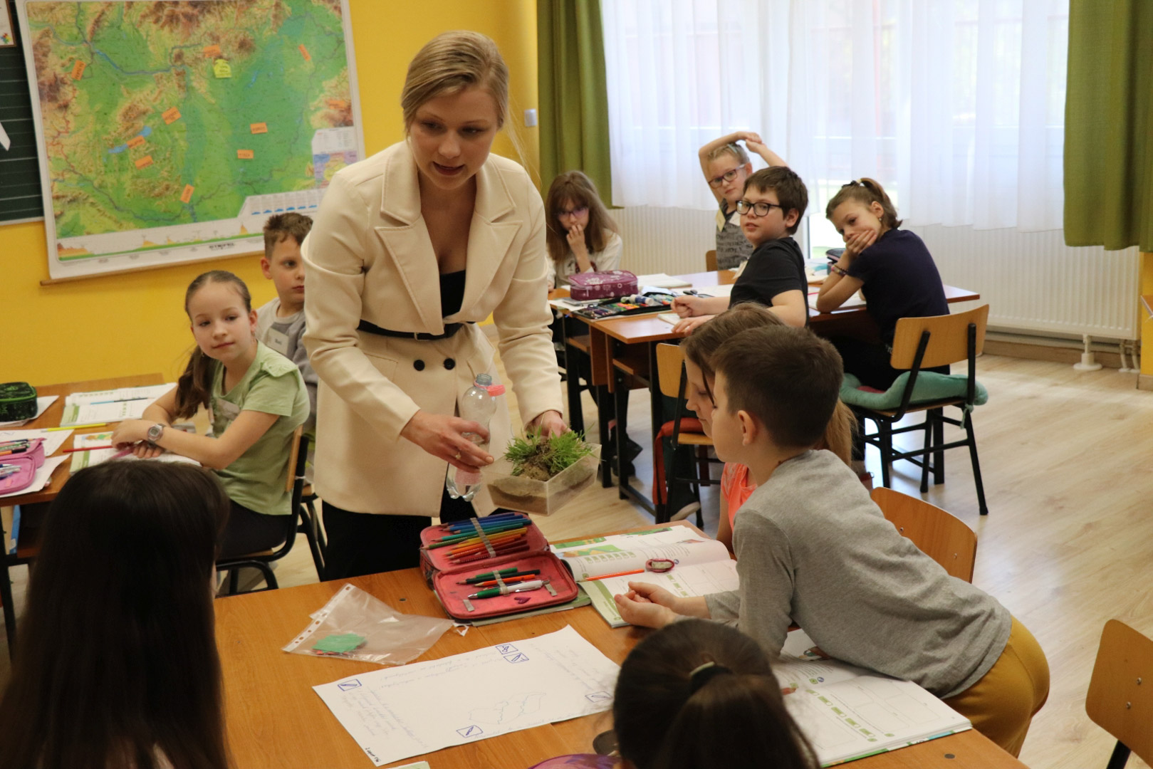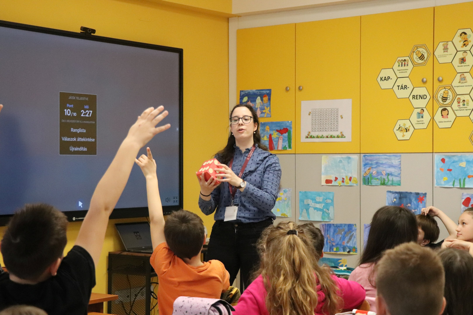 A bemutató tanítások a Gyakorló Általános Iskola 3.a, 3.b, 4.a és 4.b osztályaiban zajlottak, majd ezt követően a zsűri egy-három helyezést osztott ki. A gyakorlós gyerekek elismerő tapsa mellett…