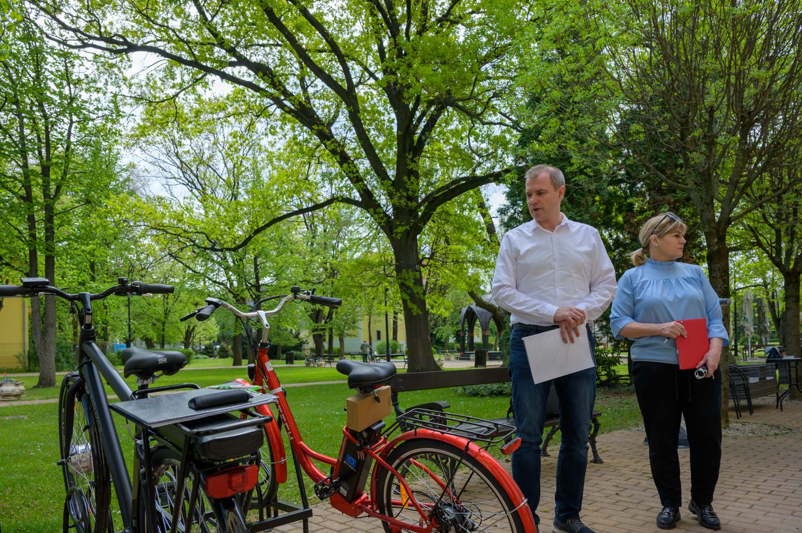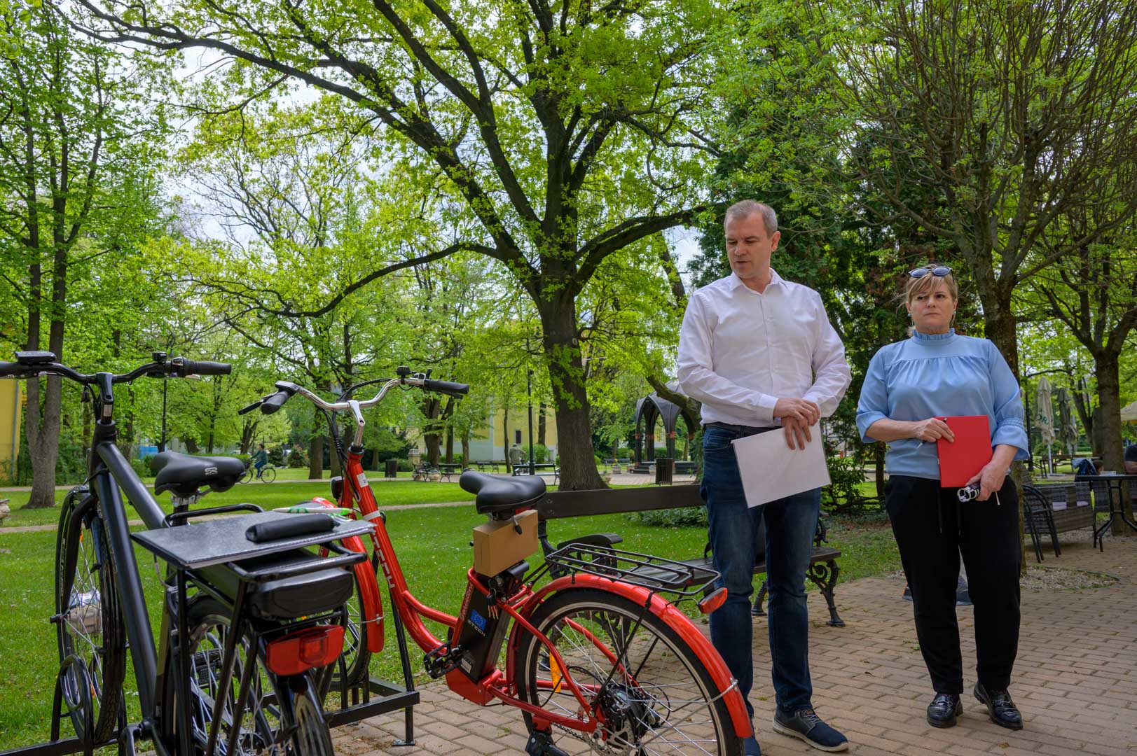 A Szarvasi Turisztikai Kft. 33,5 millió forintot nyert a Szarvasi Tourinform iroda felújítására és eszközbeszerzésére a Kisfaludy pályázat keretében 2024-ben. Ennek keretében öt női, egy férfi ebike és három 24-es női lányka kerékpár érkezett az új Tourinform iroda elé csütörtök délelőtt.