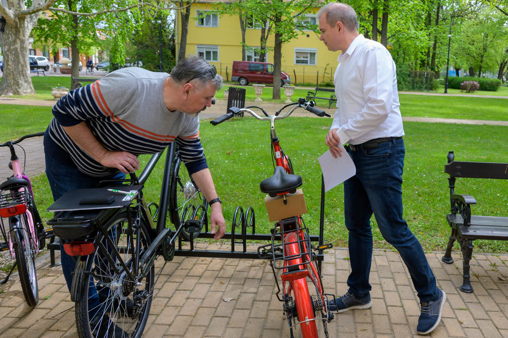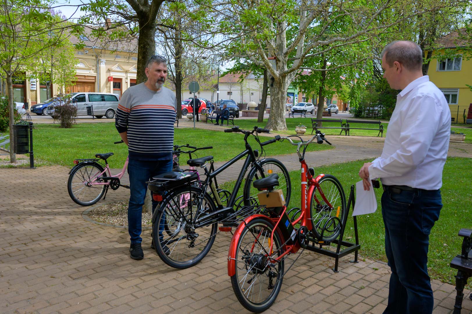 Szerették volna, ha szarvasi kereskedőtől tudják beszerezni, de a nyertes mezőtúri vállalkozó kedvezőbb árat adott, mondta Hodálik Pál az átadón. Gyakorlatilag Békéscsabáig el lehet tekerni, vagy egy Öcsöd oda-vissza út a gáton is megtehető rásegítéssel, jelentette a ki kerékpárok paramétereit megismerve a polgármester.