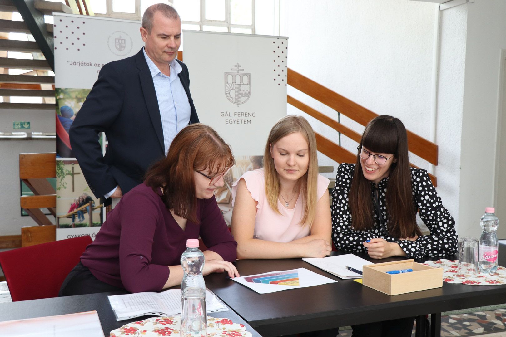Hodálik Pál Szarvas város polgármestere szívélyes és személyes köszöntője után a lelkes jelöltek – Korponai Karina, Miklós Ditta és Szivák Boglárka – izgatottan várták a megmérettetést. Az értékelő bizottság, melynek tagjai Hodálik Pál polgármester, Bajomi-Nagy Éva intézményegység-vezető, vezetőtanár, Huszár Istvánné gyakorlati képzés vezető, főiskolai mesteroktató és Montvajszkiné Bátor Anna nyugalmazott szakvezető óvodapedagógus, gyakorlati képzésvezető voltak, nagy figyelemmel kísérte a hallgatók teljesítményét a nap folyamán.