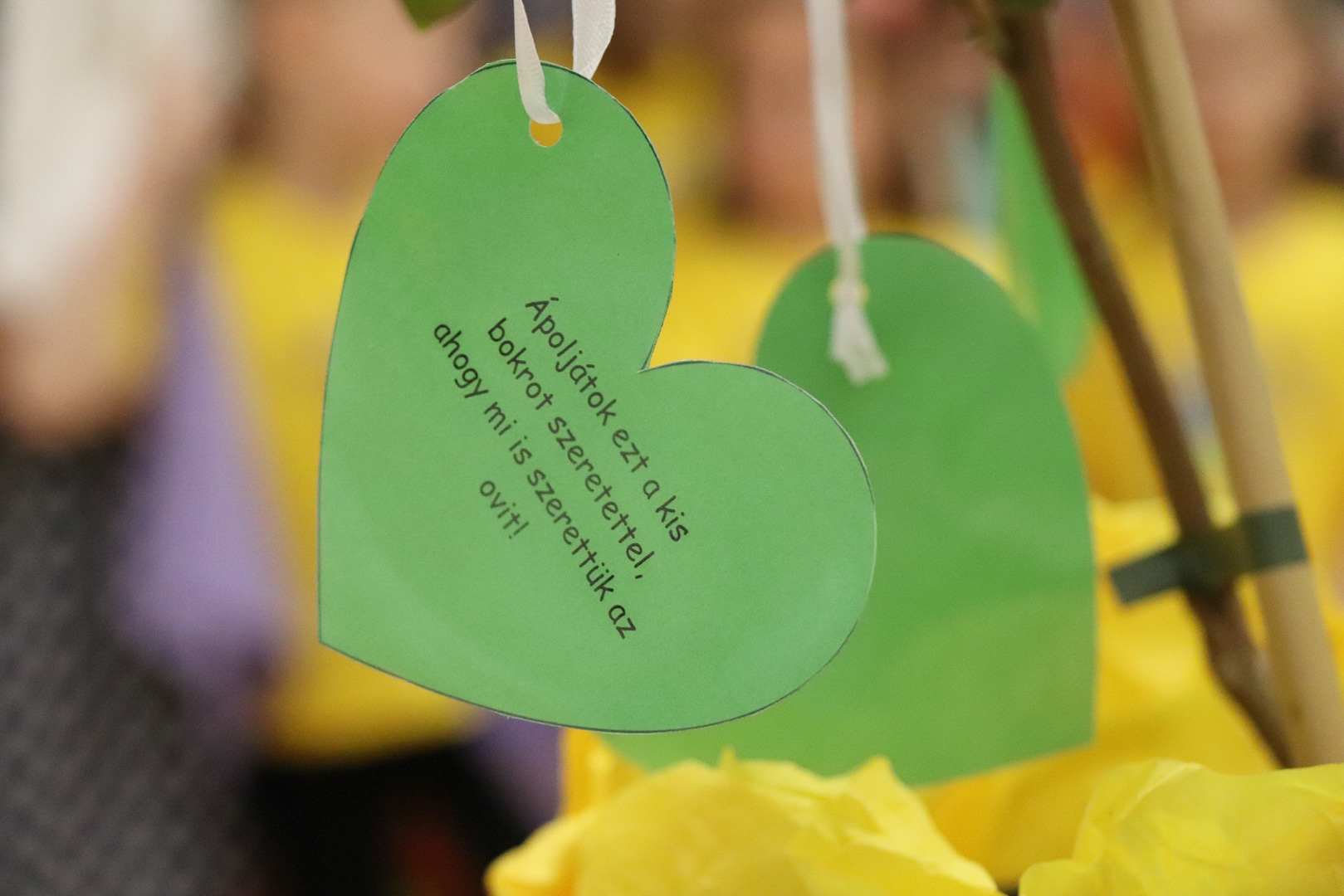 A zöld óvodai szemlélet jegyében a búcsú nemcsak megható, de példaértékű is volt: a nagyok egy kis cserjét ajándékoztak az intézménynek, amit az óvodában maradó társakkal együtt ültetnek majd el az óvoda kertjébe. A növény ápolása a közösség összetartozását és a barátság erejét szimbolizálja. A gyerekek zöld szívecskékre írt kedves üzeneteiket akasztották a cserjére, mely így az emlékek élő őrzőjévé vált.