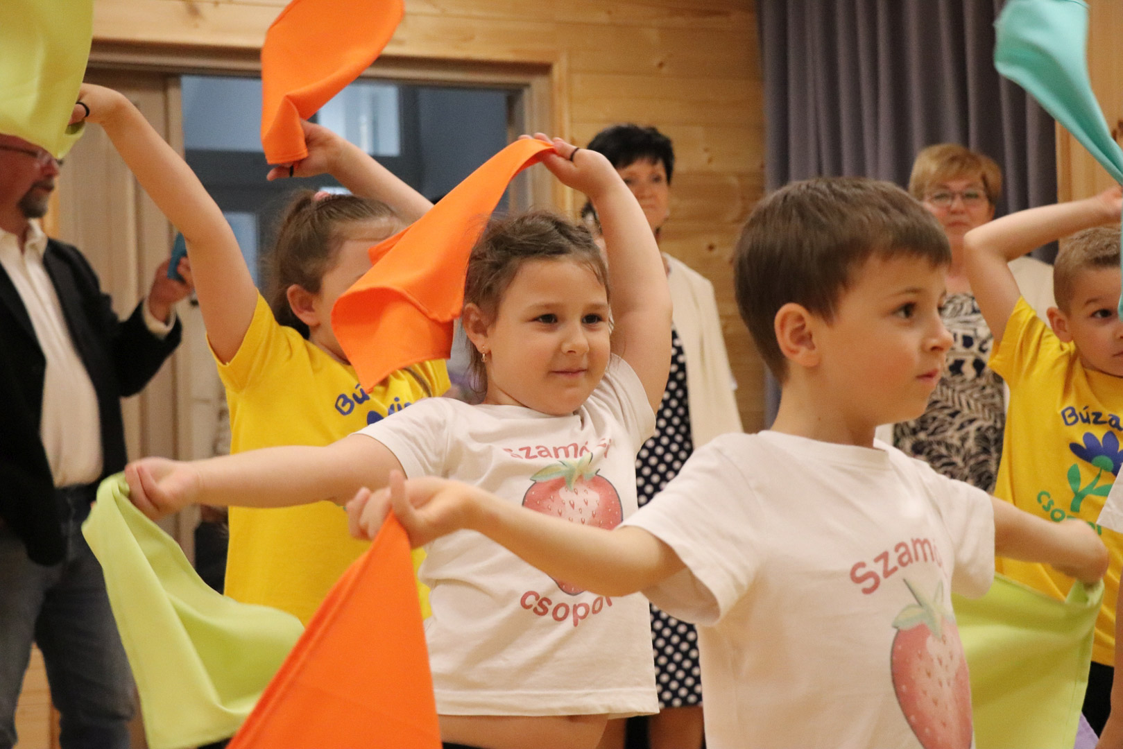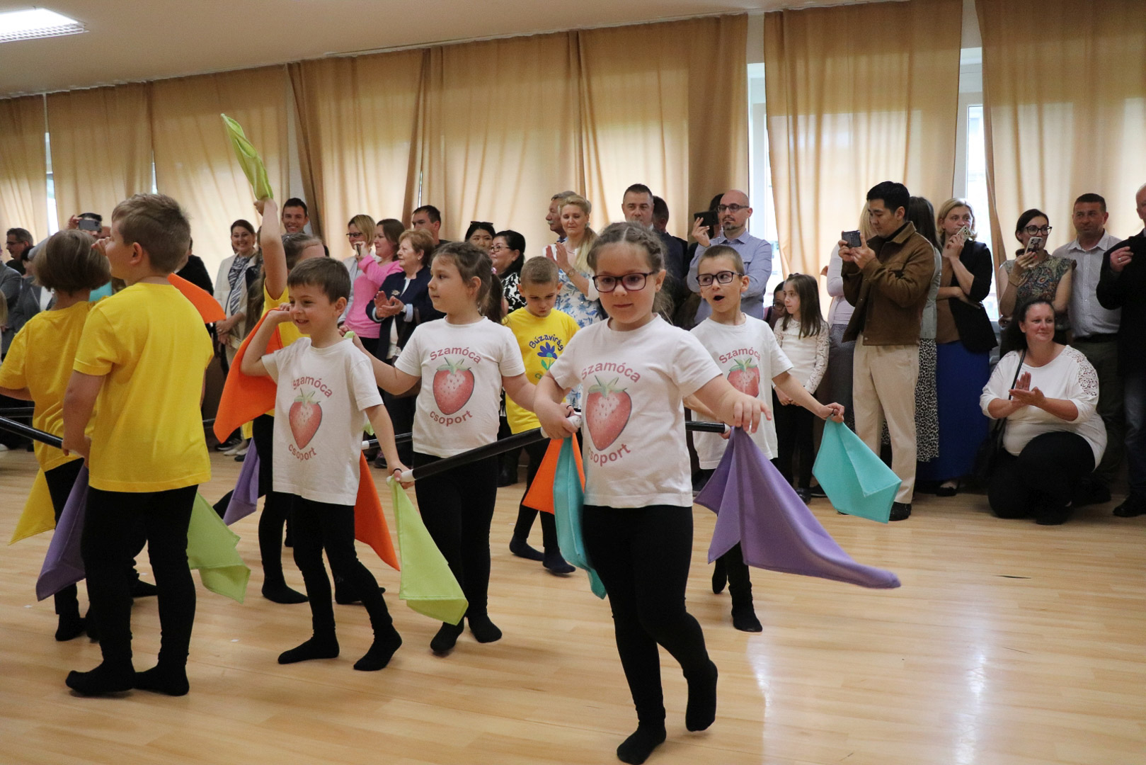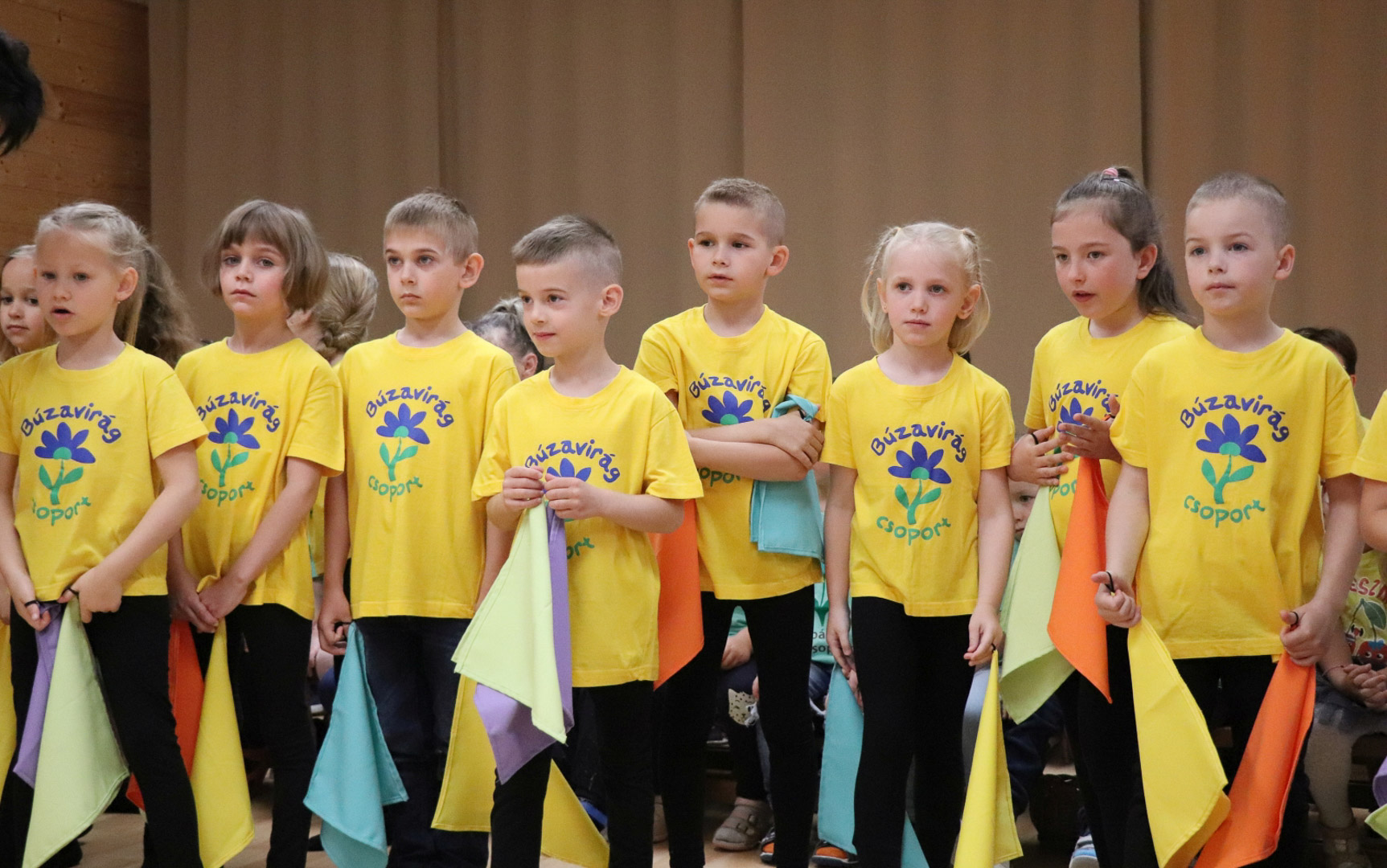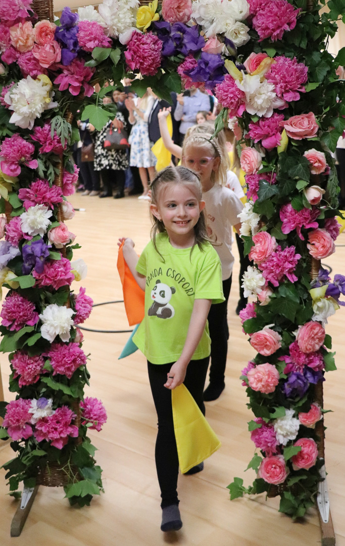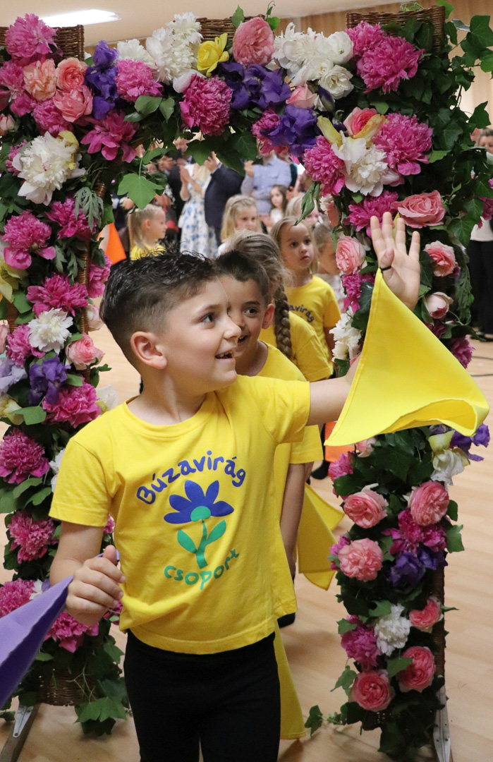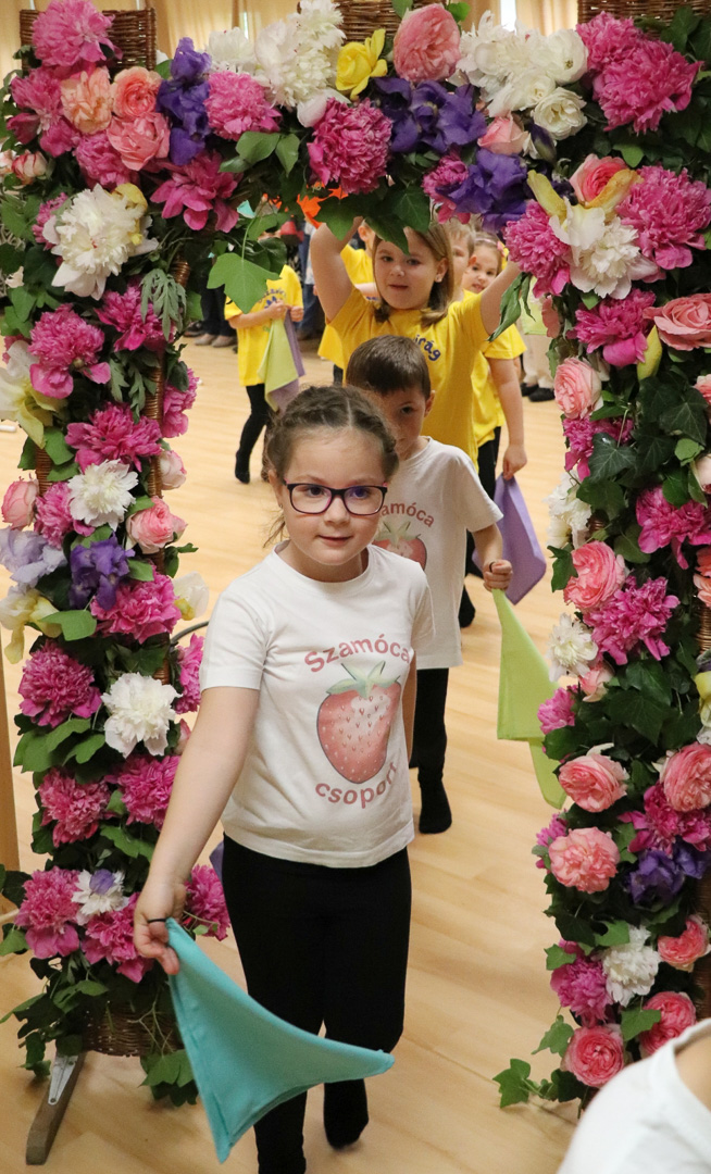 A nagycsoportosok egy vidám, lendületes tánccal kedveskedtek szüleiknek és társaiknak. A színes kendők libbenése üdítő látványt nyújtott, méltó zárása volt az óvodai éveknek. Az ünnepség végén a gyerekek a kendőkkel integetve, virágokkal díszített kapu alatt vonultak át jelképesen az iskolába, ahol már izgatottan várták őket a leendő tanító nénik.