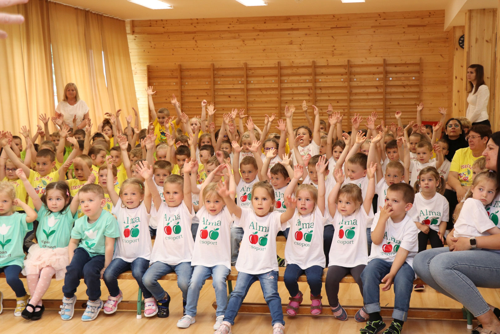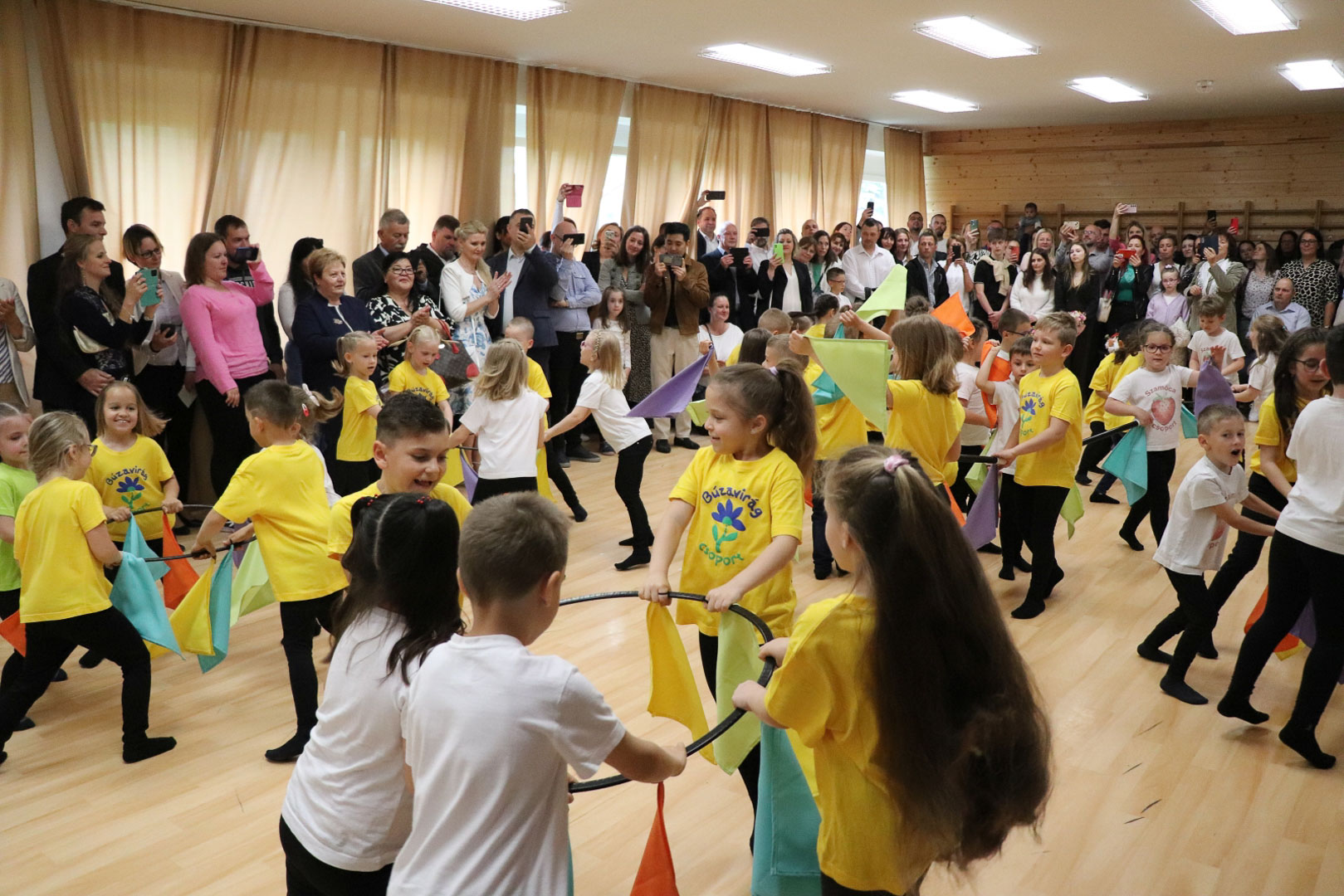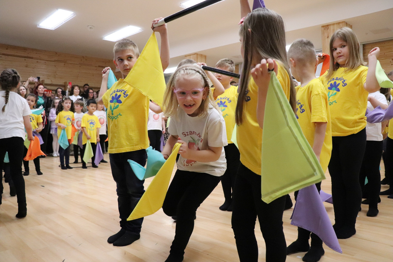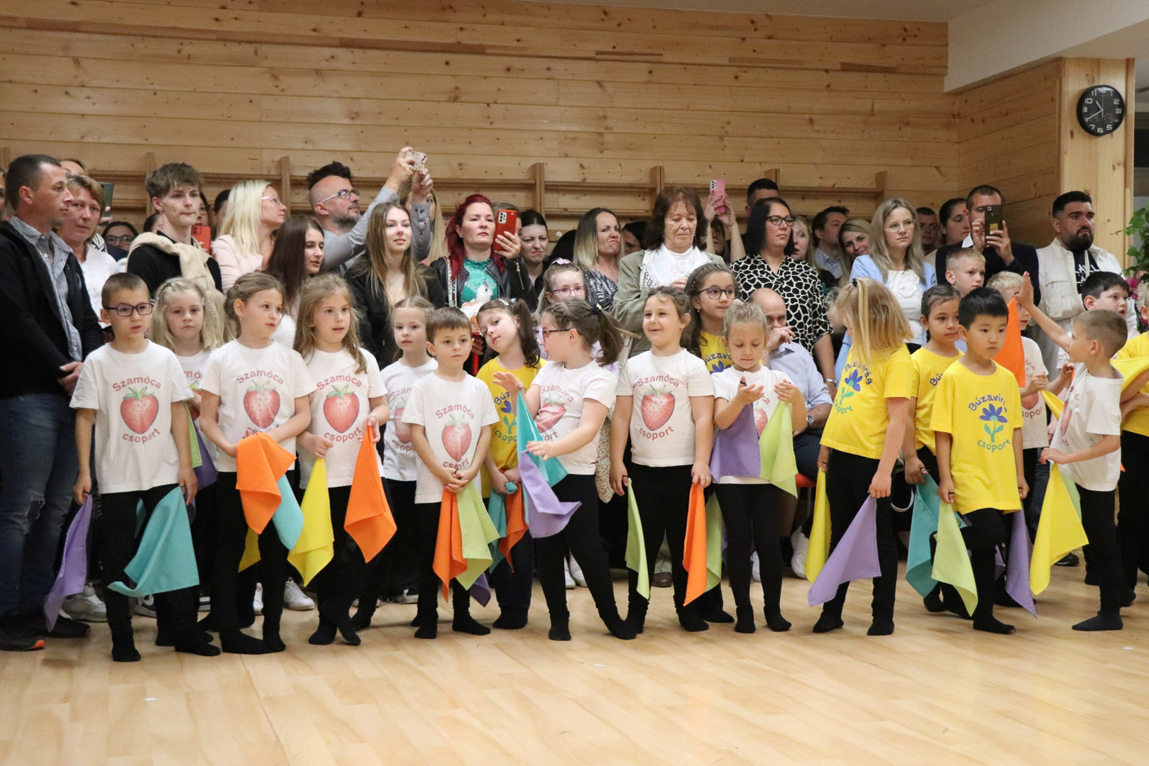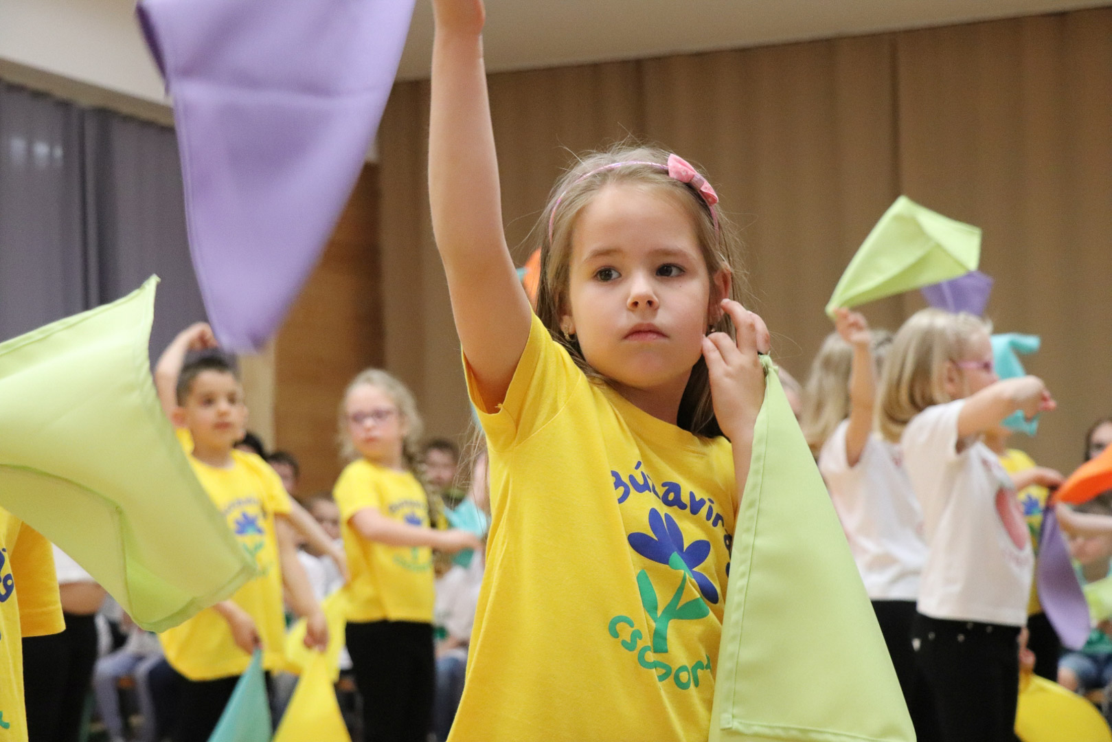 A nagycsoportosok egy vidám, lendületes tánccal kedveskedtek szüleiknek és társaiknak. A színes kendők libbenése üdítő látványt nyújtott, méltó zárása volt az óvodai éveknek. Az ünnepség végén a gyerekek a kendőkkel integetve, virágokkal díszített kapu alatt vonultak át jelképesen az iskolába, ahol már izgatottan várták őket a leendő tanító nénik.
