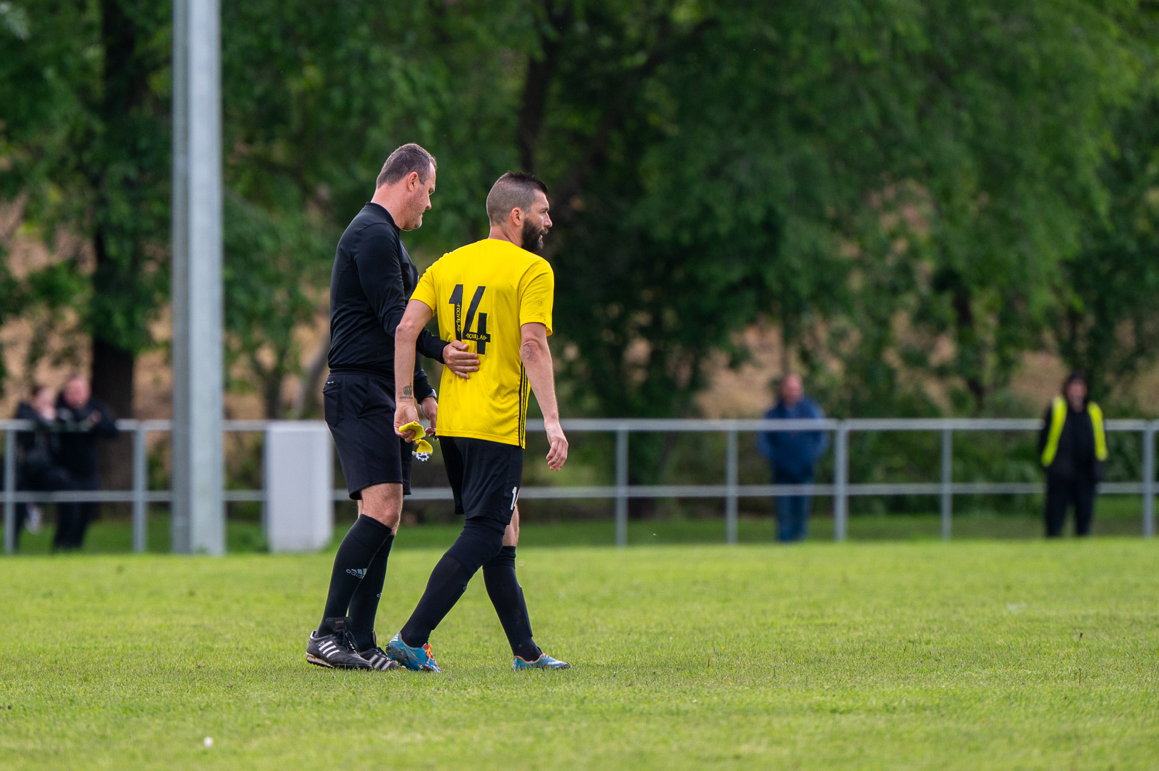 A Hunyadi történetének első kezdőrúgását végezte el egy messziről és nem egyedül jött szurkoló, akit a gyúrója még a kezdőkörbe is elkísért, ha netán meghúzódna az egyméteres passzban.