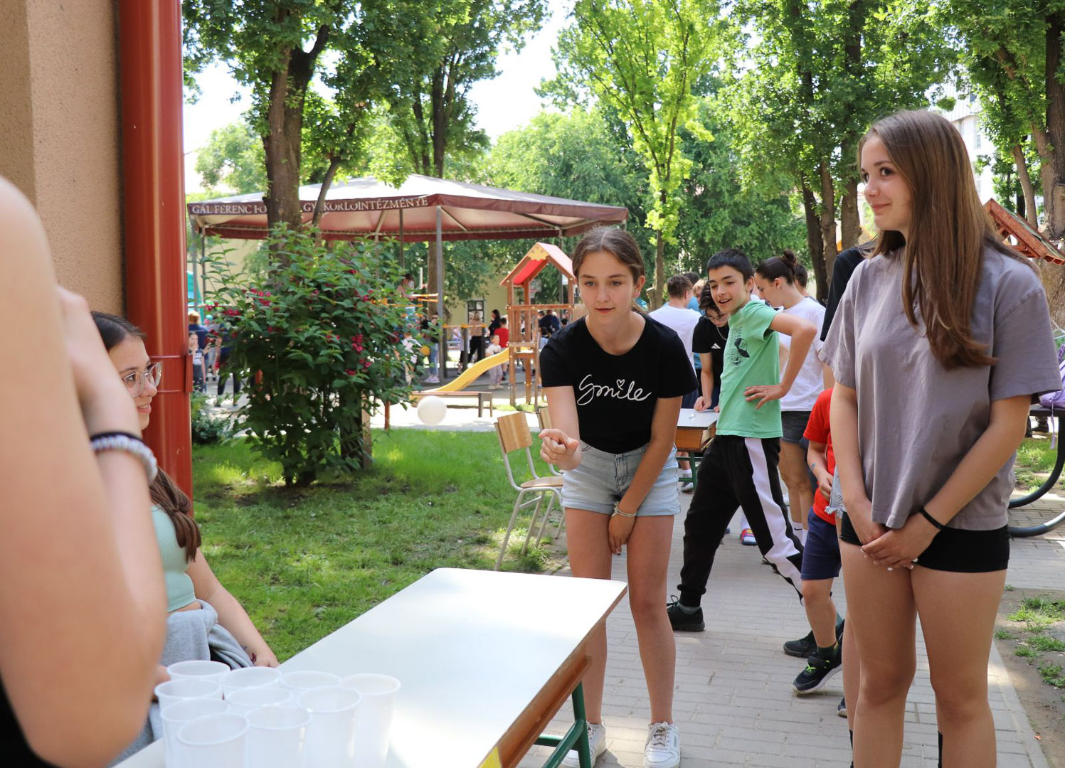 A leendő „gyakorlós” kis polgárokról sem feledkeztek meg – számukra külön játszóházat alakítottak ki, ahol bátran kipróbálhatták magukat, és megismerkedhettek a „Gyakorló” hangulatával. Az élmények mellé finomságok is jártak: minden gyerek kapott jégkrémet és hot-dogot, így a nevetés és játék mellé egy kis nyári íz is társult. Az esemény nemcsak a szórakozásról, zenéről szólt, melyet a DÖK biztosított, hanem a közösségről is – kicsik és nagyok együtt ünnepeltek, játszottak, és élvezték a programokat. A Gyakorló ismét bebizonyította: fontos számukra, hogy a gyerekek örömmel, biztonságban és élményekkel gazdagodva töltsék mindennapjaikat.