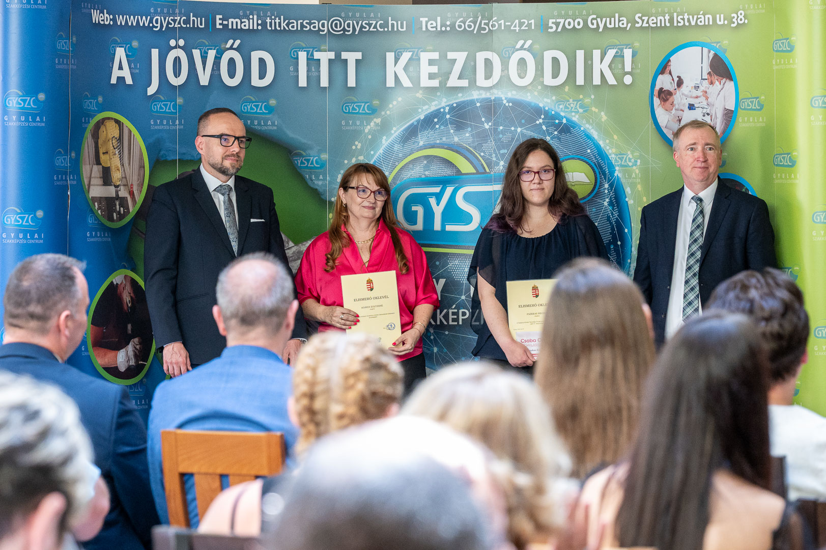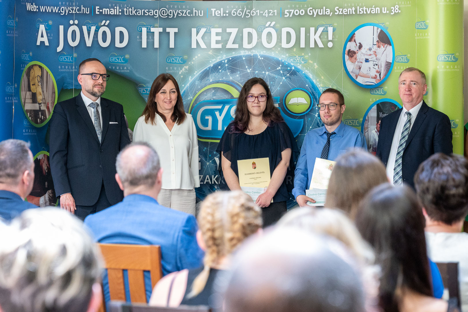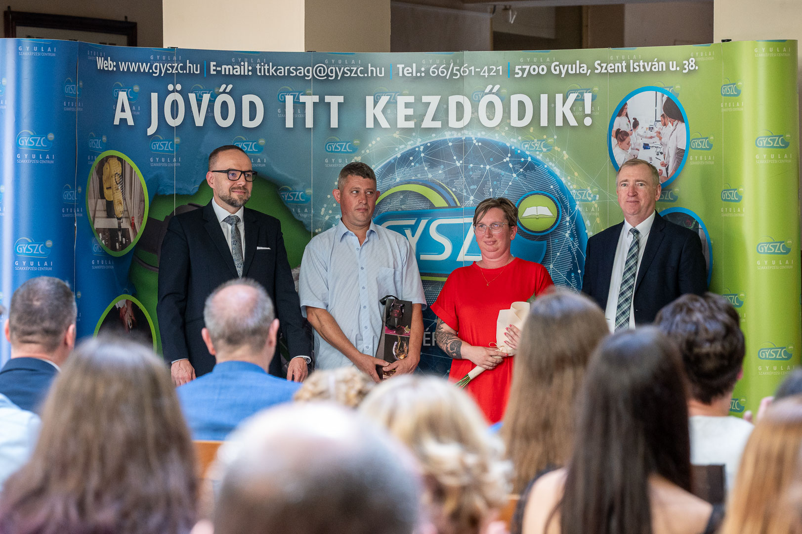 2025. június 5-én nagyszabású rendezvényre került sor intézményünkben. A Gyulai Szakképzési Centrum – hagyományainak megfelelően – idén is díjazta a tagintézmények országos versenyeredményt elért tanulóit (55 fő) és felkészítő oktatóit (25 fő). Elismerésben részesültek szakmai-, tanulmányi-, sport- és projektversenyek kiemelkedő helyezései.