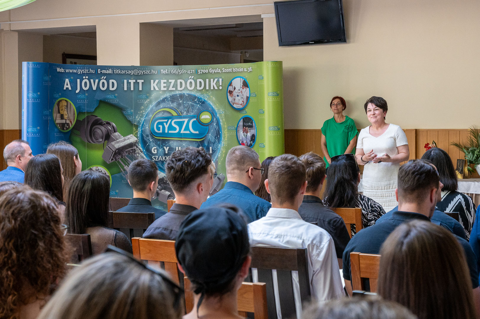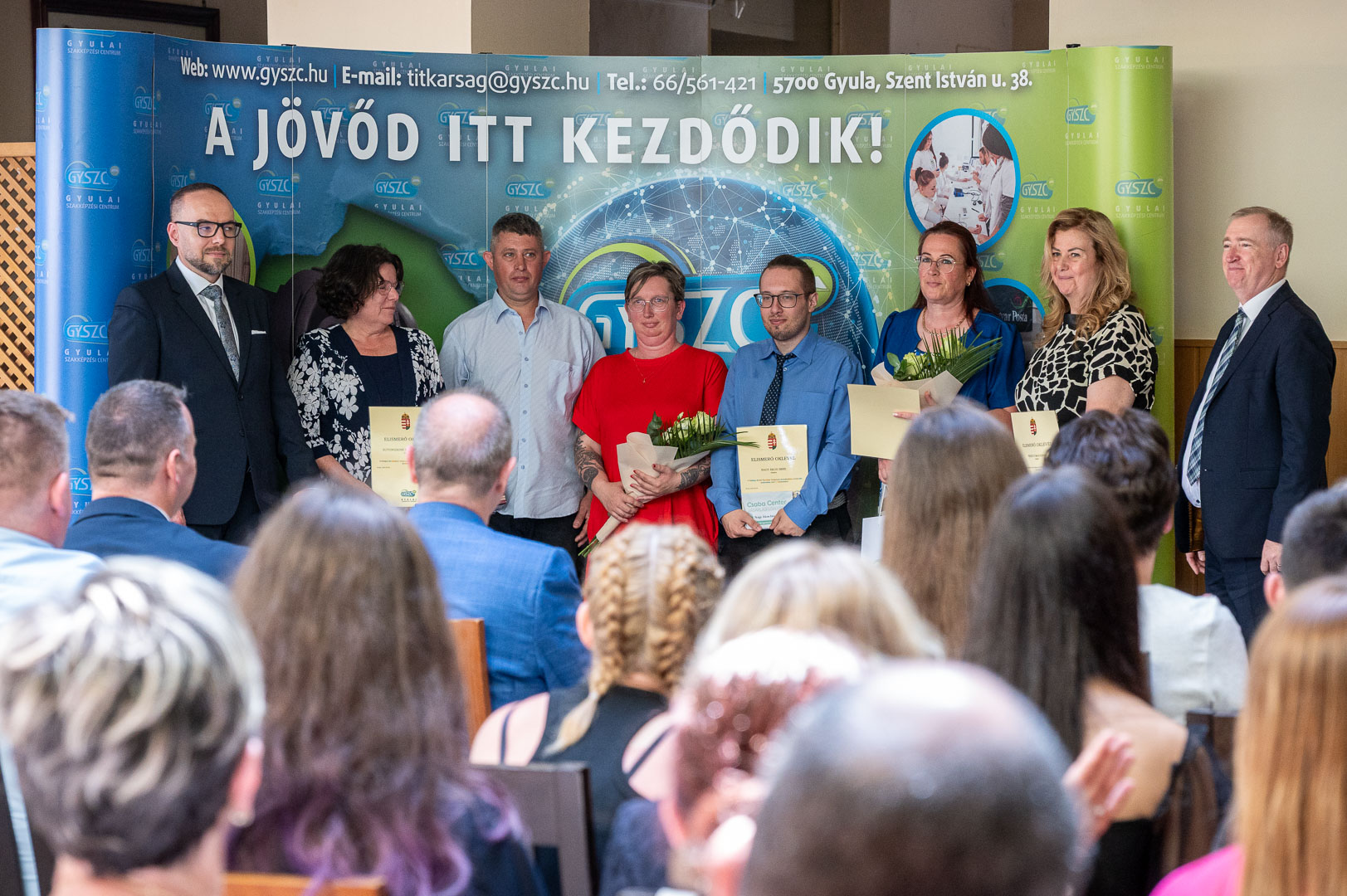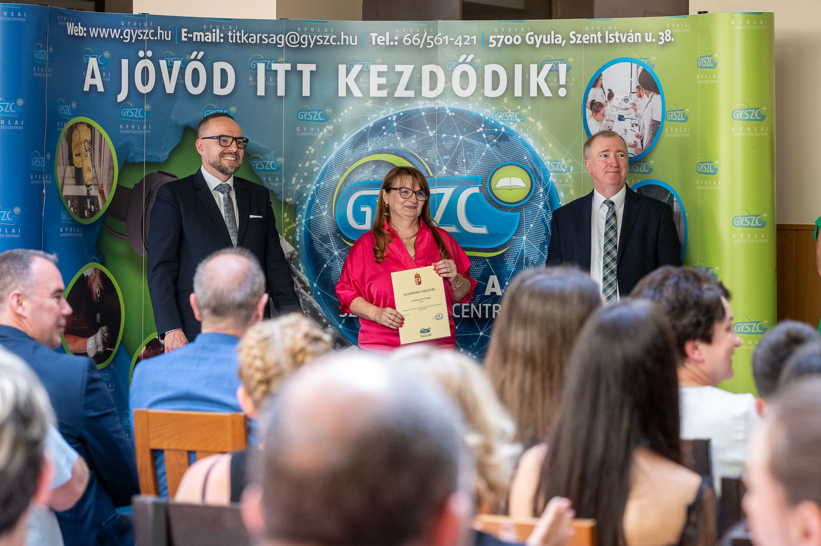 2025. június 5-én nagyszabású rendezvényre került sor intézményünkben. A Gyulai Szakképzési Centrum – hagyományainak megfelelően – idén is díjazta a tagintézmények országos versenyeredményt elért tanulóit (55 fő) és felkészítő oktatóit (25 fő). Elismerésben részesültek szakmai-, tanulmányi-, sport- és projektversenyek kiemelkedő helyezései.