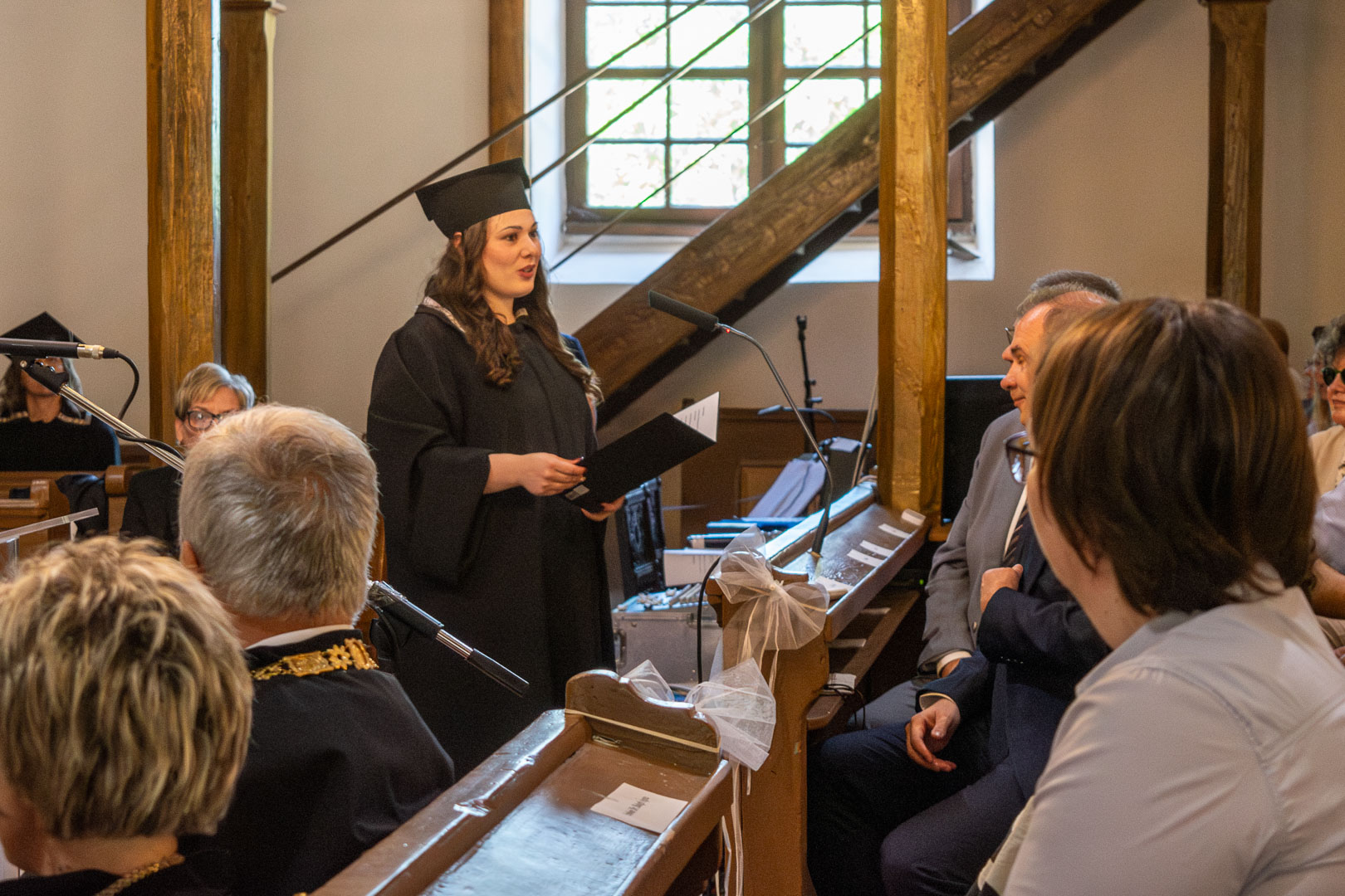 A június 14-én délelőtt az Ótemplomban tartott diplomaosztón a rektor mellett részt vett dr. Vincze Gábor az Egészség- és Szociális Tudományi Karának dékánja, dr. Katona Krisztina a házigazda Pedagógiai Kar dékánja, Bíró Gyula a Gyakorlóintézmény főigazgatója, Lázár Zsolt evangélikus esperes, igazgató-lelkész, Hodálik Pál, Szarvas polgármestere és Gaál Roland a Járási Hivatal vezetője.