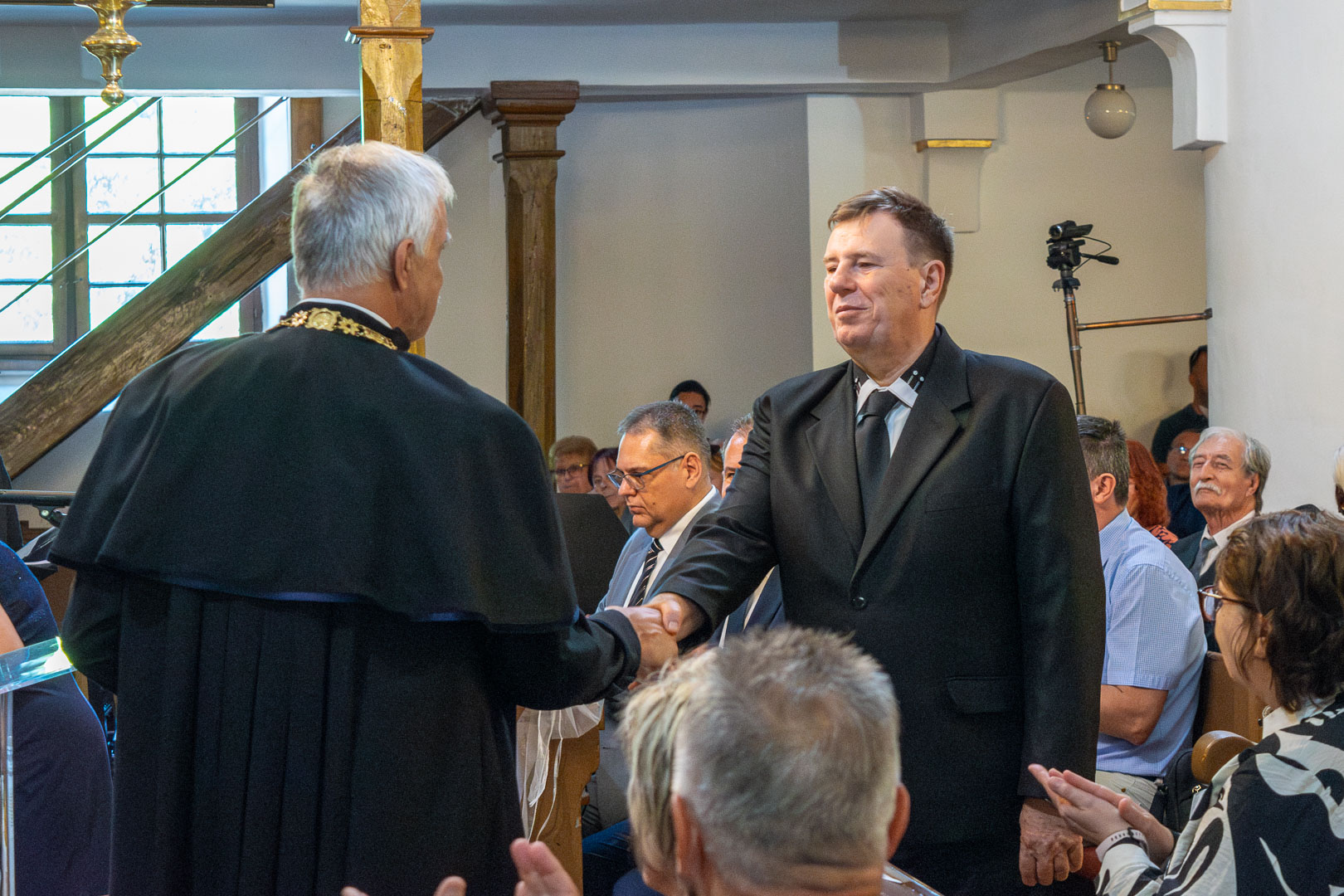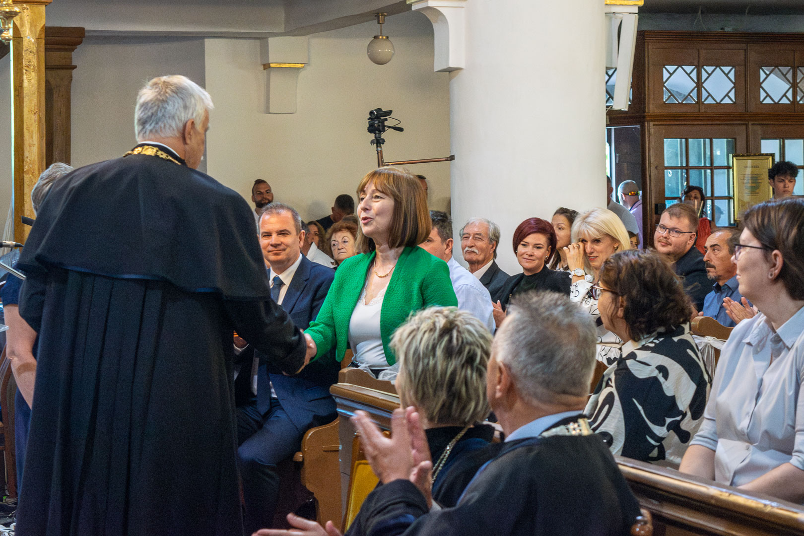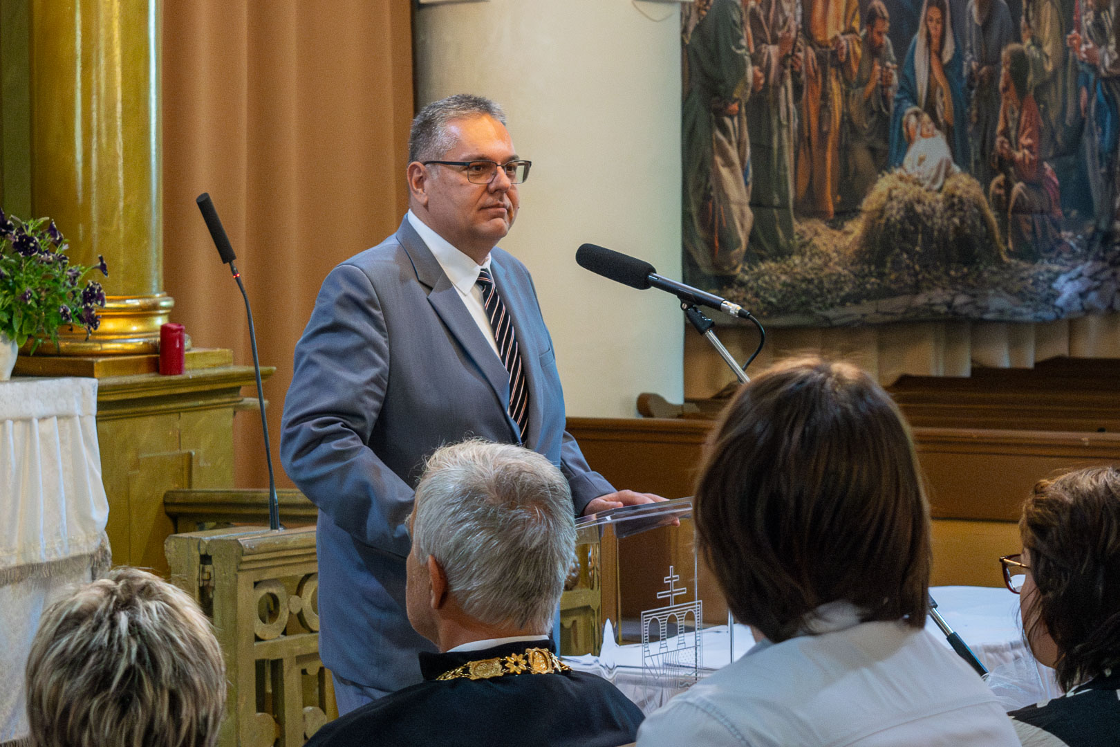A vándorbot átadása és az egyetemi zászló felszalagozását követően Lázár Zsolt köszöntötte a Tessedik templomában jelenlévőket. Bizakodva abban, hogy az egyetemen töltött idő alatt nemcsak tudásban, bölcsességben is gyarapodtak, arra kérte az újdonsült pedagógusokat, hogy legyenek figyelemmel arra, ha egy templomba bemennek, onnan nem menjenek ki úgy, hogy az Úrtól tanult imádságot el ne mondják. A Miatyánk után az esperes áldást mondott a frissdiplomásokra.