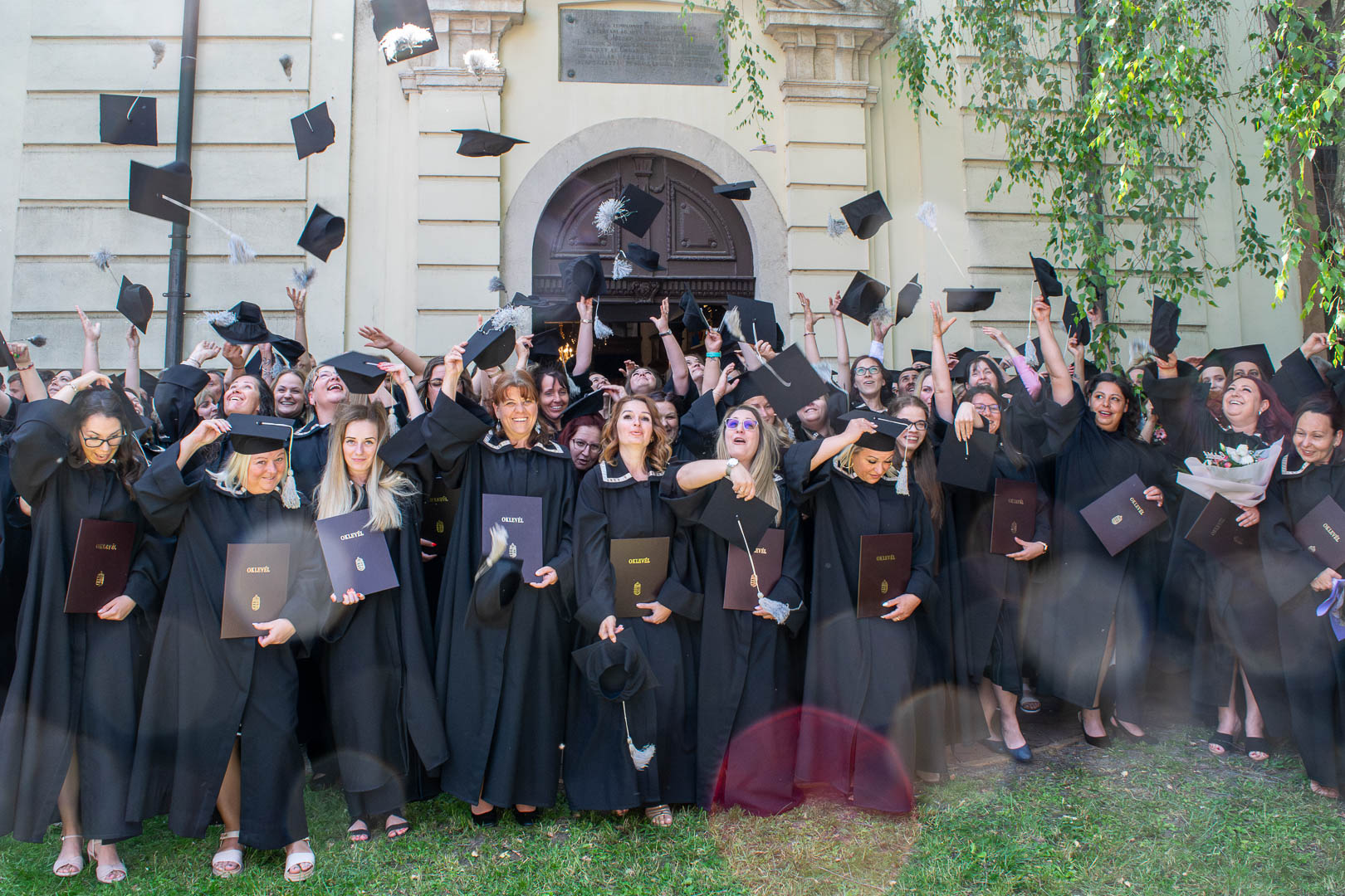 Az ünnepséget követően az Ótemplom mögötti tisztáson elkészült a csoportkép, melyen a fotósok megörökíthették, amint a hallgatók négyszögletes bojtos kalapja csoportosan a levegőbe repül.