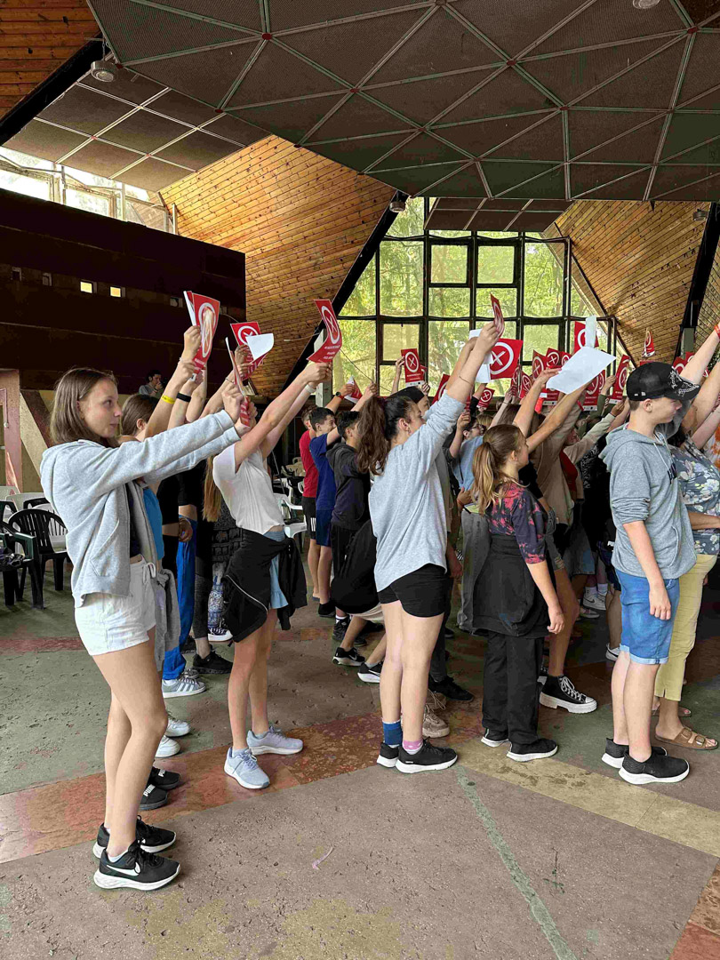 Élménytúránk az Öreg-tó festői partján kanyargott, ahol megtudtuk, hogy ez a tó bizony kulcsszerepet játszott az Eszterházy család megélhetésében – micsoda történelmi távlatok! Megcsodáltuk a hely természeti kincseit és persze a kihagyhatatlan nevezetességeket: az Eszterházy-kastélyt, a Tatai várat, az Építők Parkját és egy ezüstérmes platánfát is. A jó levegőn, a természet lágy ölelésében aztán olyan jót aludtunk, mint a bunda, másnap reggel pedig a zumba pörgetett fel minket rendesen a nap hátralévő részére. Az élménytéren még pályaorientációs tesztet is kitöltöttünk – most már tudjuk, milyen foglalkozás illik hozzánk, és izgatottan várjuk a visszajelző e-mailt! A rendőrségi standon a bűnmegelőzési szabadulószobából még a legelvetemültebbek is kijutottak (szerencsére!), és egy speciális szemüveg segítségével még azt is átélhettük, milyen „részegnek lenni józanul” – ez az élmény mindannyiunkat elgondolkodtatott. Emellett a felelős állattartás fortélyait és rejtelmeit is elsajátítottuk.