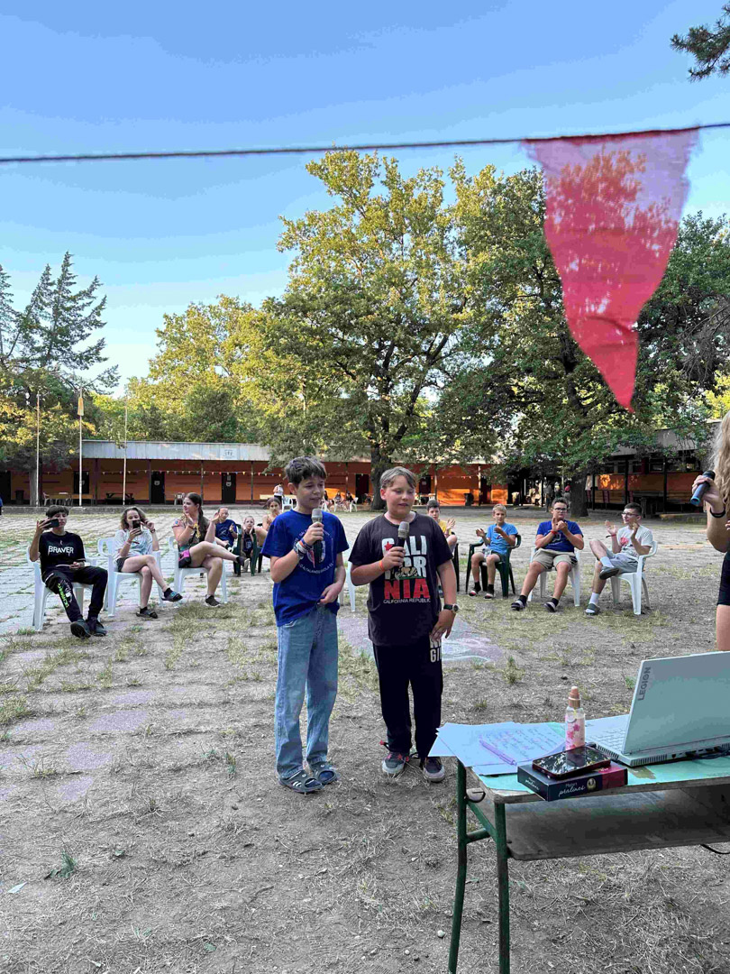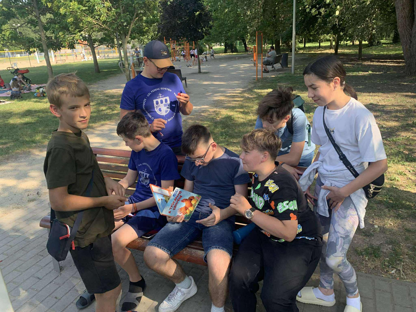 A fesztivál maga volt a földi paradicsom, a béke szigete, tele nevetéssel, játékkal és persze fagylalttal. Igaz, a csokis valahogy mindig elfogyott, mire ránk került a sor, és a pisztácia is csak távoli álom maradt, de azért a hideg nyalánkság így is felüdített minket. Az Építők Parkja pedig valóságos sportarénává változott a kezünk alatt: nappal a legkülönfélébb mozgásformákat próbáltuk ki, este pedig a röplabda szakosztály strandröplabda pályáján villogtattuk tudásunkat. Aztán persze jöhetett a megérdemelt pihenés, ami egy egészen elképesztő cseresznyemagköpő versenyben csúcsosodott ki, ahol osztályunk megdöntötte a világcsúcsot! Lehet, hogy egy új olimpiai sportág született a szemünk láttára?