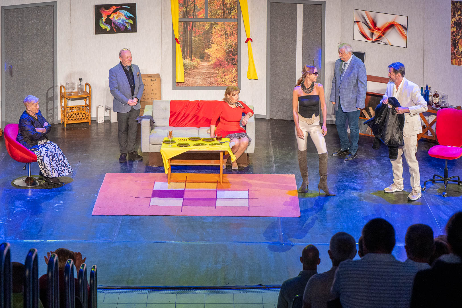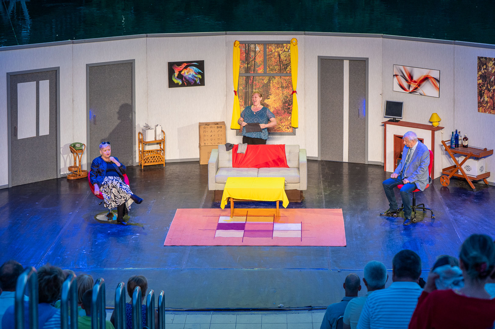 Pénteken este Eric Assous Férjek slamasztikában, avagy Ártatlanok? című vígjátékát mutatta be az Omax Kult Produkció Várkonyi András rendezésében a Szarvasi Vízi Színházban.