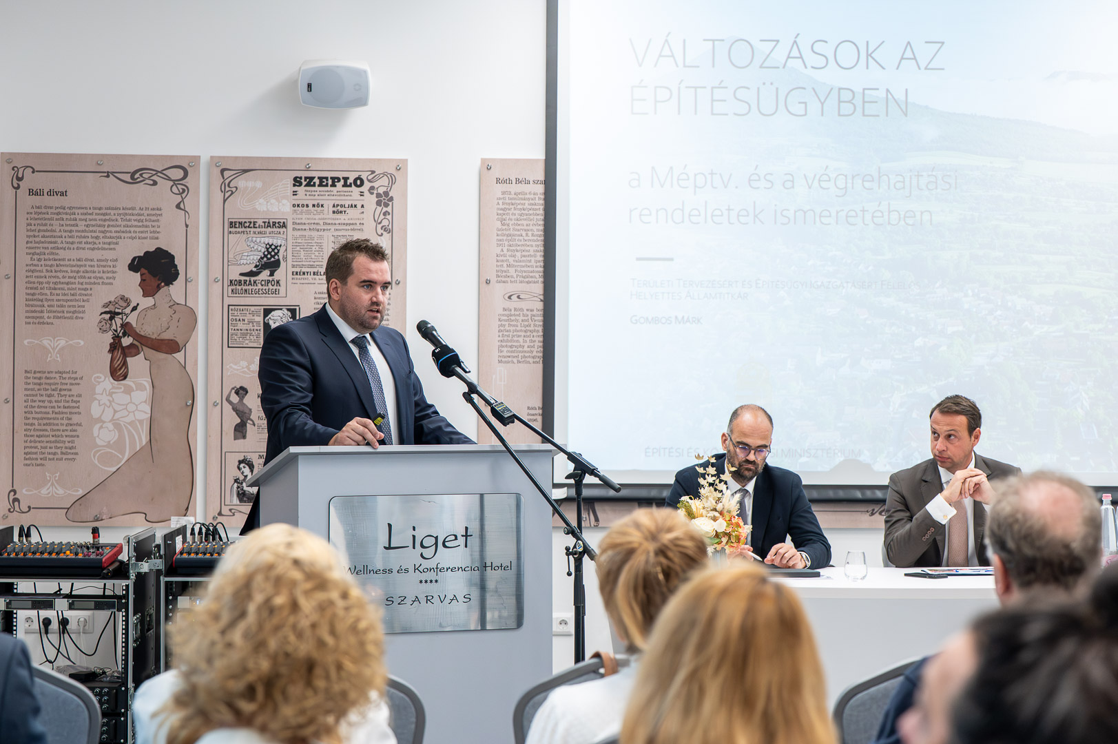 Gombos Márk az építészeti törvény, illetve a végrehajtási rendeletek egyes részleteit ismertette. Tájékoztatása szerint az építészeti törvényhez kapcsolódóan mintegy hetven rendelet módosult. Jelentősen szigorodtak a zöldmezős területekre