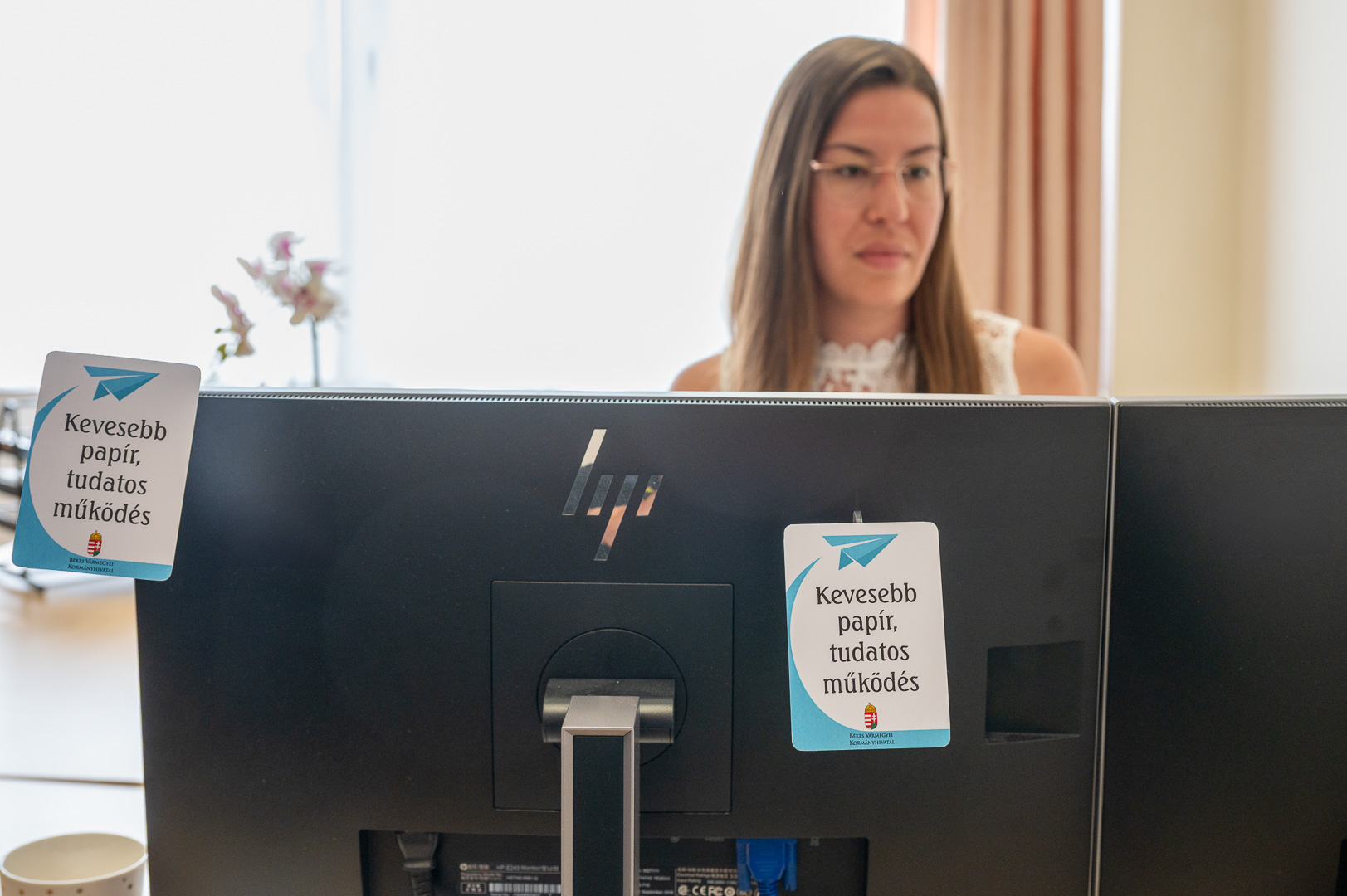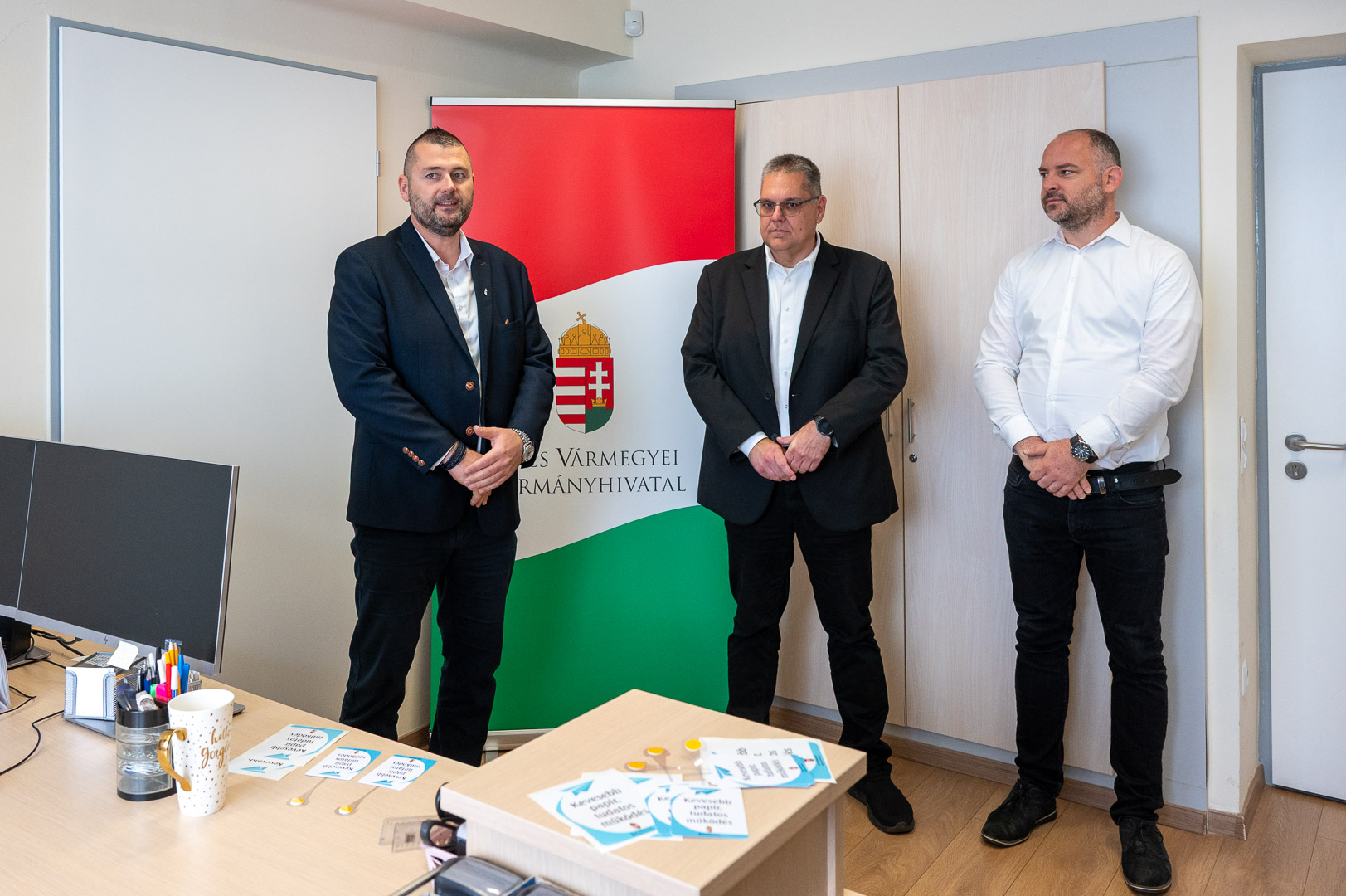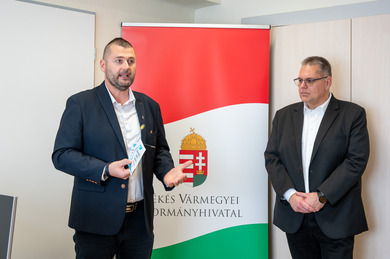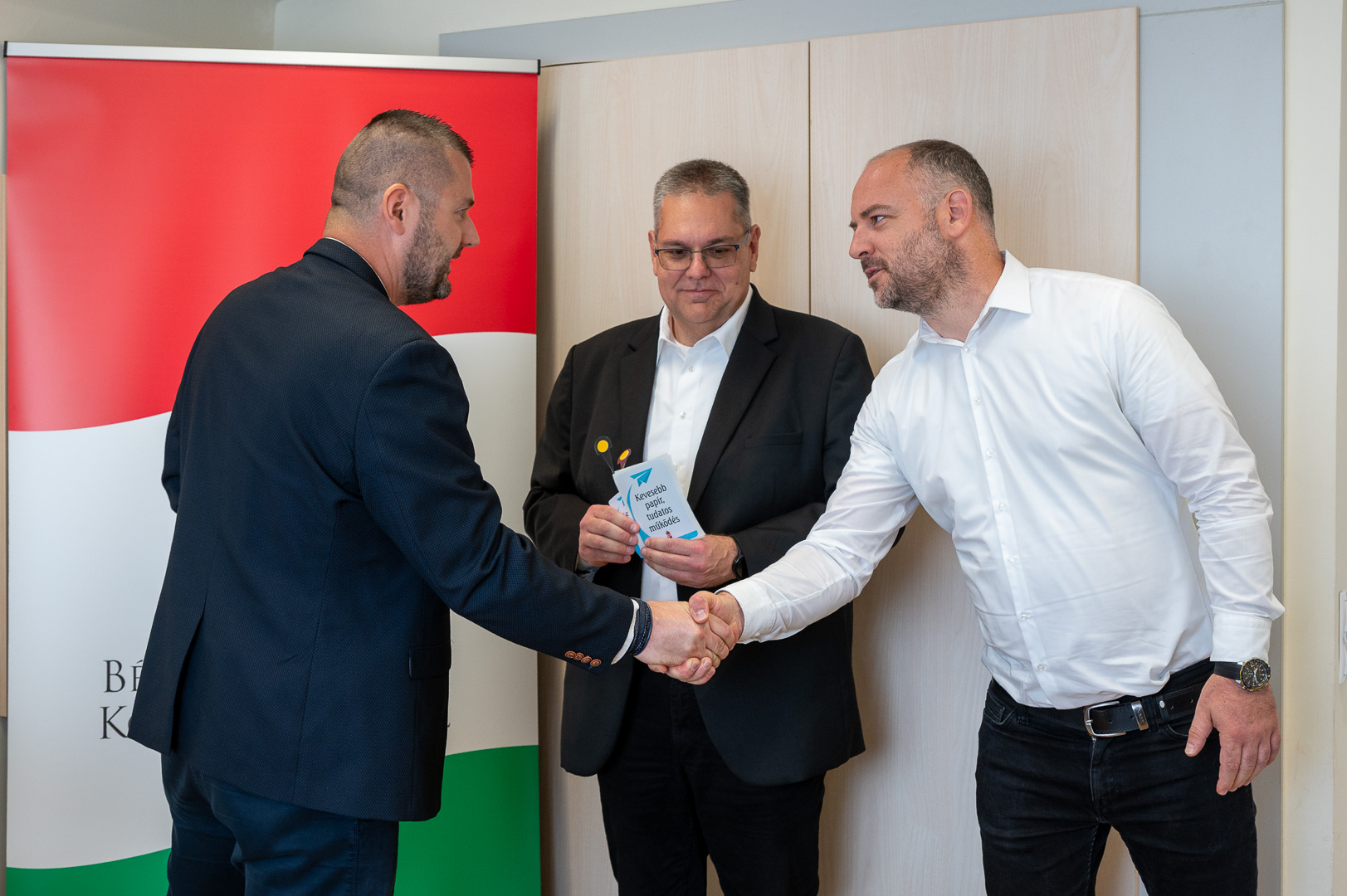 A Békés Vármegyei Kormányhivatalban éves szinten nagyjából 1,3 millió ügyfél fordul meg, 1 millió hatósági döntést hoznak a 19 főosztályon, a 9 járási hivatalban, a 18 kormányablakban és az egyéb ügyintézési pontokon. A hatékony, pontos és ügyfélközpontú munkavégzés mellett kiemelt cél a fenntarthatóság is, különös tekintettel a papírfelhasználás csökkentésére. Az elektronikus ügyintézést támogató munkacsoport és az auditáló bizottság is azért dolgozik, hogy a több mint 3000 ügyintézési típusban minél kevesebb papírt használjanak fel, ezzel is védve a környezetet és növelve a költséghatékonyságot, hangzott el ma délelőtt a Szarvasi Járási Hivatal Hatósági és Gyámügyi Osztályán, amikor dr. Rákóczi Attila, a Békés Vármegyei Kormányhivatal főigazgatója a Papírtakarékos iroda program második állomásán átadta az erről szóló tanúsítványt Gaál Roland hivatalvezetőnek, illetve helyettesének, dr. Galó Zsoltnak.