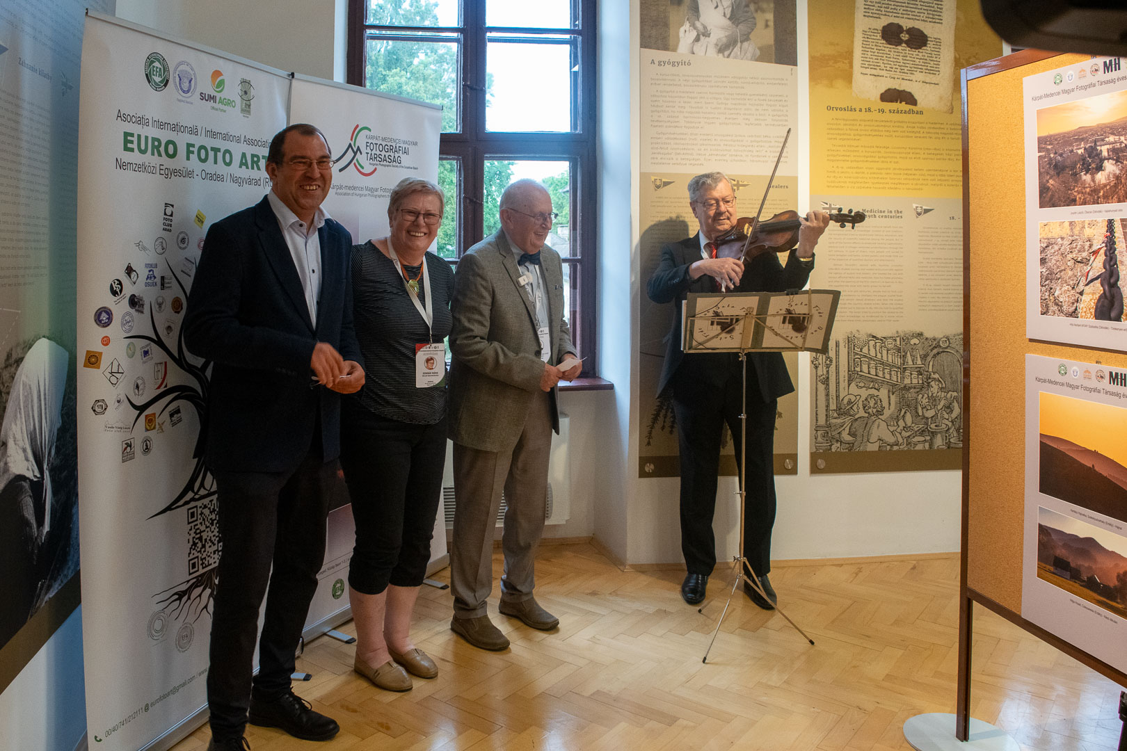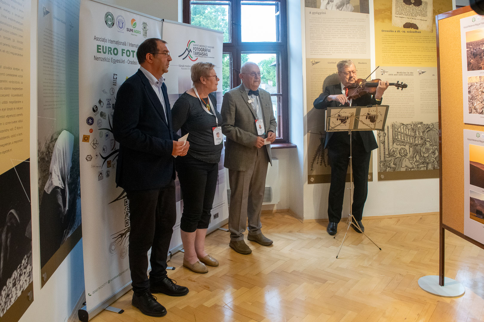 A megnyitón, július 17-én, csütörtökön Szarka József a Tessedik Sámuel Múzeum igazgatója köszöntötte a résztvevőket és tolmácsolta Hodálik Pál polgármester jókívánságait is, aki a megnyitó idején szabadságát töltötte. Stefan Tóth István, a KMMFT elnöke a kiállítást megnyitva elmondta, hogy nagyszerű érzés a Kárpát-medence földrajzi középpontjában tábort és kiállítást taartani. Vázolt a covid-idejére visszanyúló társaság alapítás történetét, az eddig kiadott albumukat és a harmadik éves kiállítás anyagát.
