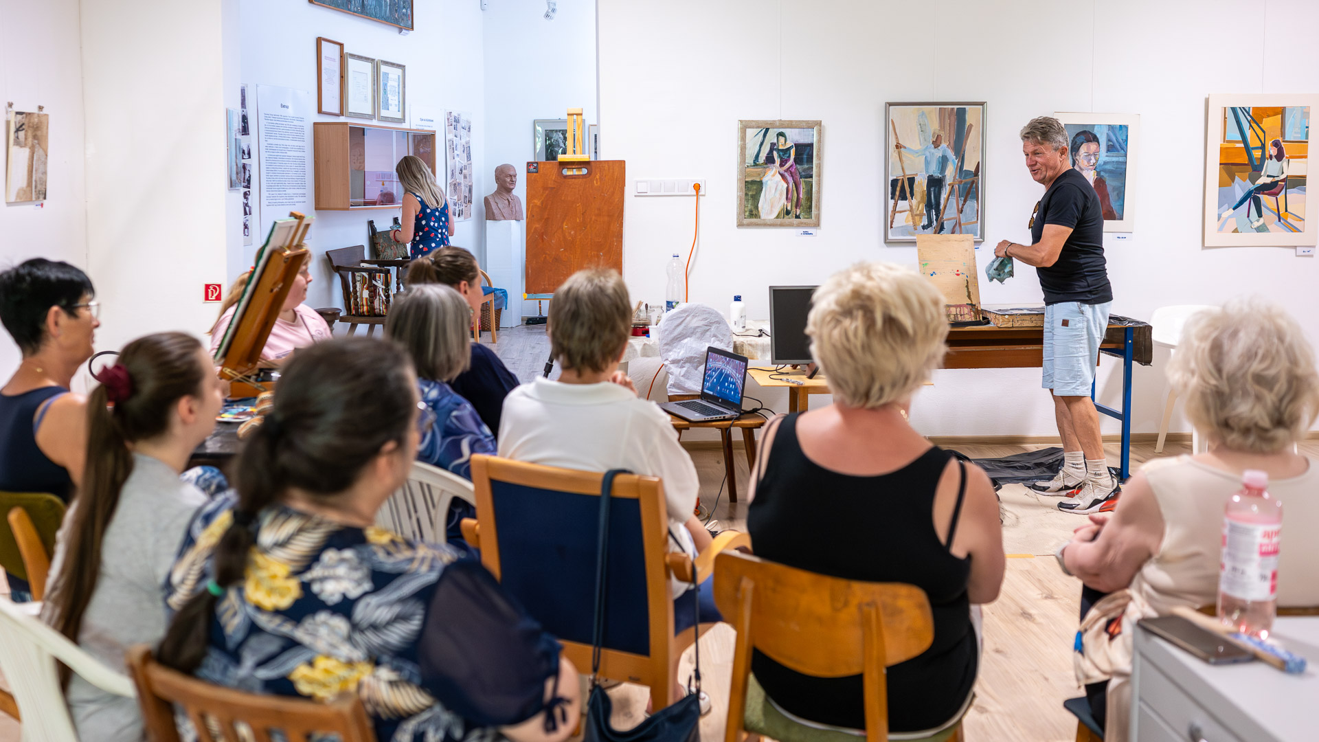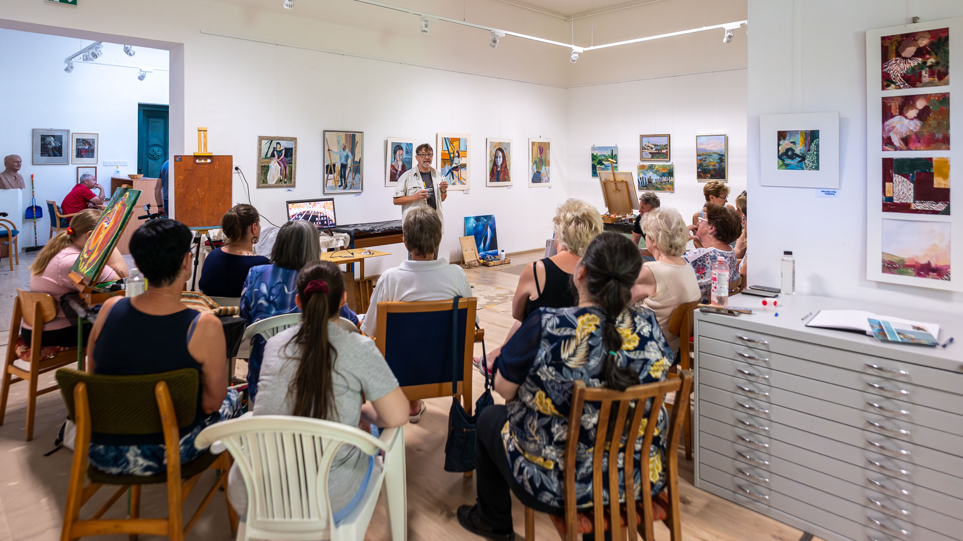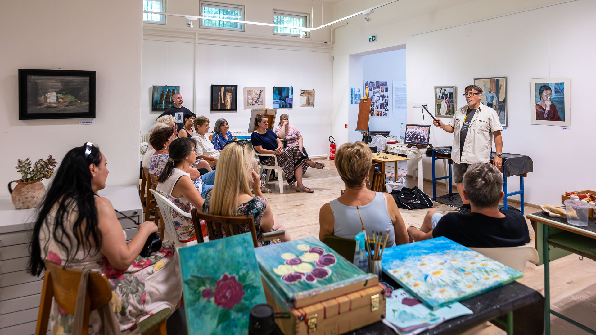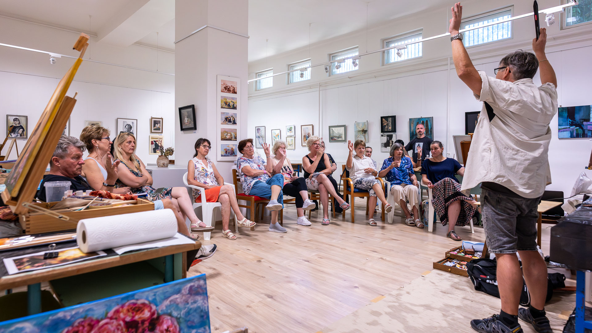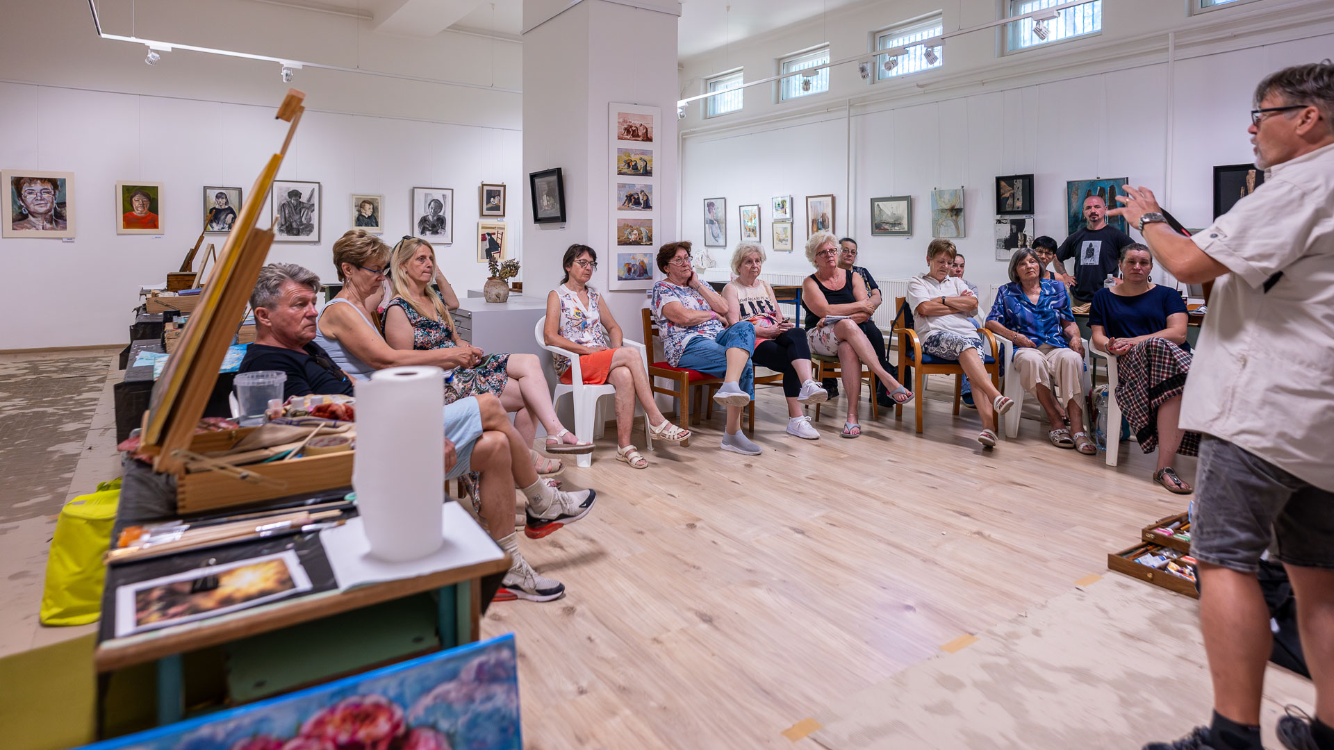 A hét programját színesítette a Hódmezővásárhelyről érkező Zoltai Attila művésztanár, aki az olajfestés technikáját mutatta be.