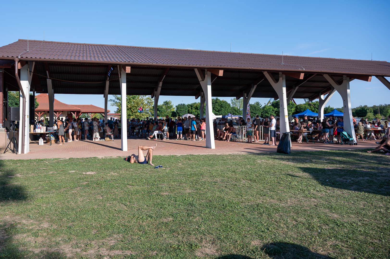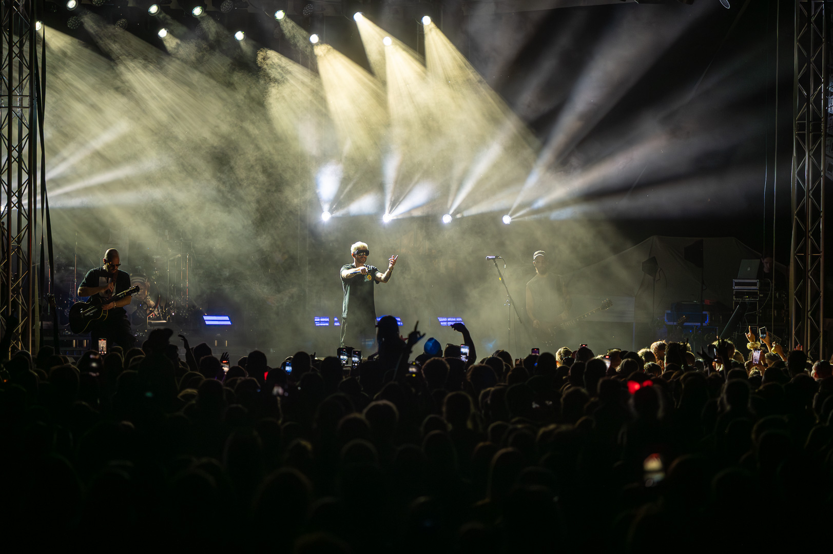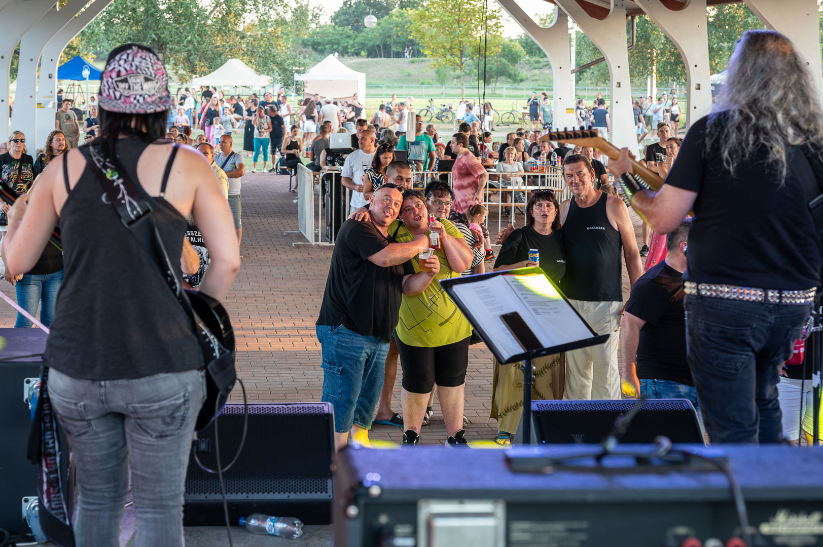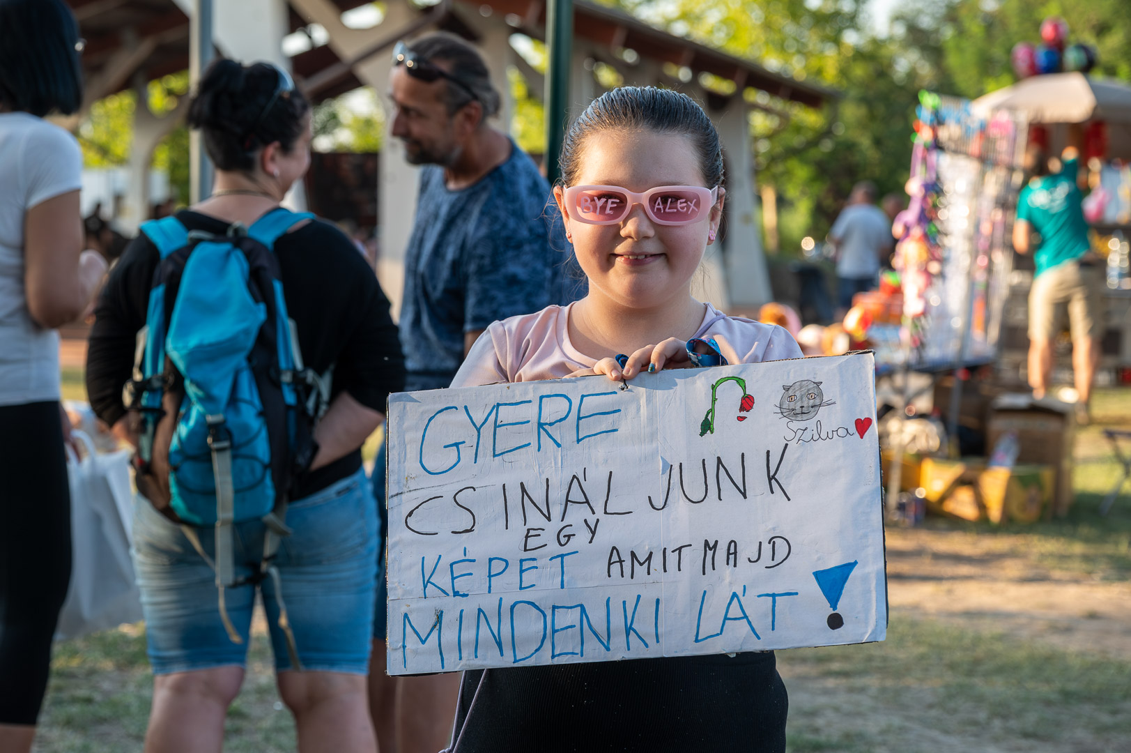 ByeAlex nem is hagyta cserben a kedvéért a faluba érkező közönséget, megénekeltette, megtornáztatta őket a mai könnyűzenei koncertek elmaradhatatlan látványelemei, a macska fadíszek előtt.