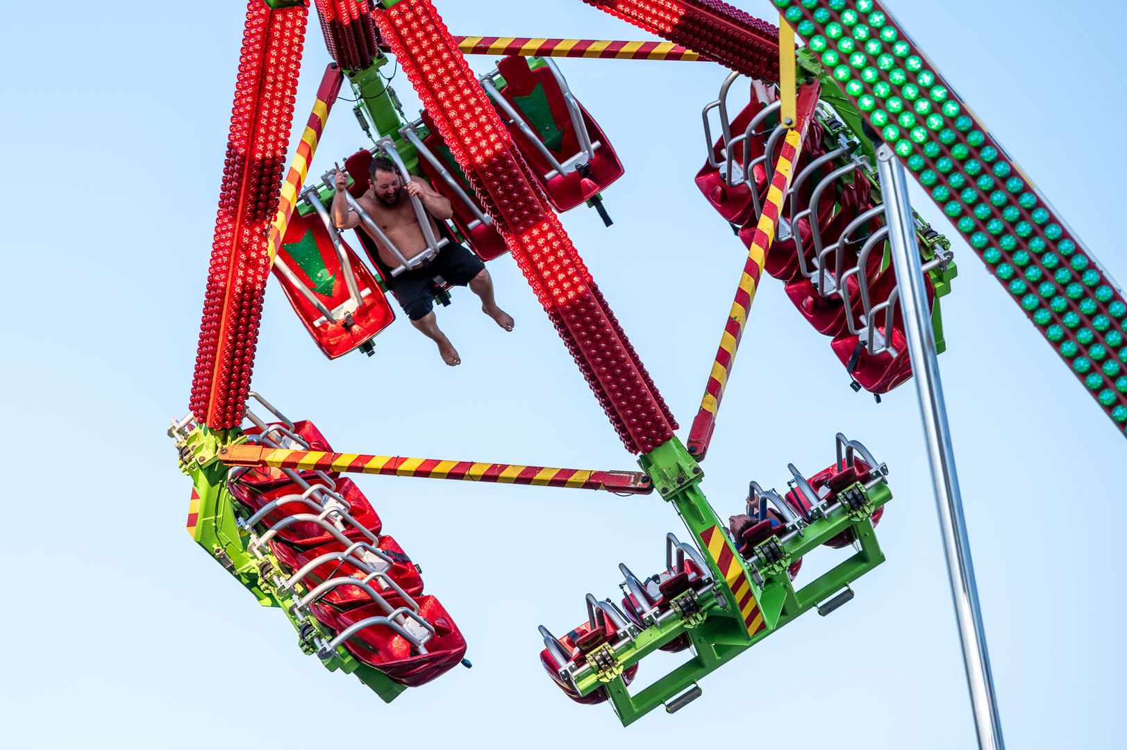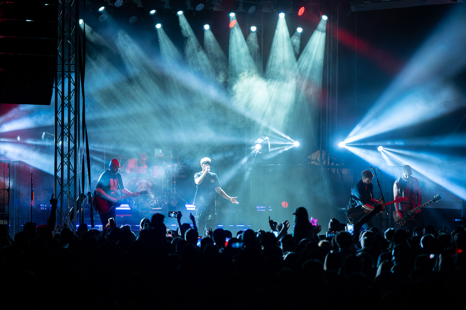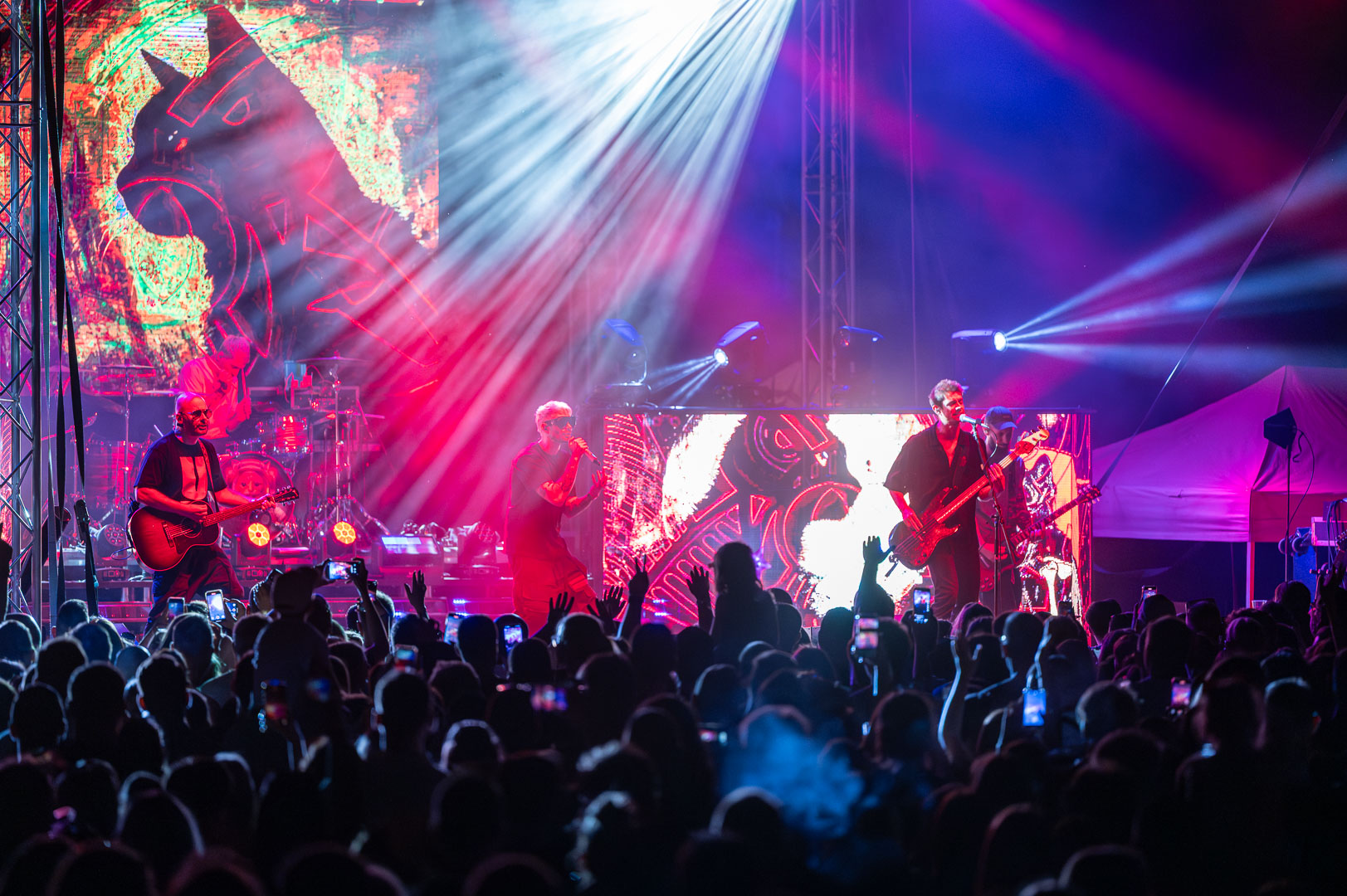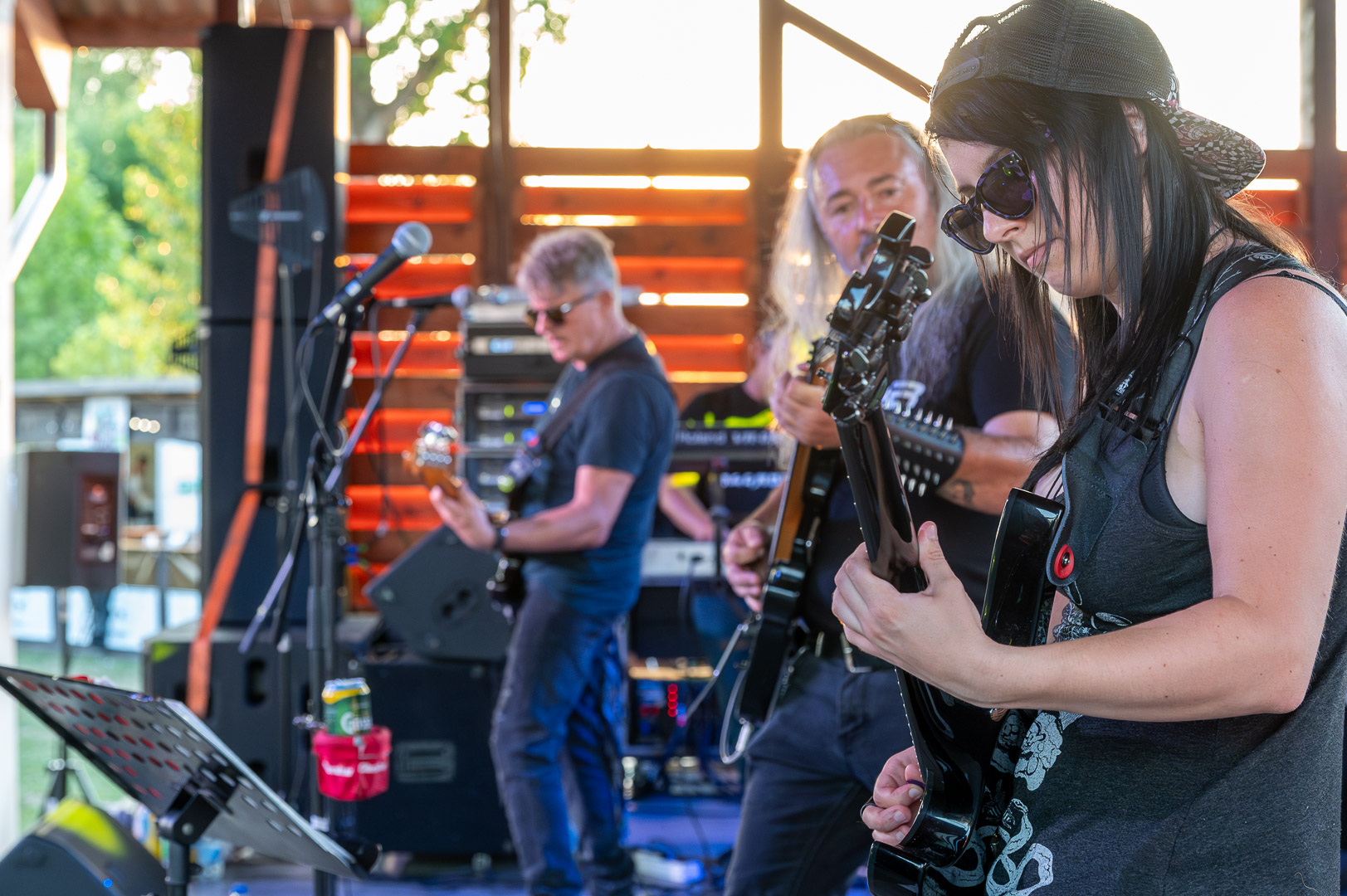 ByeAlex nem is hagyta cserben a kedvéért a faluba érkező közönséget, megénekeltette, megtornáztatta őket a mai könnyűzenei koncertek elmaradhatatlan látványelemei, a macska fadíszek előtt.