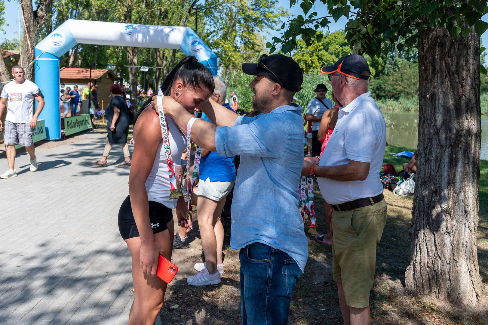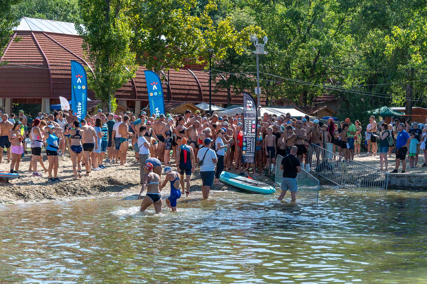 – Az úszó- és futószámok, valamint a duatlon távok tekintetében követtük a hagyományokat, próba jelleggel hirdettük meg a SUP-ot, volt néhány jelentkező, ők is tovább színesítették a rendezvényt. Nagy örömünkre soha ennyi résztvevő nem volt korábban, összesen 87 településről érkeztek sportemberek az ország minden pontjáról. A nevezések számát 350 főben limitáltuk és jól kalkuláltunk, hiszen súrolta ezt a határt a mezőny. Érdekesség, hogy negyvenéves volt az átlagéletkor, ami azt jelenti, hogy leginkább a középkorúak körében népszerű az esemény – újságolta el Rohonyné Urbancsok Zsuzsanna főszervező, akinek a munkáját rutinos rendezői gárda segítette, élen a házigazda SZUSE elnökével, Darida Andrással, vagy az úszókat felügyelő Zalán Csabával.