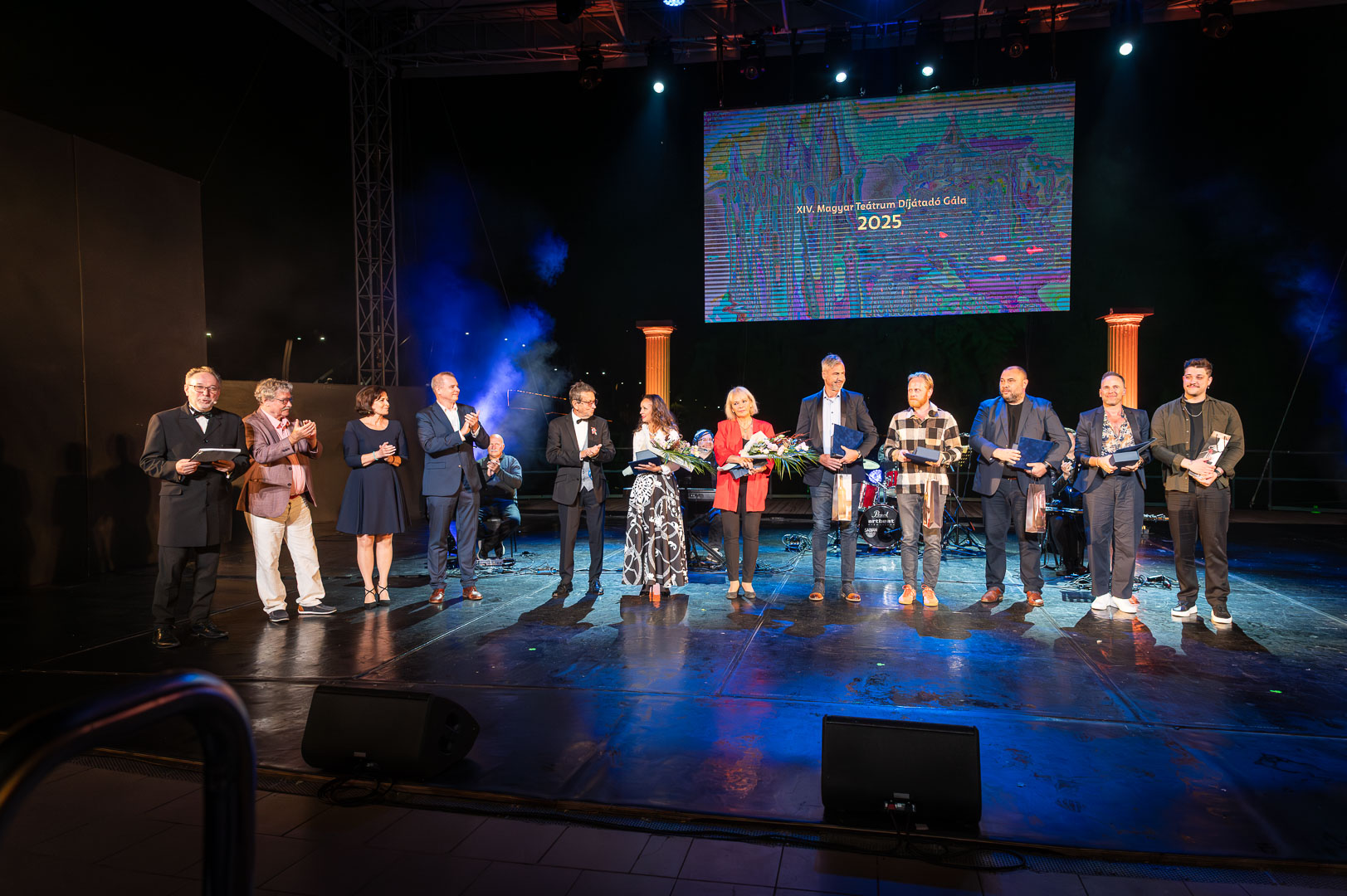 A Díjátadó Gála fő attrakciója a DÍVÁK, azaz Détár Enikő, Fésűs Nelly és Ladinek Judit ABBA ÉS BONEY M örökzöldeket énekeltek élőzenekarukkal kísérve. A színésznők három blokkban fergeteges hangulatot teremtve, szerintem fantasztikus előadásban emelték magasba az estét.