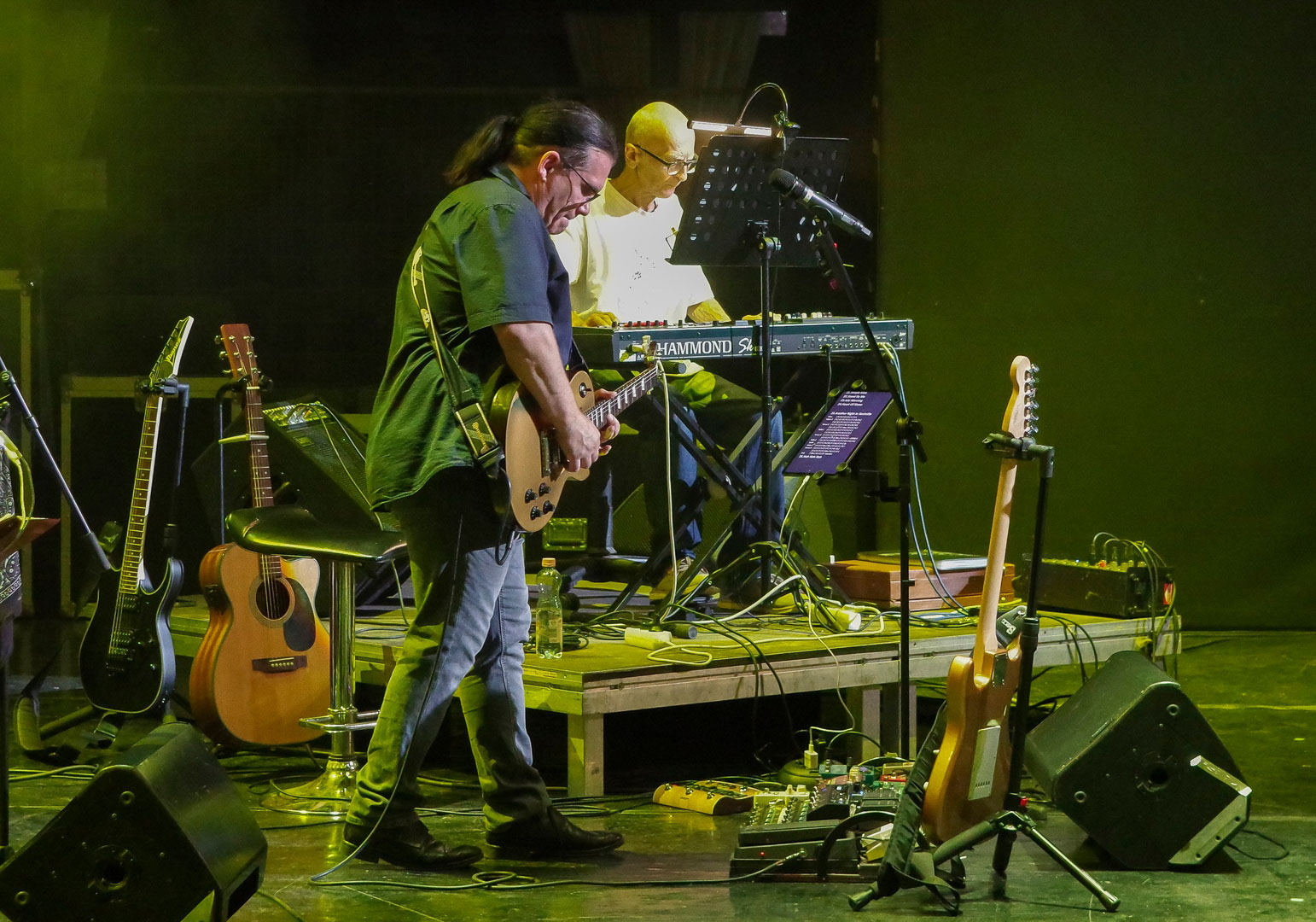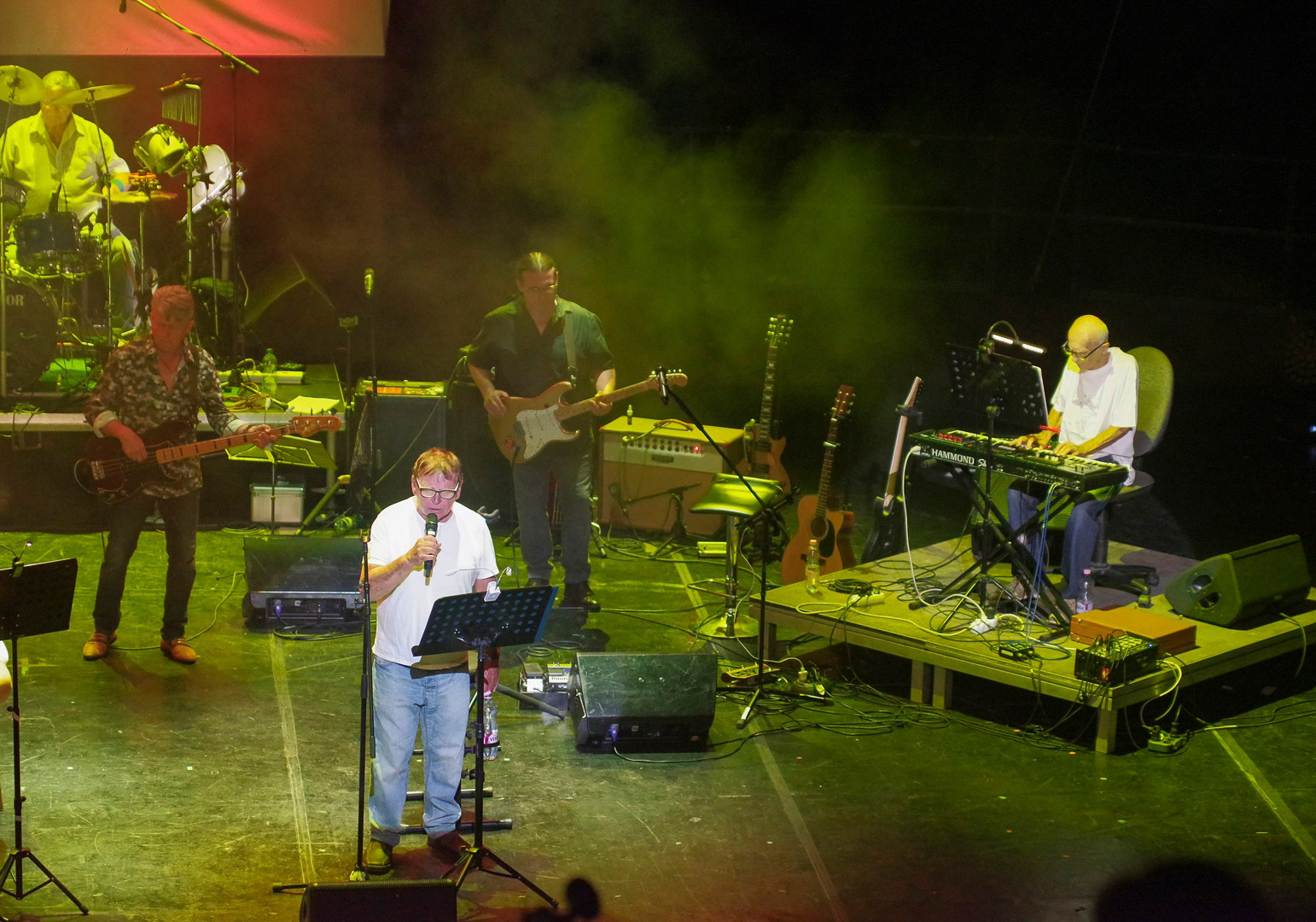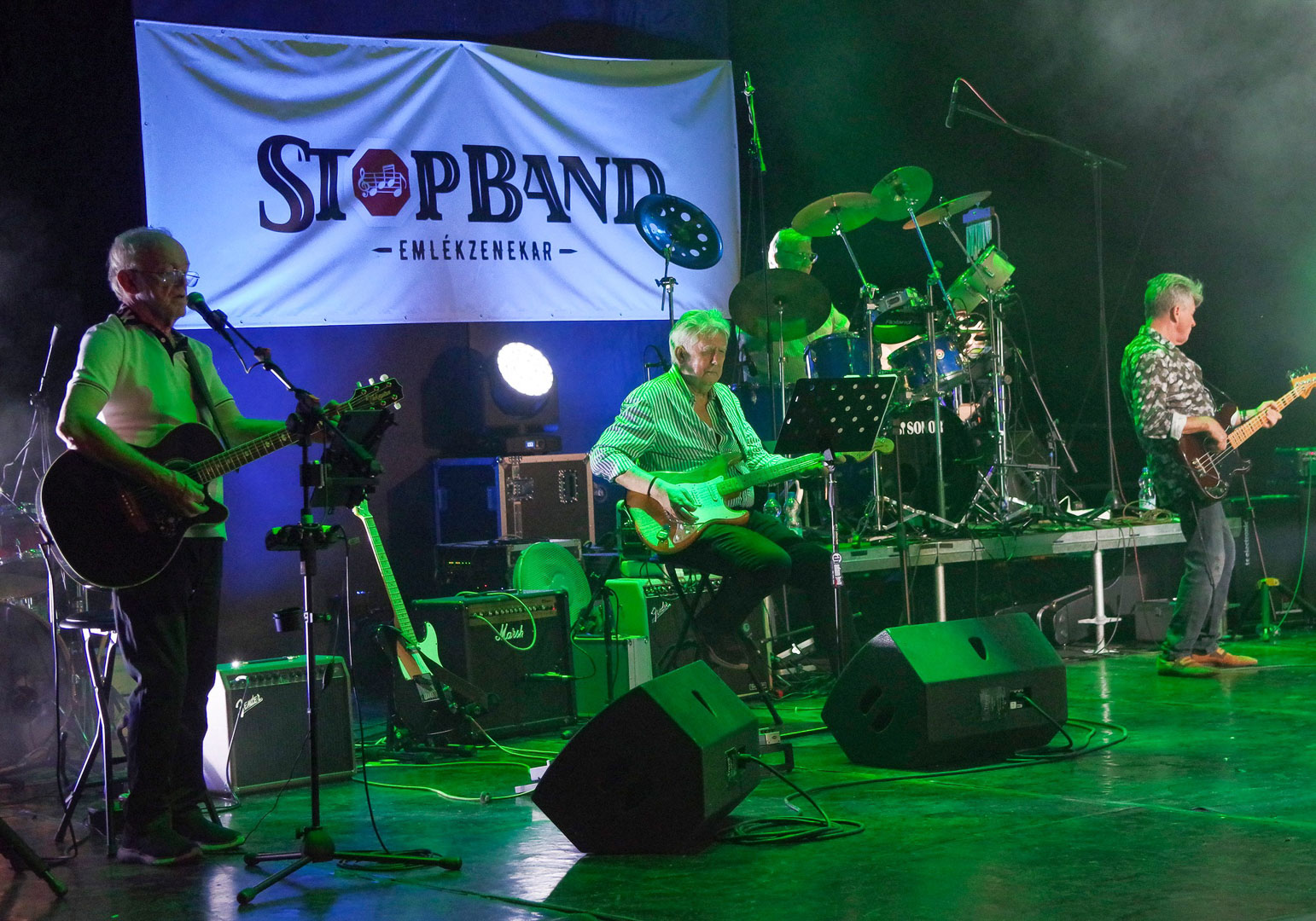 A még sötét színpadról Pál apostol leveléből hangzott el egy idézet, majd Strauss Zarathustra-nyitányára vonultak be az est főszereplői. Bődi János, az emlékkoncertek szokásos házigazdája felelevenítette az emlékzenekar 2017 óta íródó történetét és természetesen megemlékezett az 1970–76 között létezett Stpo Band-ről is, aminek tagjai voltak: Hetényi István (Jagger), Ruzicska Andor (Ruza), Lapis Pál (Patya), Petényi Szilárd (Szike), Máté Endre (Endru) és Komár János (Jansi). A StopBand Emlékzenekar tagjai pedig: Petényi Szilárd basszusgitár, dr. Hudák János ritmusgitár-ének, Liska Tamás Gábor szólógitár, Lapis Pál dobok, Komár János ének, Ruzicska Andor billenytyűs hangszerek, Kécskei Imre ének, illetve Gombkötőné Kiss Edit ének, Soczó Daniella vokál, Korbely István basszusgitár. Bődi János – mérnökember lévén – kiszámolta, hogy a zenekar átlagéletkora 76 év.