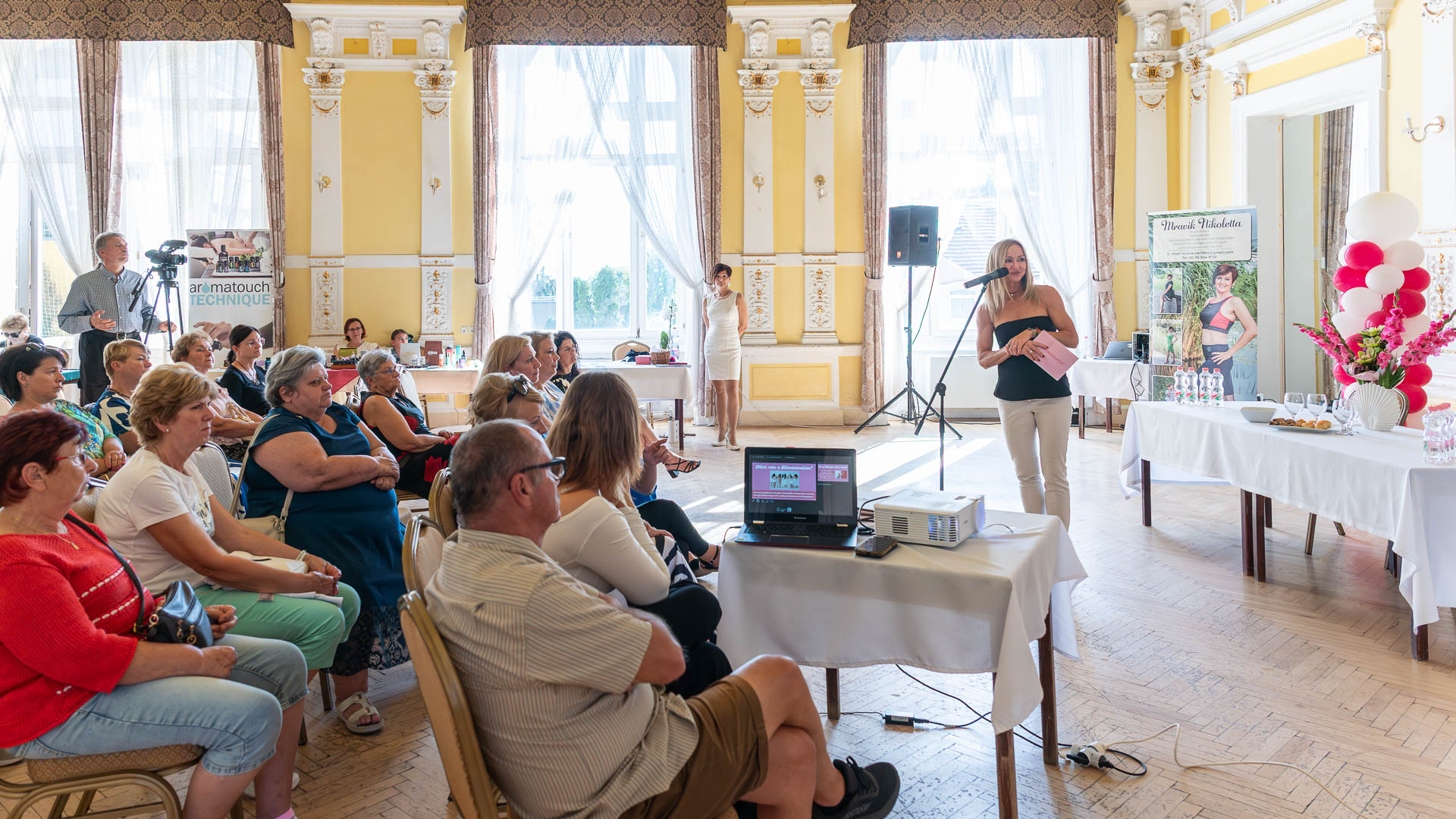 Gyöngyösi Szilvia szombaton Szarvasra érkezett, hogy szarvasi mentoráltjával, Mravik Nikolettával, dr. Szirony Gabriella gyógyszerésszel, dr. Ruzsa János intervenciós kardiológussal, illetve Varga Éva klinikai szakpszichológus segítségével mutasson irány az Árpád Szálló dísztermében ülő hölgyeknek, illetve a téma iránt csekélyebb számban érdeklődő férfinek.