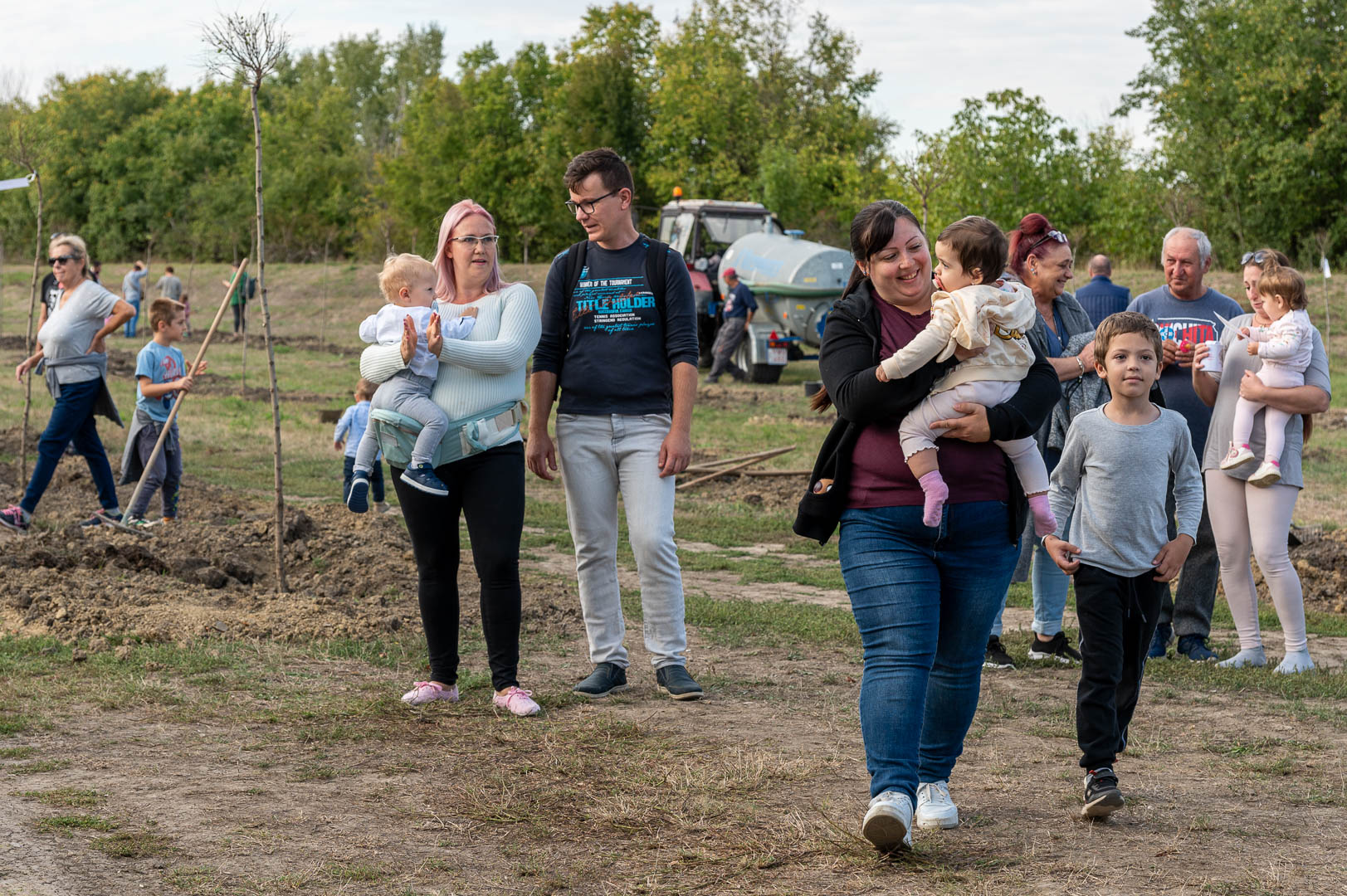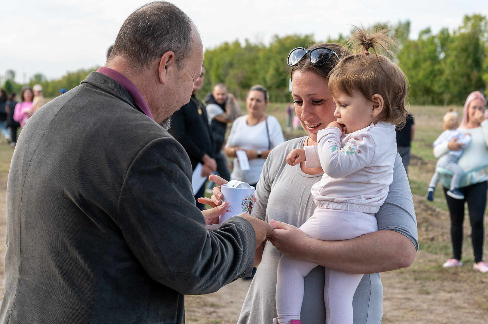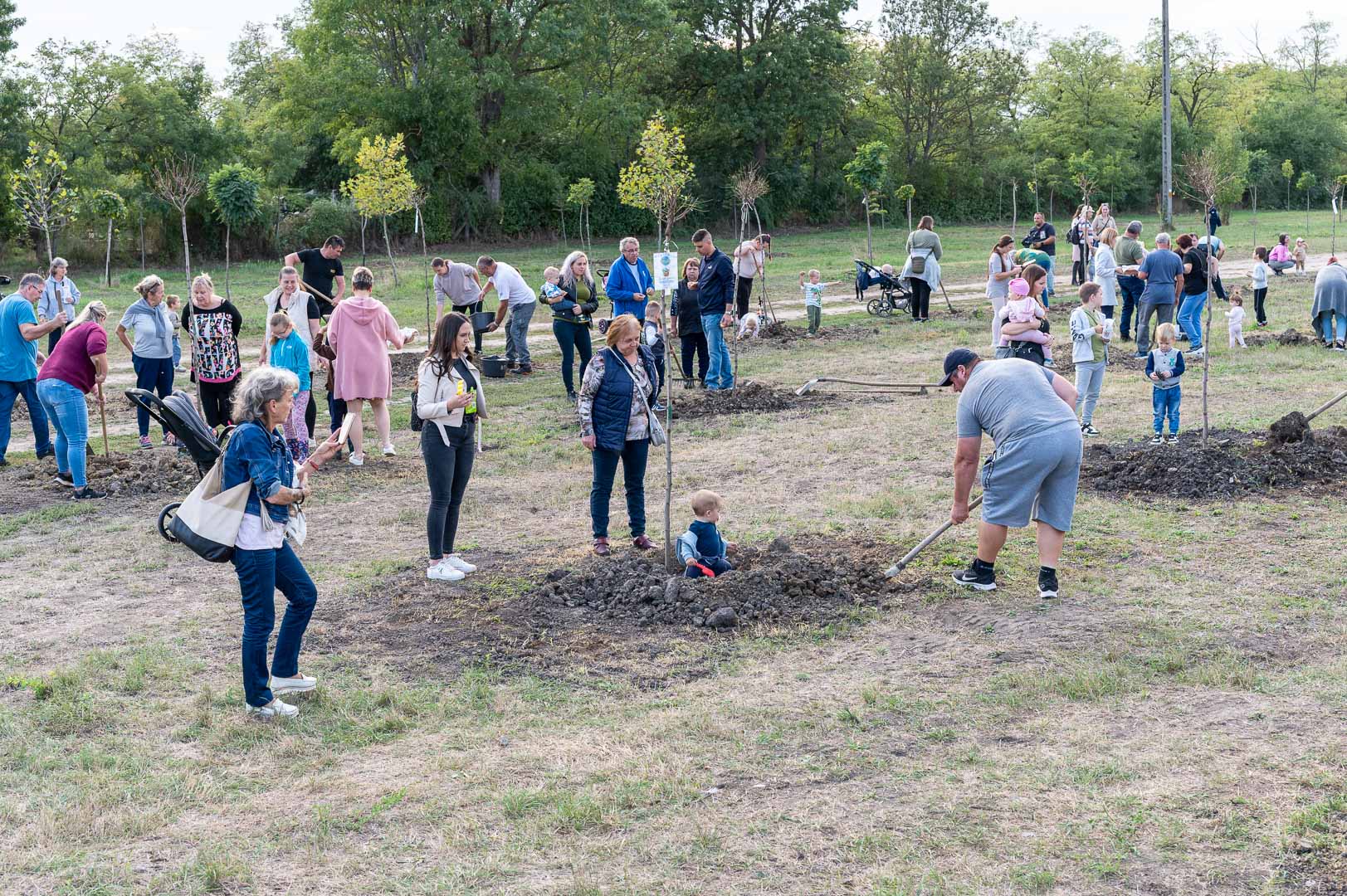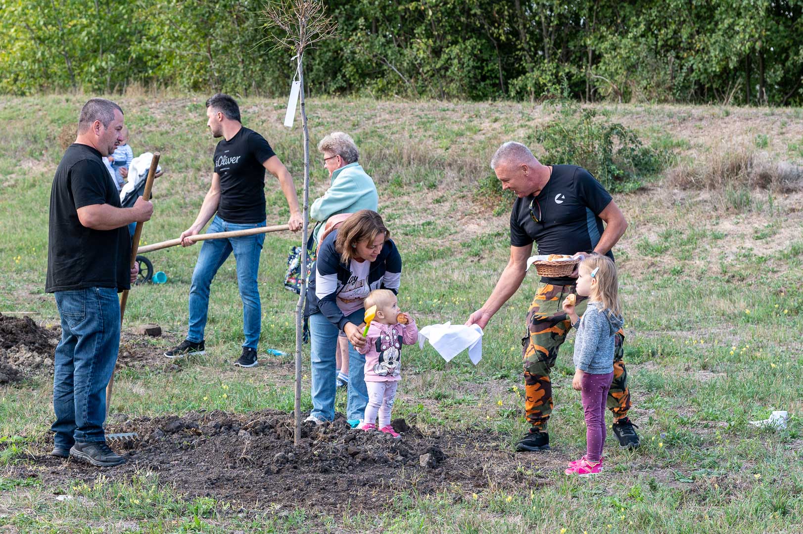 Sinka Imre polgármester beszédében köszöntötte a jelenlévő családokat, és megköszönte, hogy részt vesznek a hagyományos faültetési ünnepségen, amelyet az önkormányzat 2009 óta minden évben megszervez. Hangsúlyozta, hogy a faültetés célja egyszerre szimbolikus és közösségteremtő: gyökereket adni a településen született gyermekeknek, valamint egy emlék-ligetet létrehozni számukra. Kiemelte, hogy minden család szabadon kiválaszthatja a gyermekének ültetett fát, amelynek gondozásáról az önkormányzat gondoskodik, szükség esetén cserével is. Végül jelezte, hogy a program részeként a babák számára apró ajándékot is átadnak, majd felkérte a szülőket, hogy ABC sorrendben vegyék át a meglepetést, benne a fájuk megjelölésére szolgáló cédulával.