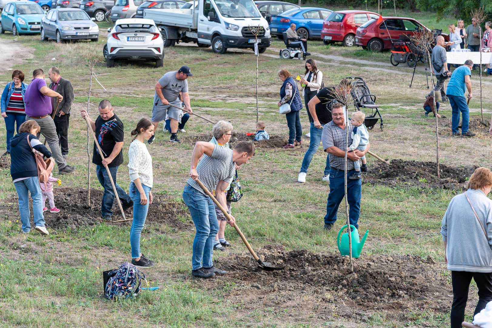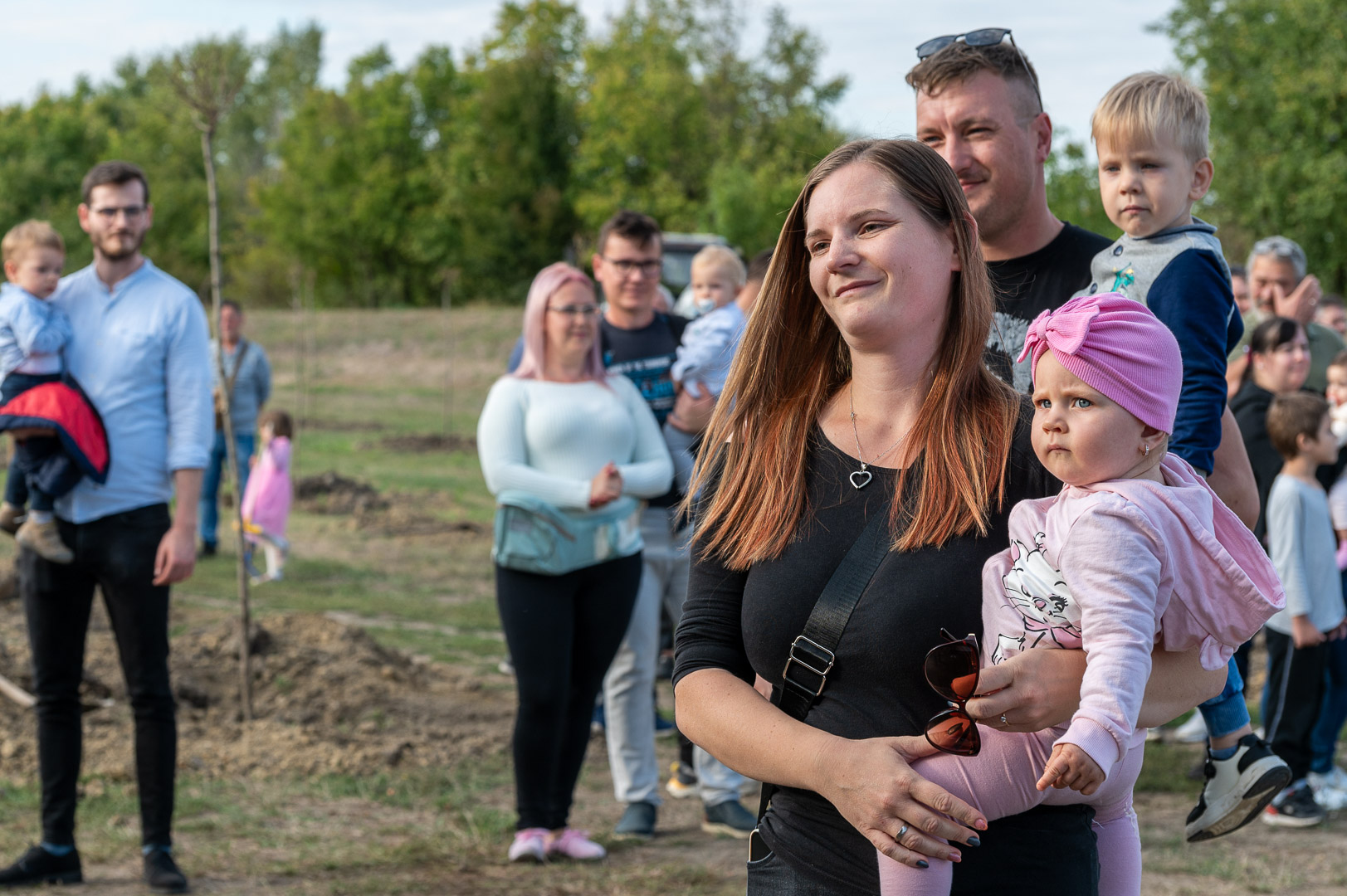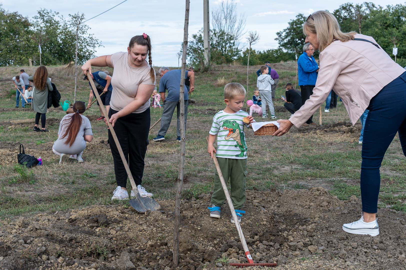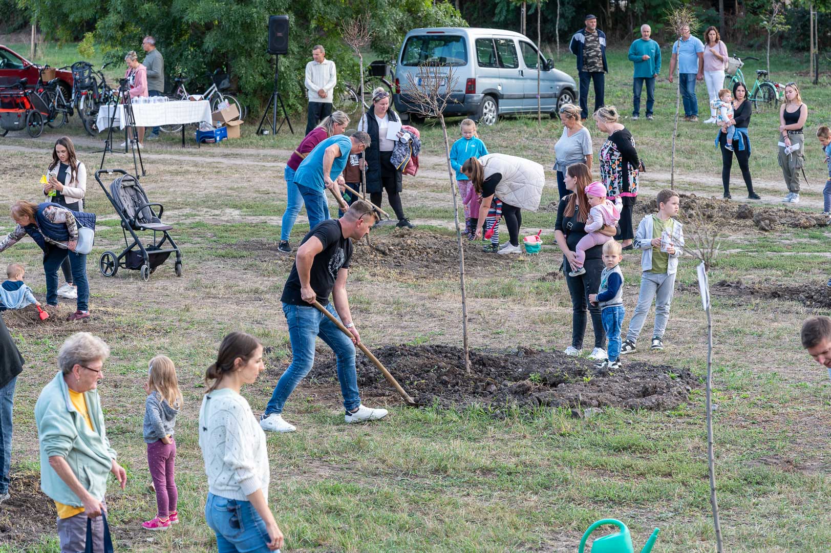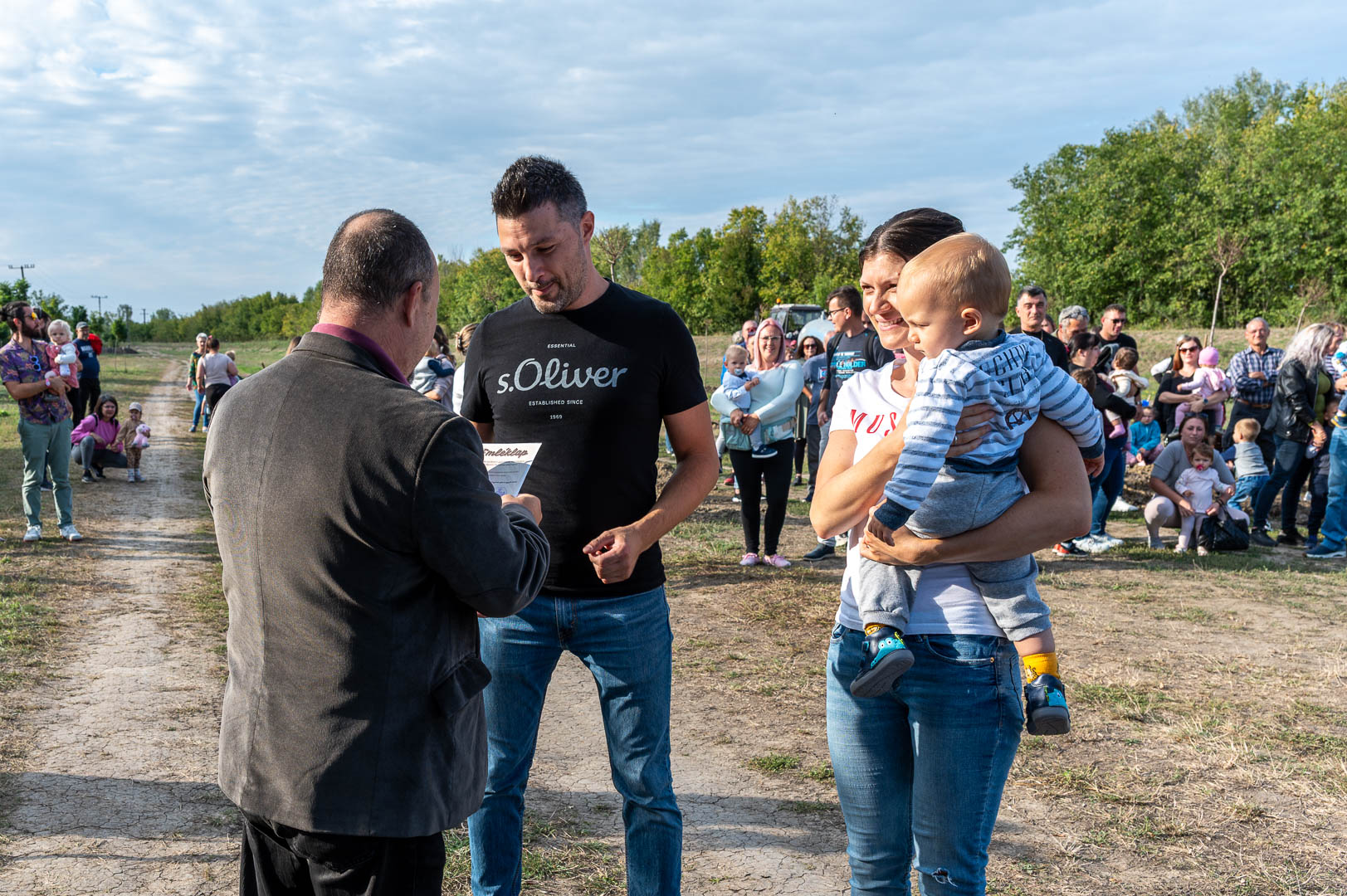 Sinka Imre polgármester beszédében köszöntötte a jelenlévő családokat, és megköszönte, hogy részt vesznek a hagyományos faültetési ünnepségen, amelyet az önkormányzat 2009 óta minden évben megszervez. Hangsúlyozta, hogy a faültetés célja egyszerre szimbolikus és közösségteremtő: gyökereket adni a településen született gyermekeknek, valamint egy emlék-ligetet létrehozni számukra. Kiemelte, hogy minden család szabadon kiválaszthatja a gyermekének ültetett fát, amelynek gondozásáról az önkormányzat gondoskodik, szükség esetén cserével is. Végül jelezte, hogy a program részeként a babák számára apró ajándékot is átadnak, majd felkérte a szülőket, hogy ABC sorrendben vegyék át a meglepetést, benne a fájuk megjelölésére szolgáló cédulával.