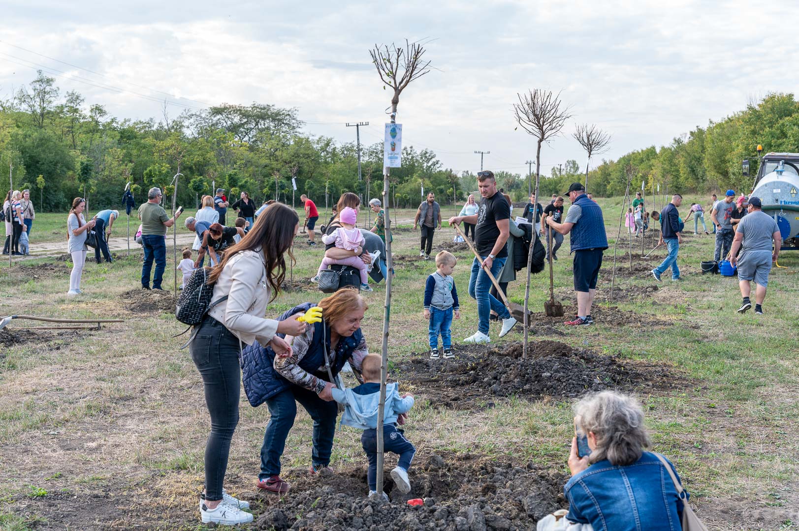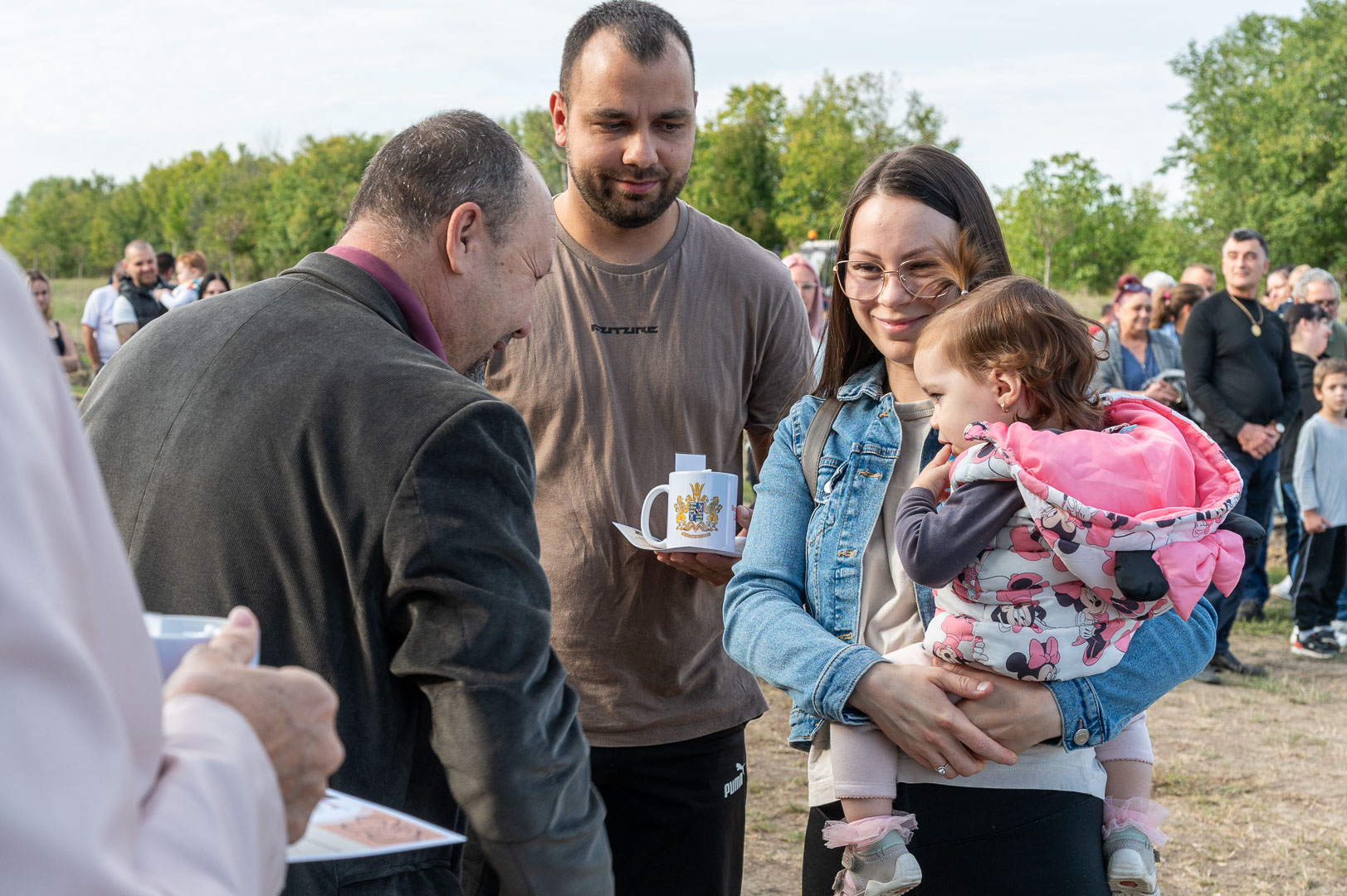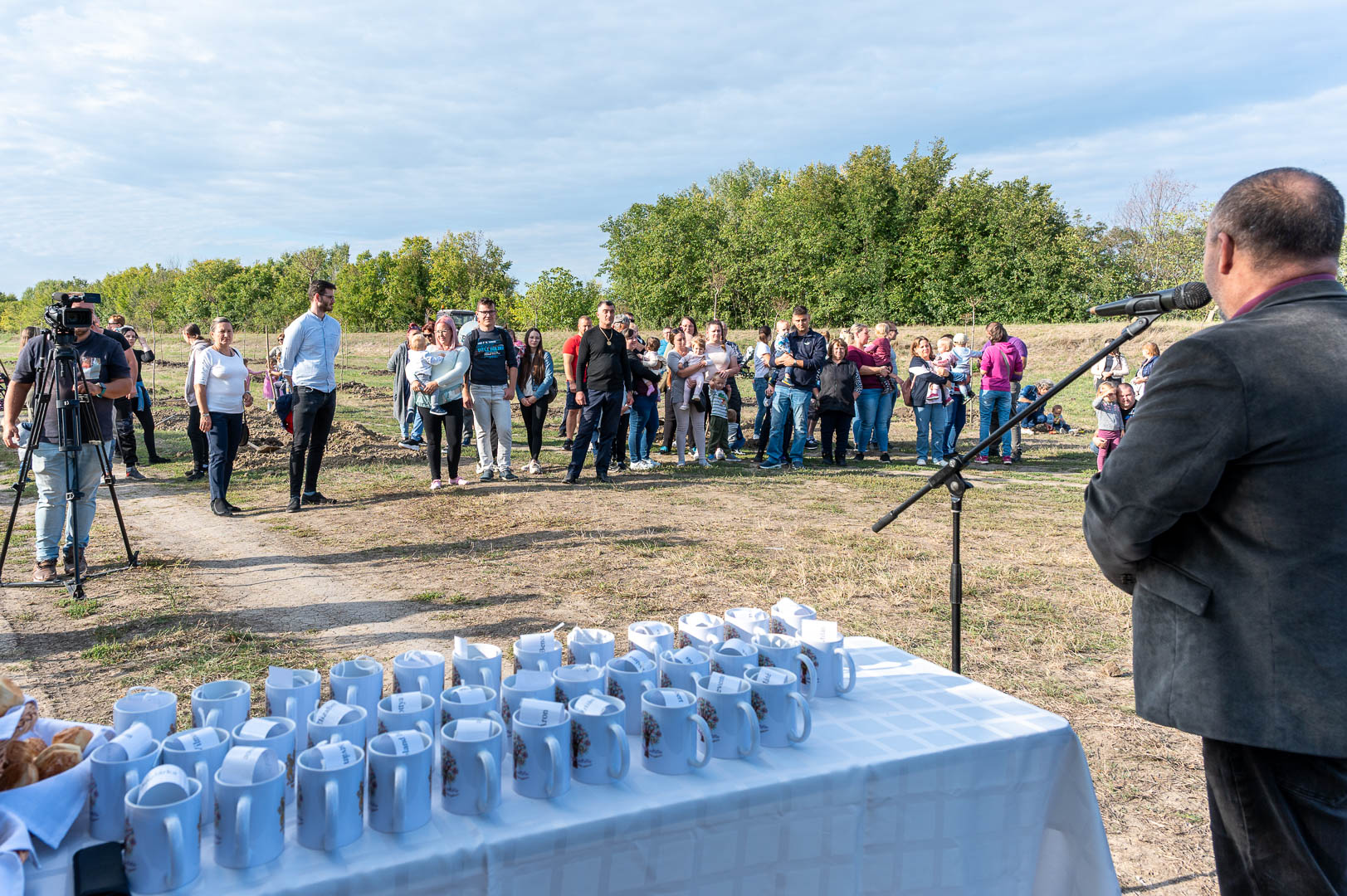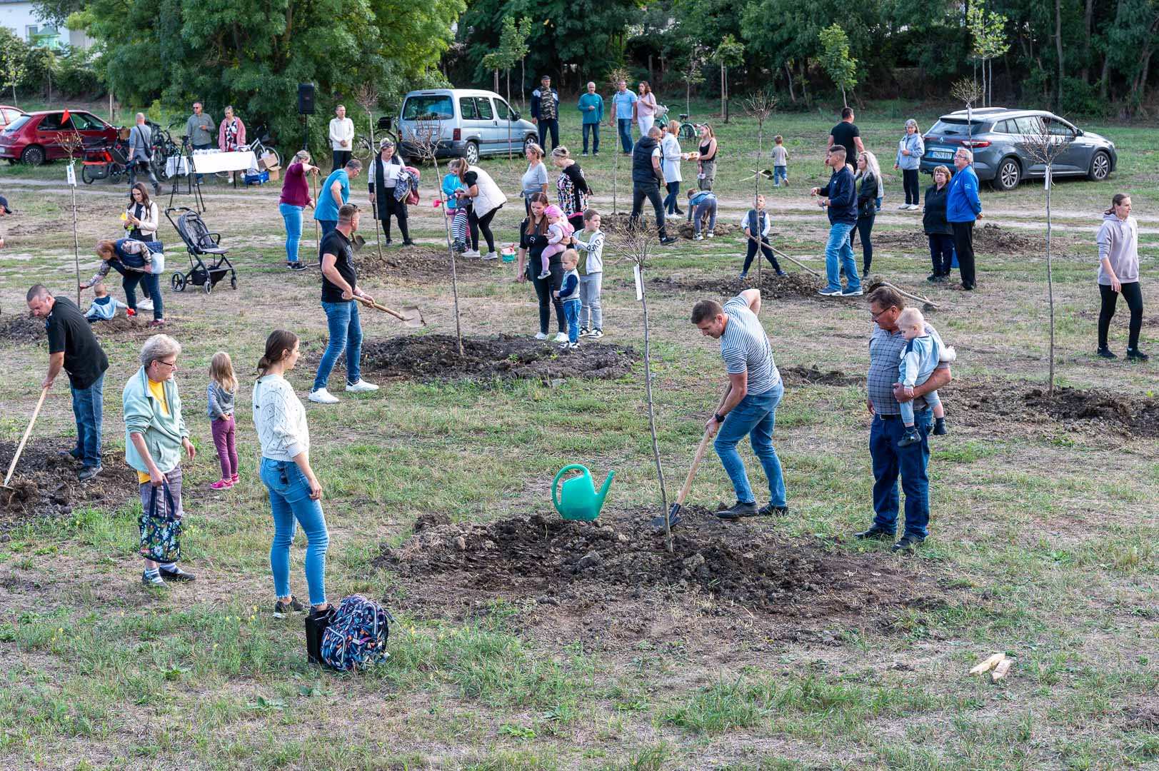 Sinka Imre polgármester beszédében köszöntötte a jelenlévő családokat, és megköszönte, hogy részt vesznek a hagyományos faültetési ünnepségen, amelyet az önkormányzat 2009 óta minden évben megszervez. Hangsúlyozta, hogy a faültetés célja egyszerre szimbolikus és közösségteremtő: gyökereket adni a településen született gyermekeknek, valamint egy emlék-ligetet létrehozni számukra. Kiemelte, hogy minden család szabadon kiválaszthatja a gyermekének ültetett fát, amelynek gondozásáról az önkormányzat gondoskodik, szükség esetén cserével is. Végül jelezte, hogy a program részeként a babák számára apró ajándékot is átadnak, majd felkérte a szülőket, hogy ABC sorrendben vegyék át a meglepetést, benne a fájuk megjelölésére szolgáló cédulával.