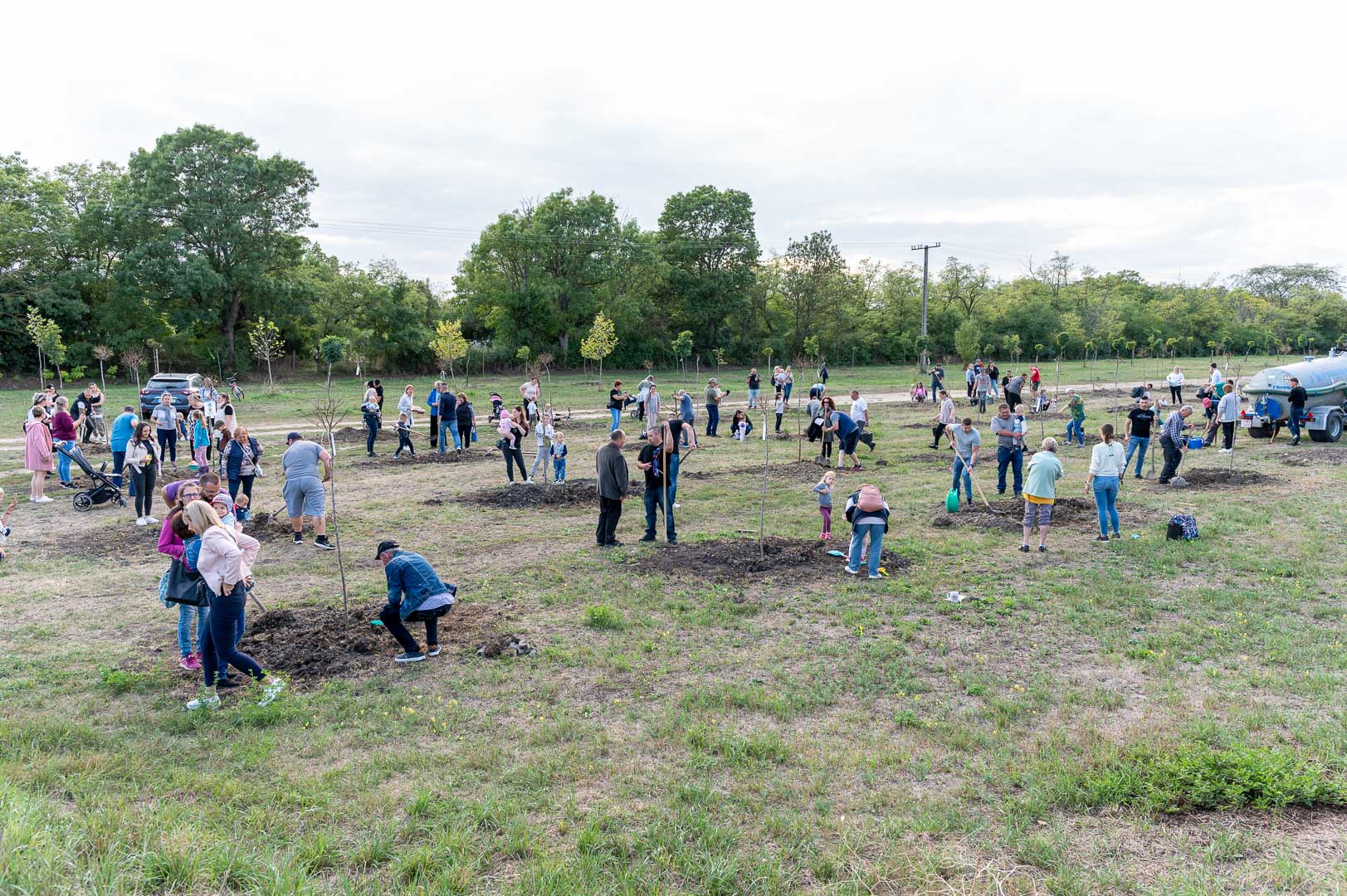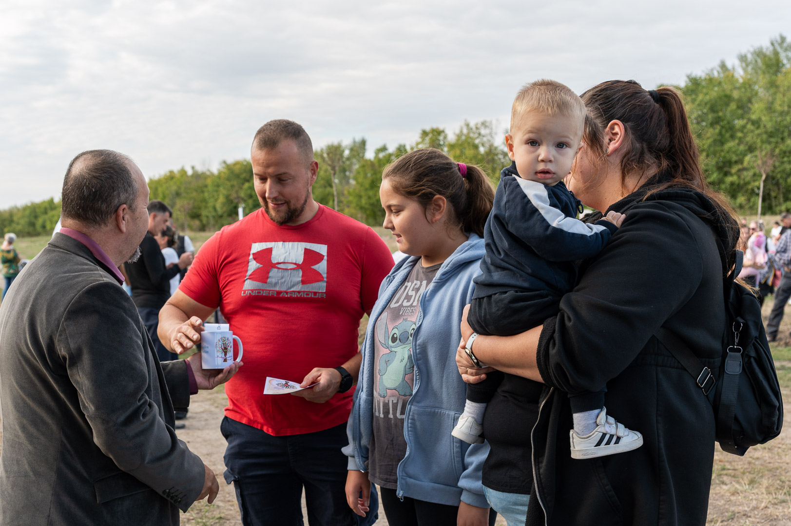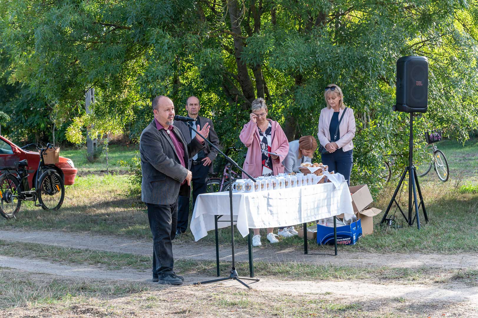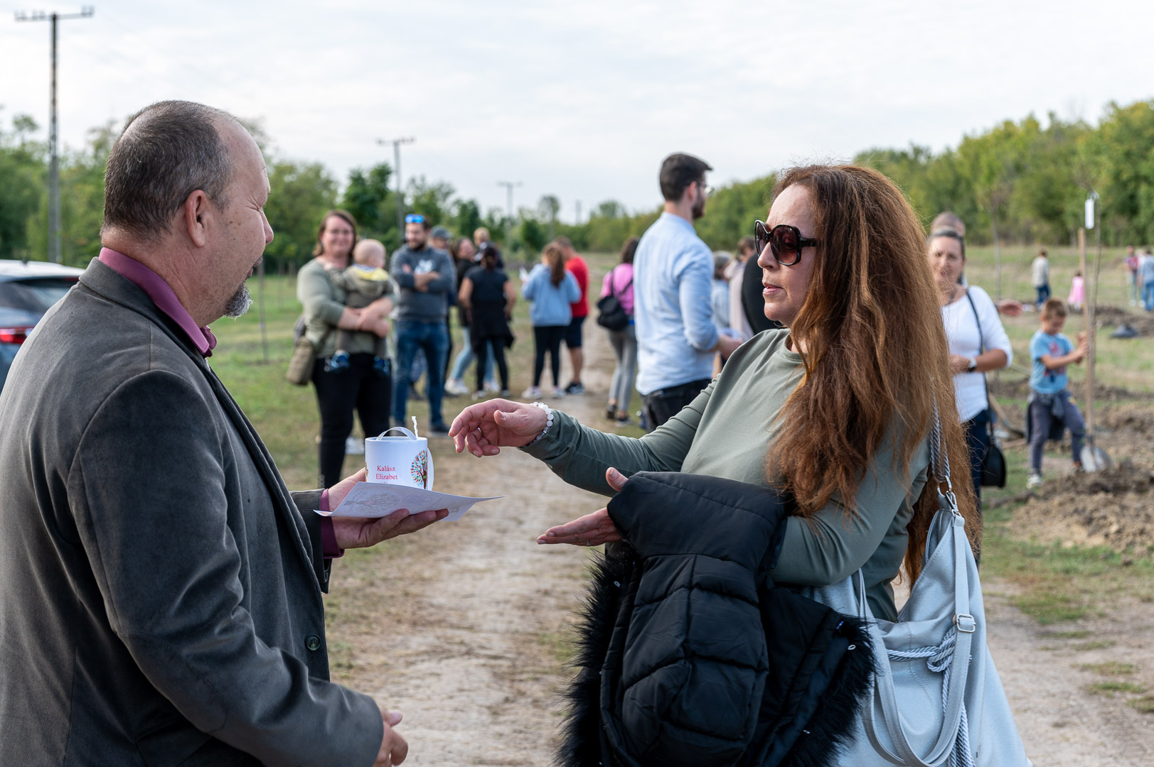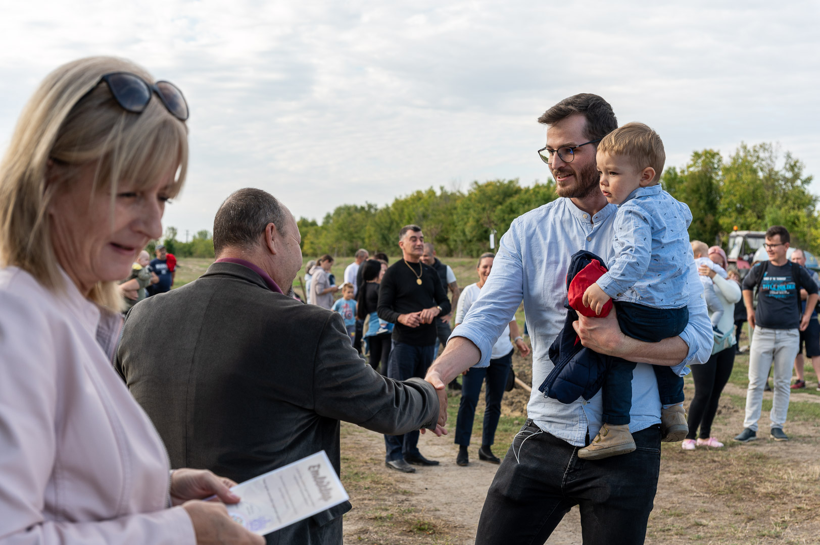 Sinka Imre polgármester beszédében köszöntötte a jelenlévő családokat, és megköszönte, hogy részt vesznek a hagyományos faültetési ünnepségen, amelyet az önkormányzat 2009 óta minden évben megszervez. Hangsúlyozta, hogy a faültetés célja egyszerre szimbolikus és közösségteremtő: gyökereket adni a településen született gyermekeknek, valamint egy emlék-ligetet létrehozni számukra. Kiemelte, hogy minden család szabadon kiválaszthatja a gyermekének ültetett fát, amelynek gondozásáról az önkormányzat gondoskodik, szükség esetén cserével is. Végül jelezte, hogy a program részeként a babák számára apró ajándékot is átadnak, majd felkérte a szülőket, hogy ABC sorrendben vegyék át a meglepetést, benne a fájuk megjelölésére szolgáló cédulával.