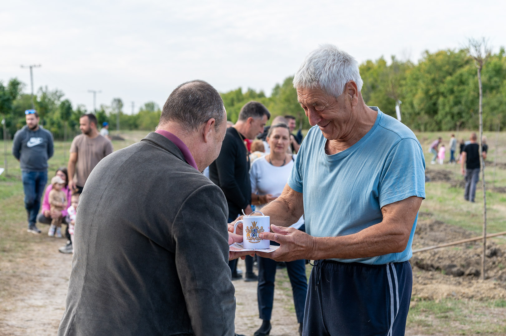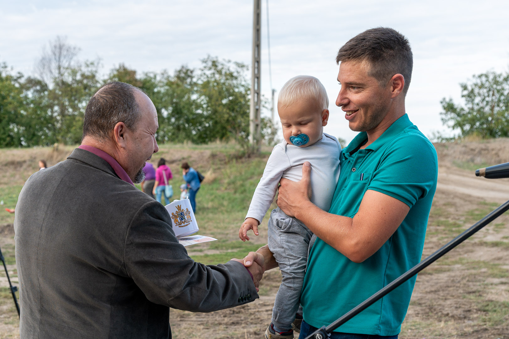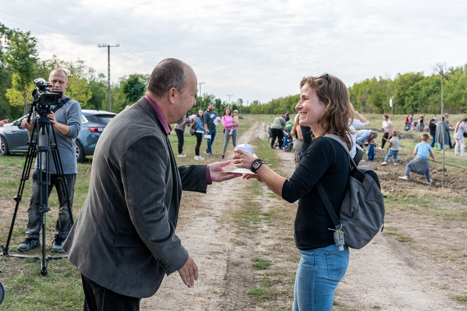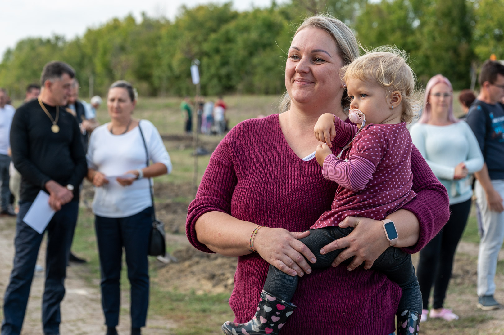 Sinka Imre polgármester beszédében köszöntötte a jelenlévő családokat, és megköszönte, hogy részt vesznek a hagyományos faültetési ünnepségen, amelyet az önkormányzat 2009 óta minden évben megszervez. Hangsúlyozta, hogy a faültetés célja egyszerre szimbolikus és közösségteremtő: gyökereket adni a településen született gyermekeknek, valamint egy emlék-ligetet létrehozni számukra. Kiemelte, hogy minden család szabadon kiválaszthatja a gyermekének ültetett fát, amelynek gondozásáról az önkormányzat gondoskodik, szükség esetén cserével is. Végül jelezte, hogy a program részeként a babák számára apró ajándékot is átadnak, majd felkérte a szülőket, hogy ABC sorrendben vegyék át a meglepetést, benne a fájuk megjelölésére szolgáló cédulával.