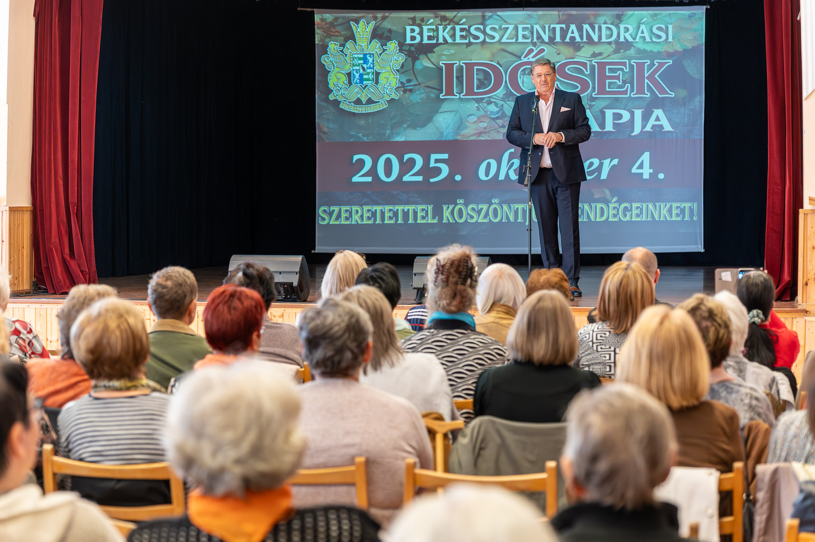 Elsőként Sinka Imre polgármester állt a színpadra, hogy háláját és tiszteletét fejezve ki az idősek iránt, akik munkájukkal és kitartásukkal megalapozták Békésszentandrás fejlődését. Rövid köszöntőjében kiemelte, hogy a falu közösségének ereje az összetartásban rejlik, és megköszönte az elődök által végzett áldozatos munkát.