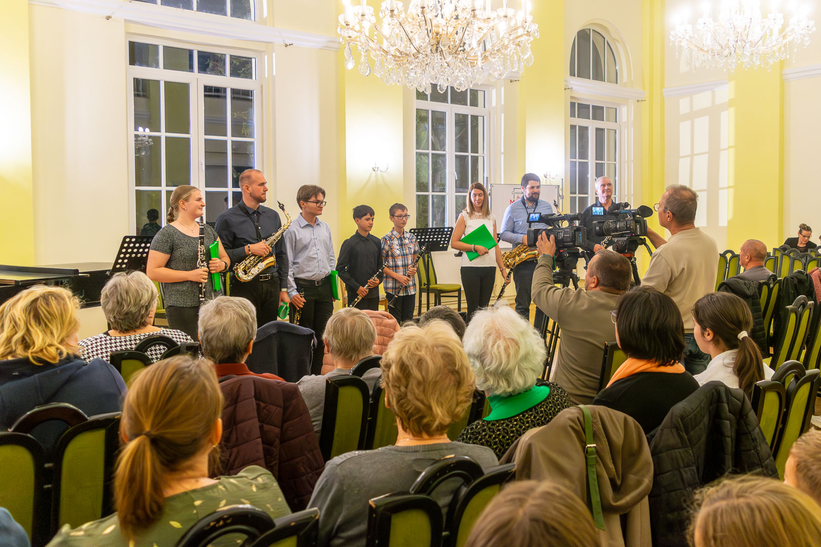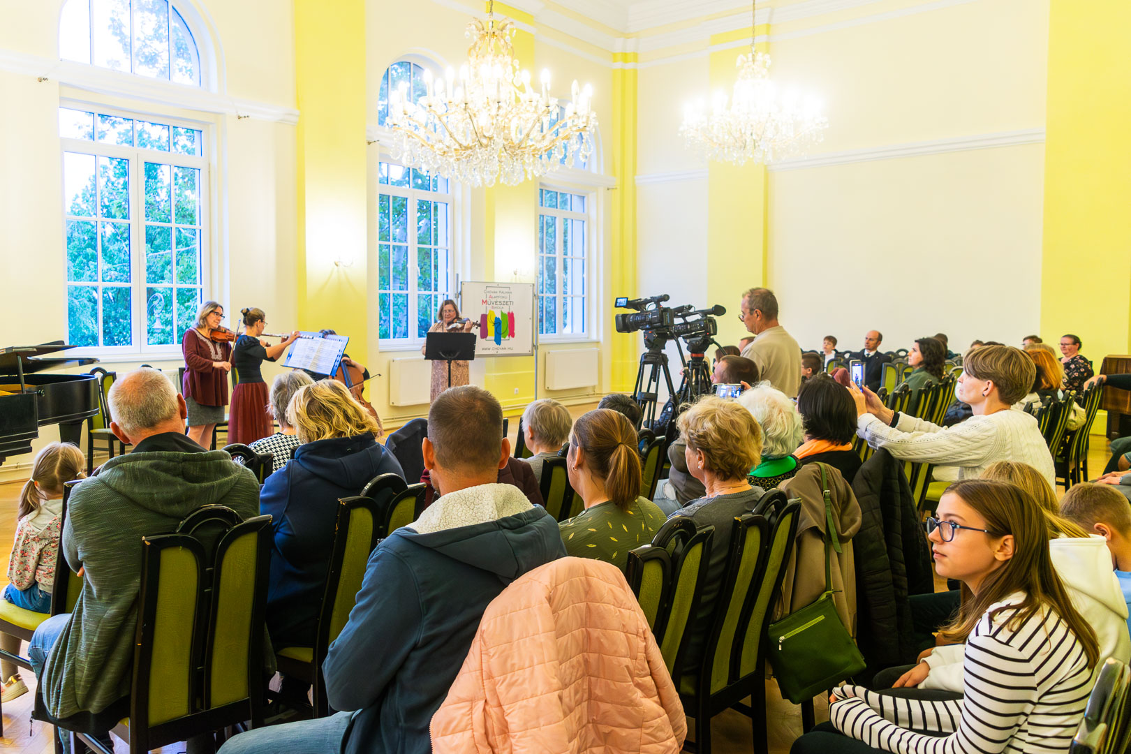 A koncertrendező Chován Kálmán Alapfokú Művészeti Iskola igazgatója, Körösparti Ágnes a közönséget köszöntve megemlékezett Yehudi Menuhin hegedűművészről, akinek kezdeményezésére 1975 óta ünneplik világszerte a zenét október első napján. Amint azt az igazgatónőtől megtudhattuk, a zenei tanszak pedagógusai és növendékei készültek, hogy a Zene Világnapján elkísérjék a szarvasi közönséget a képzeletbeli térben és időben is jelentős utazásra. Aki pedig az útikalauz volt, az maga az igazgatónő, aki a zeneszerzőkről, zeneművekről és a zenészekről is beszélt.
