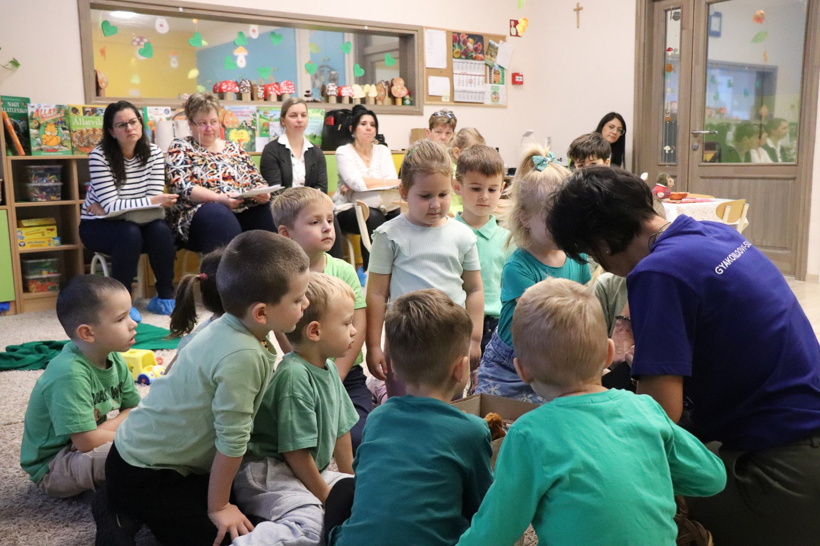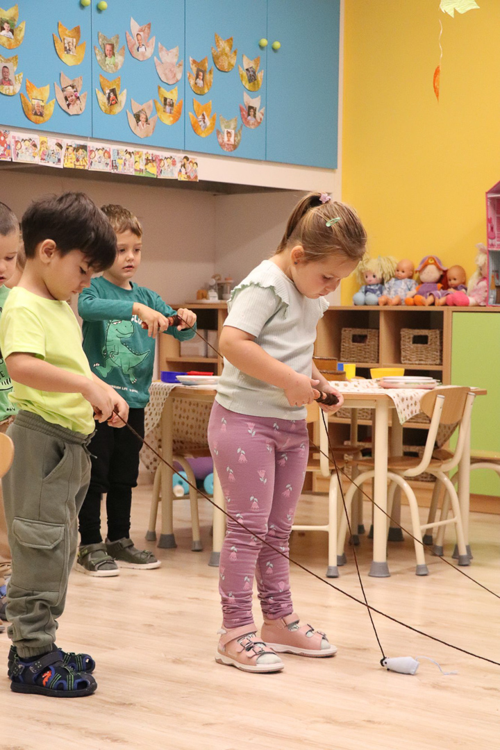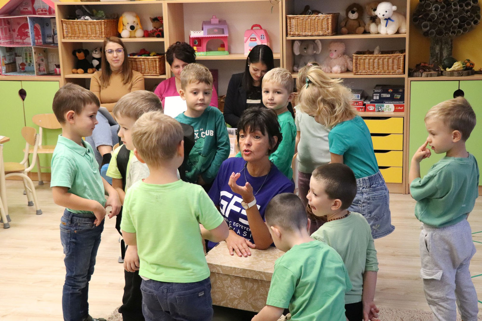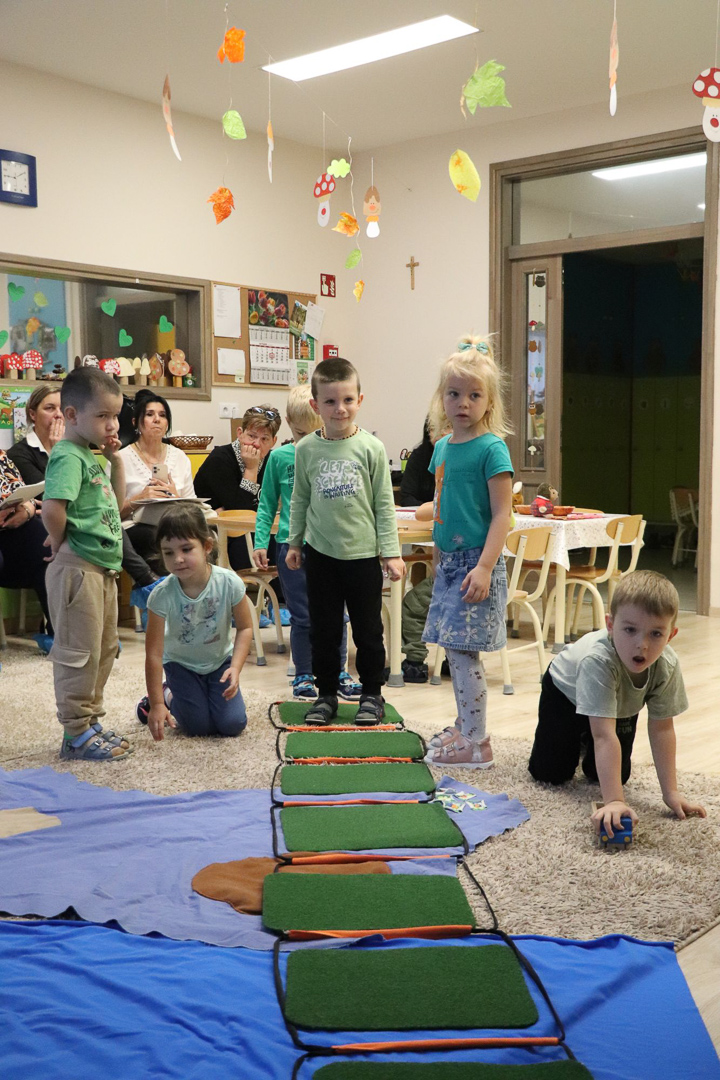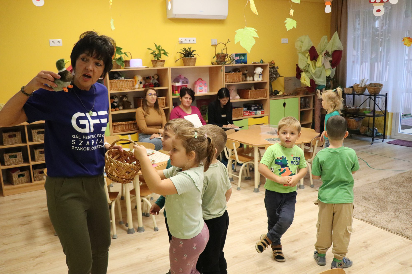 Tóth Ágnes szakvezető óvodapedagógus irányításával a Tulipán csoportban különleges vendég járt: Tóni, a tőkésréce. A gyerekek közösen segítettek neki hazatalálni, miközben játékos, élményalapú feladatokon keresztül fedezték fel a természet világát. Térképet használva bejárták a csoportszobát, és hátizsákjukból mindig a megfelelő eszközt választották ki a feladatok megoldásához. Útjuk során a mókus odúban diót gyűjtöttek, a rókalyuknál a gyógynövények családjával ismerkedtek meg, a nyuszival pedig kertészkedtek, répát szedtek, az éjszaka vadászó bagolynak is segítettek egérre vadászni. Végül megtalálták Tóni otthonát, a tavat, amelyet közösen megtisztítottak a hulladéktól, miközben a „zöld hídon” átkelve a környezetvédelem fontosságáról is tanultak.