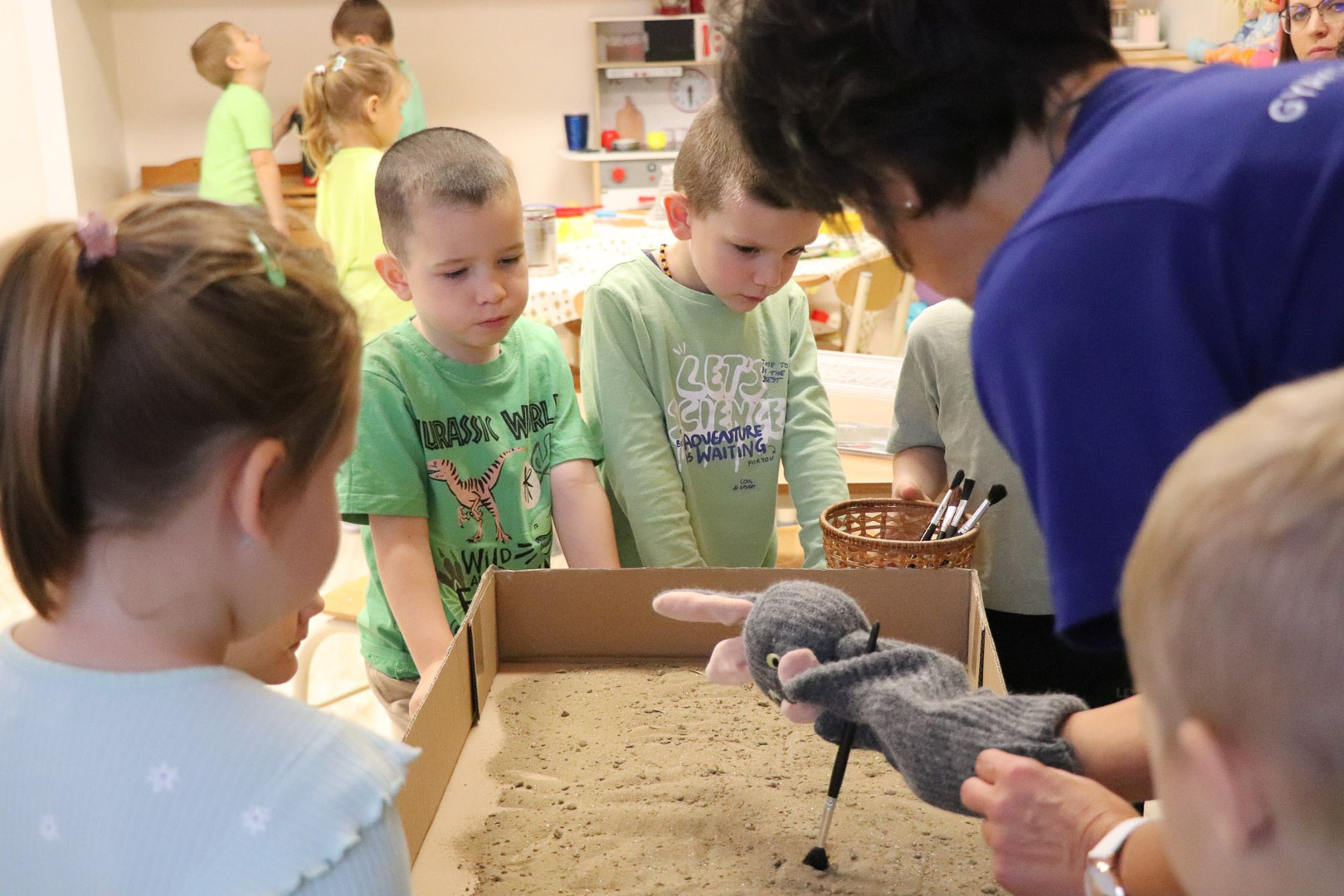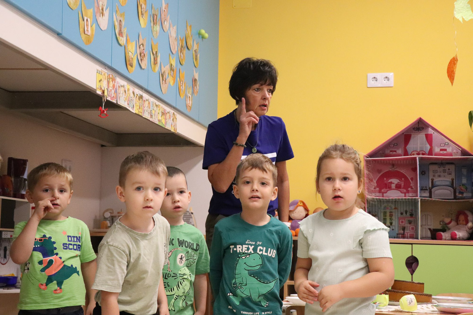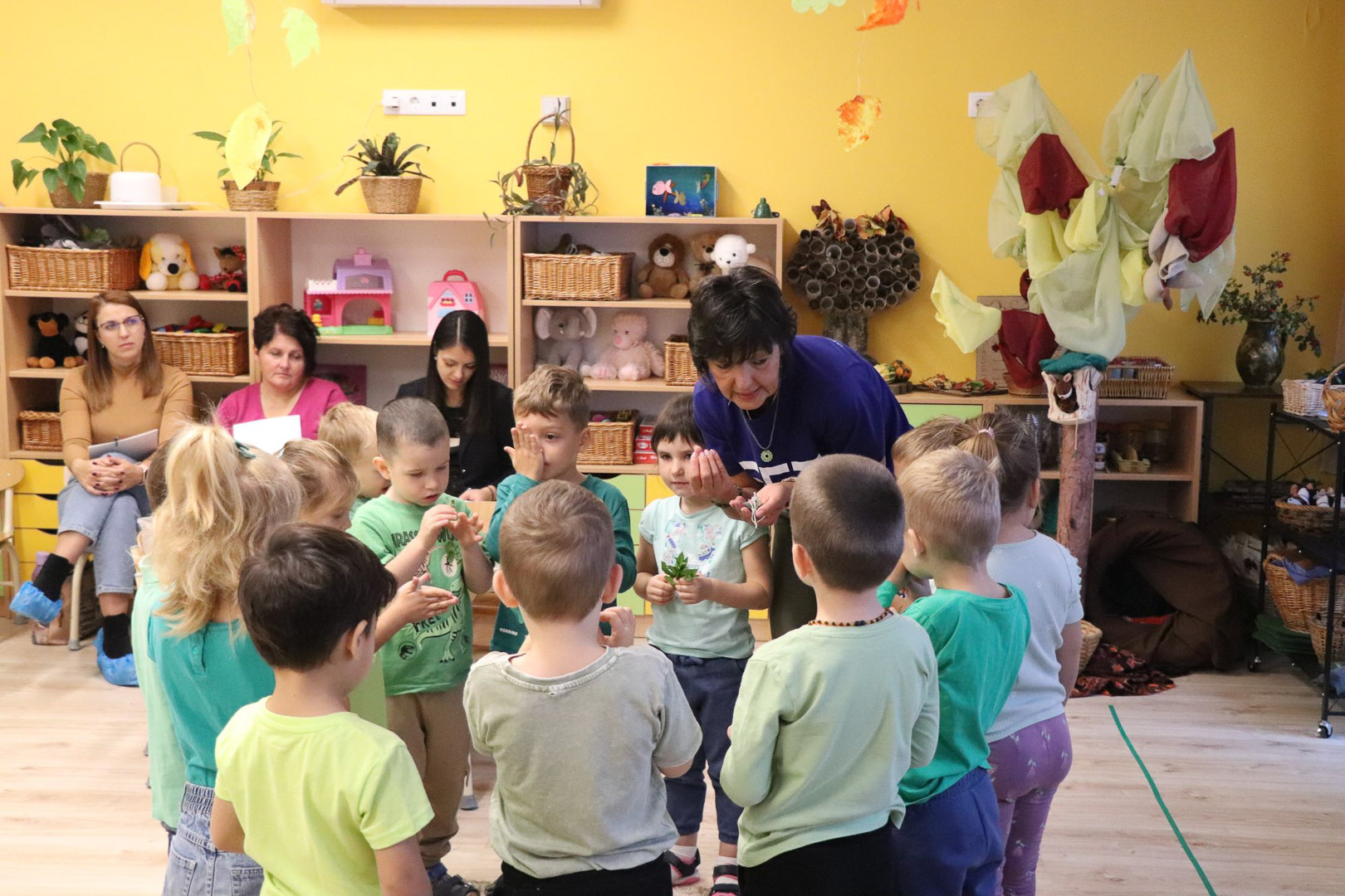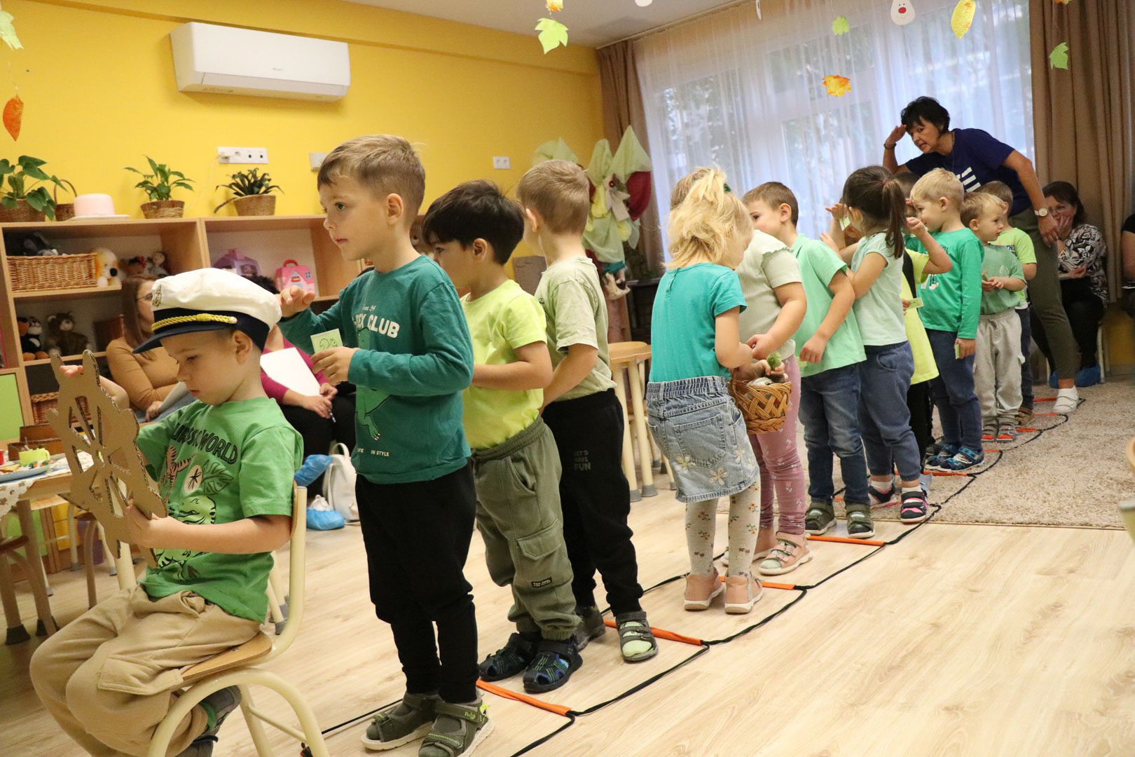 Tóth Ágnes szakvezető óvodapedagógus irányításával a Tulipán csoportban különleges vendég járt: Tóni, a tőkésréce. A gyerekek közösen segítettek neki hazatalálni, miközben játékos, élményalapú feladatokon keresztül fedezték fel a természet világát. Térképet használva bejárták a csoportszobát, és hátizsákjukból mindig a megfelelő eszközt választották ki a feladatok megoldásához. Útjuk során a mókus odúban diót gyűjtöttek, a rókalyuknál a gyógynövények családjával ismerkedtek meg, a nyuszival pedig kertészkedtek, répát szedtek, az éjszaka vadászó bagolynak is segítettek egérre vadászni. Végül megtalálták Tóni otthonát, a tavat, amelyet közösen megtisztítottak a hulladéktól, miközben a „zöld hídon” átkelve a környezetvédelem fontosságáról is tanultak.