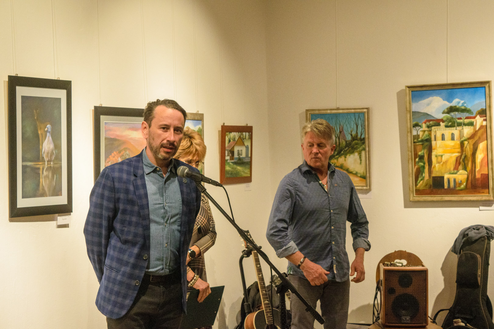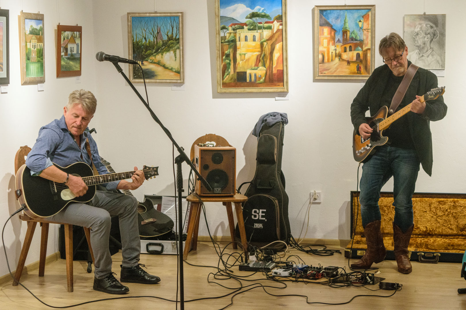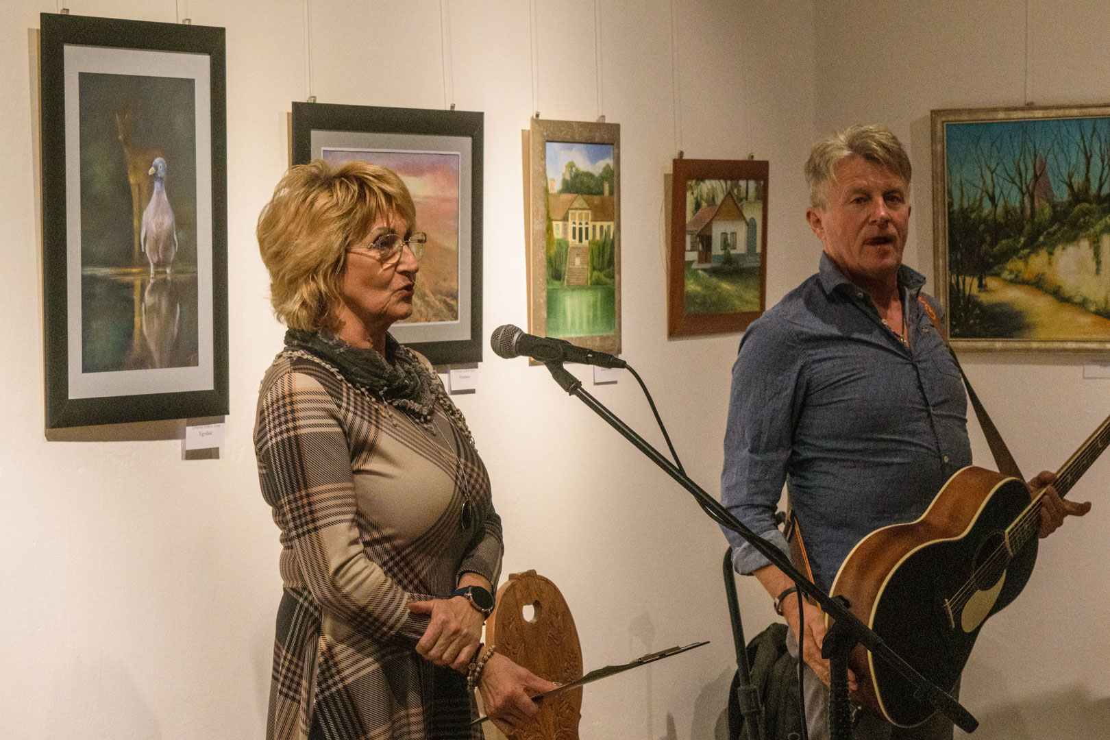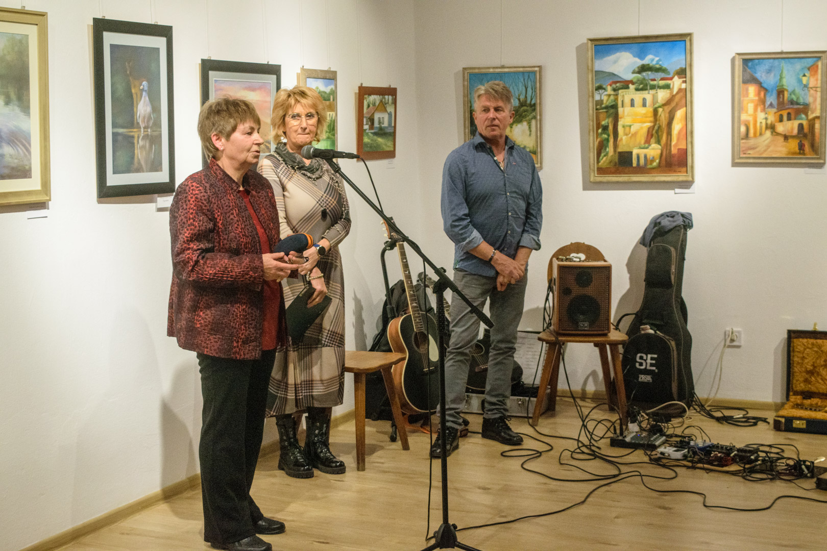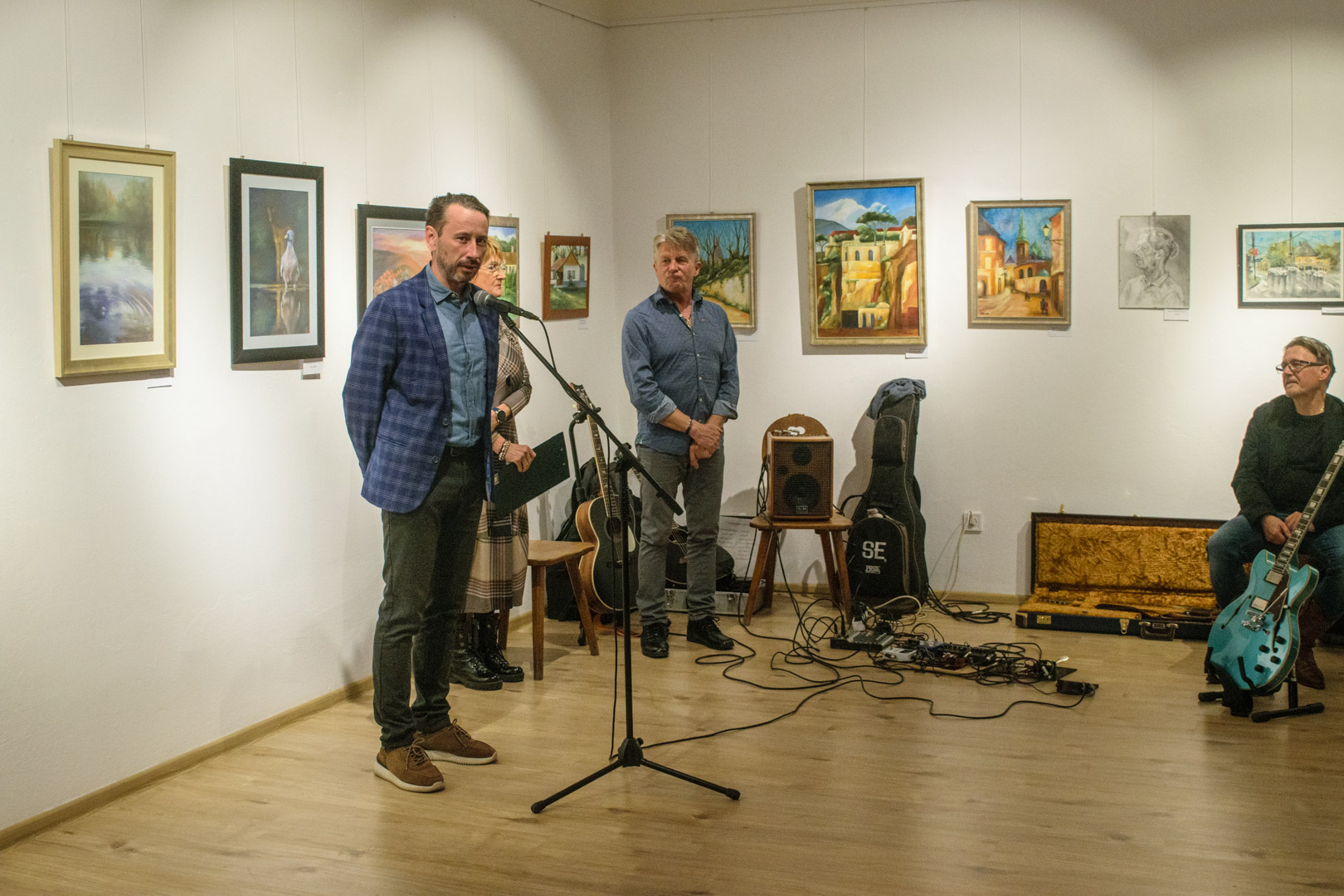 A hangulatot a Mallnitz-duó két gitárosa – egyben a művészetek nyári táborának festőművész-tanárai –, Korbely István és Zoltai Attila teremtette meg, két Pink Floyd dal instrumentrális változatának eljőadásával. A közönséget ezután Fabó Éva köszöntötte, elmondva, hogy Szarka József a múzeum igazgatója családi elfoglaltsága miatt nem tud jelen lenni, de üdvözletét küldi a kiállítóknak és a közönségnek egyaránt. A múzeum restaurátor-művésze ezután az alkotás mibenlétéről, a műhely csendjéről, a megnyitó zsongásáról, a derűről és a 22 alkotó – mint közösség – ünnepéről szólt, leszögezve, hogy az alkotás lényege nem a tökéletesség, hanem a nyitottság. Ennélfogva pedig az alkotás nem a művészek kiváltsága, hanem mindannyiunké, s aki megtalálja az örömöt az alkotásban, az megtalálja az örömöt az életben is. Dr. Bartolák Csaba alpolgármester is üdvözlet tolmácsolásával kezdte megnyitóbeszédét, nevezetesen Hodálik Pál polgármester üdvözletének átadásával, aki szintén más elfoglaltság miatt nem tudott eleget tenni a meghívásnak. Ezután az alpolgármester gimnazista élményeit idézte fel, amikor Szuhaj György péntek délutáni alkotókörének részese lehetett, igaz, csak modellként. A törelemmel végigült két óra emlékének megosztása után reményét fejezte ki, hogy Szarvas városnak is van szerepe az alkotások megszületésében, s örömét, hogy részese lehet a megnyitónak valamint reményét, hogy jövőre is találkozhatunk a szarvasi művészetek nyári táborában született alkotásokkal. Terhesné Szekera Ilona a táborozók nevében köszönte meg a megnyitó gondolatokat valamint a Tessedik Sámuel Múzeumnak, hogy minden évben biztosítja számukra a helyszínt, a Ruzicskay Alkotóházat, valamint alkotótársainak a táborban való részvételt, a kiállításra rendelkezésre bocsátott rajzokat, festményeket. Nem utolsó sorban pedig Korbely Istvánnak a tábort vezető festőművésznek és a vendég művész-tanárnak, Zoltai Attilának a közreműködést. Korbely István ezután név szerint is bemutatta a 2025-ös tábor 22 résztvevőjét, akik 42 képpel szerepelnek a kiállításon.