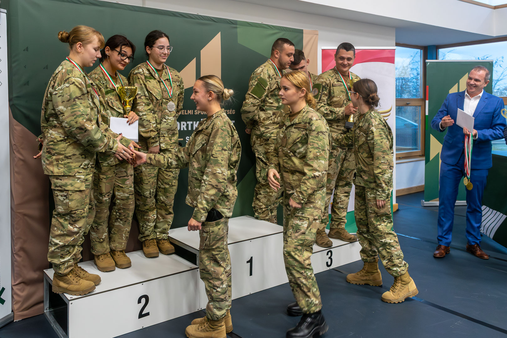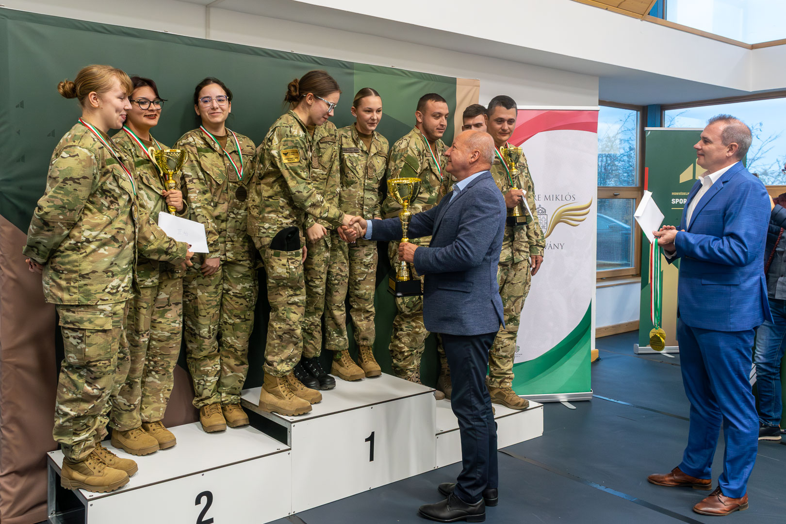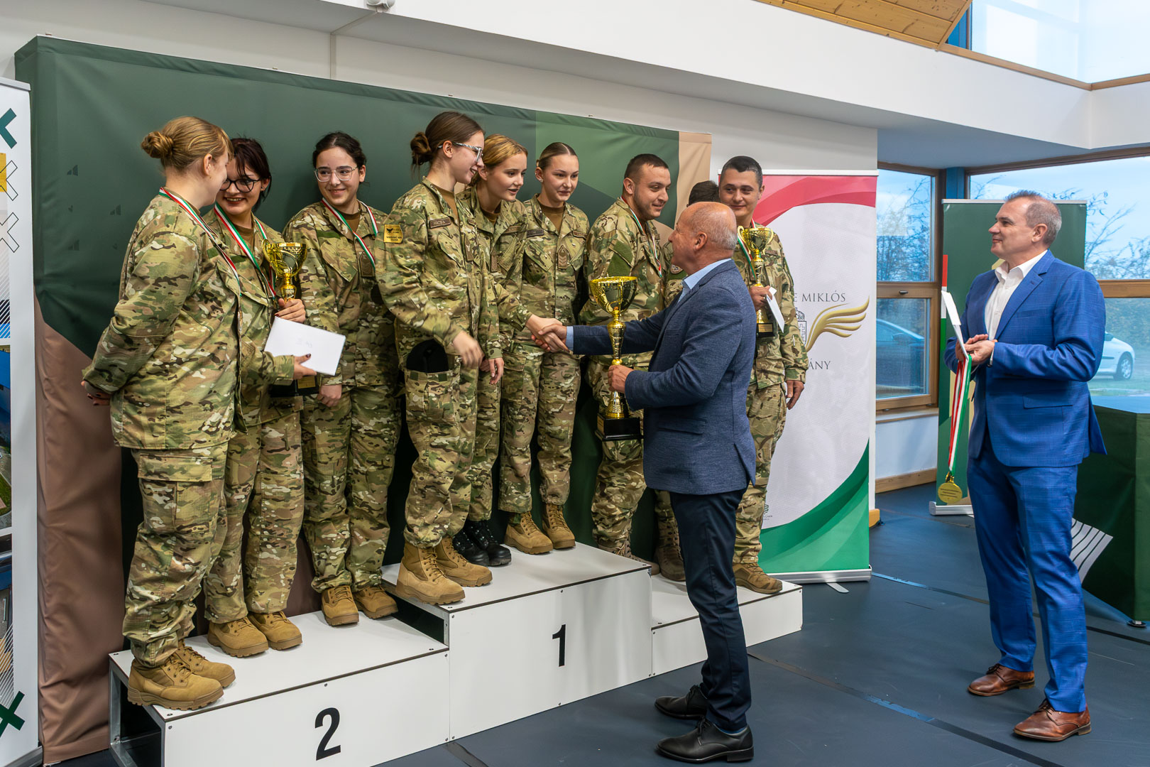A három számot – álló, 10 méteres távon légfegyver; álló, 25 méteres távon kisöbű félautomata fegyver; és fekvő, 50 méteres távon, kisöbű sportpuska – magában foglaló verseny helyezettjei a következő csapatok: harmadik helyezett a Magyar Honvédség Dombay Miksa 4. Területvédelmi Ezred vitéz Fekete Imre 101. Területvédelmi Zászlóalj csapata; második helyezett a Székely Mihály Technikum kadétjainak csapata; első helyezett pedig a Vajda Péter Evangélikus Gimnázium kadétjainak csapata.