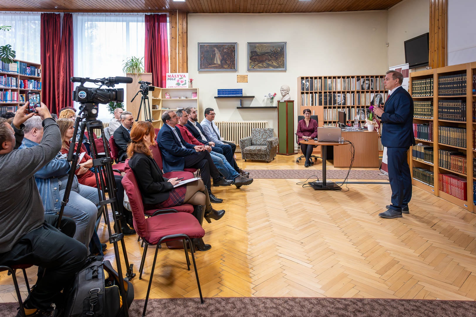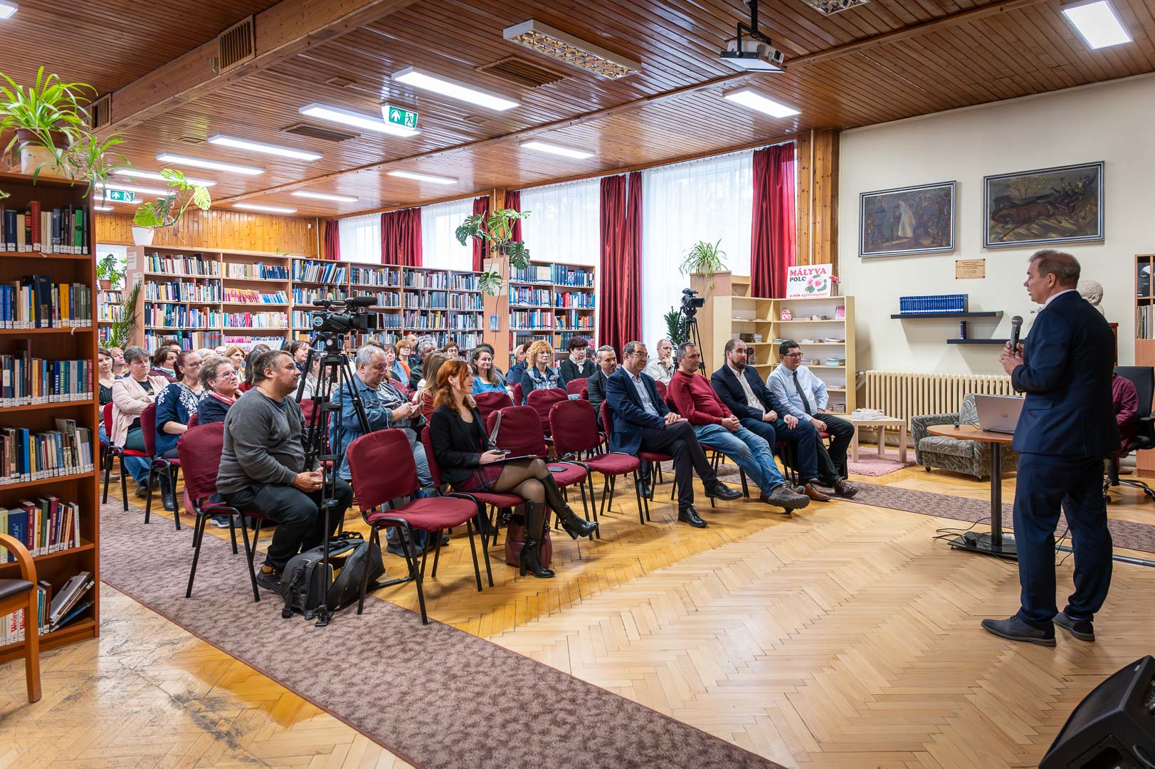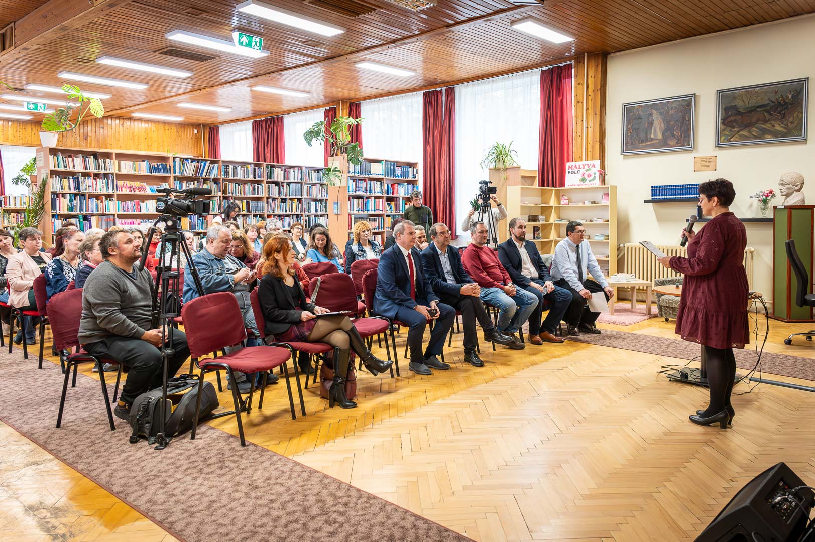 November 12-én, a meghívott vendégeket Molnárné Pető Beáta könyvtárigazgató köszöntötte, név szerint is megemlítve Hodálik Pál polgármestert, Dézsi Jánost, a Magyar Könyvtárosok Egyesülete Békés Megyei Szervezetének elnökét, Szarka Józsefet, a Tessedik Sámuel Múzeum igazgatóját, Juhász Zoltánt a Békés Megyei Könyvtár igazgatóját. A kollégákat és vendégeket köszöntve Dézsi János gratulált a szarvasi könyvtárnak születésnapja alkalmából. Egy villanásnyi időre megemlítette a friss Nobel-díjas, gyulai születésű Krasznahorkai Lászlót, de rögtön le is szögezte, hogy – bár gyulai könyvtárosként szívügye Krasznahorkai – ez a nap a Szarvasi Városi Könyvtáré. Adatokkal is előállt, mégpedig azzal, hogy a 2023-as statisztikákból a könyvtár beiratkozott olvasóinak és az akkori átlag könyváraknak felhasználásával kikalkulálta, hogy egy évben a könyvtár 53 millió forintot spórol az olvasóinak, nem mellesleg nagyságrendileg ugyanekkora az éves működési költsége is. Az internet világának információdömpingjét is megemlítve nagyon fontosnak nevezte, hogy a könyvtárosok hiteles információkkal szolgáljanak az olvasóknak. Szarka József köszöntőjében bevallotta, hogy egyetemistaként dolgozott a tanszéki könyvtárukban, ismeri tehát a könyvtárosok mindennapjait is, tudja, hogy a 70 év alatt milyen rengeteget változott a katalóguscédulától kezdődően a lyukkártyán, személyi számítógépen és okostelefonon át a mesterséges intelligencia koráig a könyvtár. Az olvasói szokások is megváltoztak, de a szarvasi könyvtárosok megállták minden átalakulás idején a helyüket. Hodálik Pál a könyv értékőrző szerepéről szólt, elmesélve, hogy a fiatalkora szerepjátékához nélkülözhetetlen könyv ma már sokszorosát éri. Gimnáziumi könyvtár-élményét is megosztotta a közönséggel, elmesélve, hogy – miután szüksége volt rá – átdolgozta a szerzői katalógust cím szerinti katalógussá. Arról is beszélt, hogy polgármesterként is rengeteget kell olvasnia, igaz nem mindig azt, ami választ, hanem azt, amit muszáj. Elmondta még, hogy a Szarvasi Városi Könyvtár jól teljesít, nemcsak a hagyományos könyvtári szolgáltatások tekintetében, hanem mint közösségi tér is. Ajándékot is hozott, egy orchideát, mondván, hogy a 75 éves születésnapon ellenőrizni fogja, rendben van-e a virág.