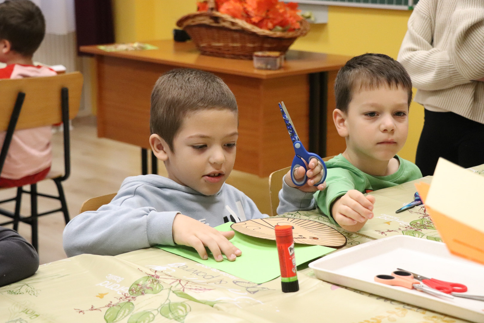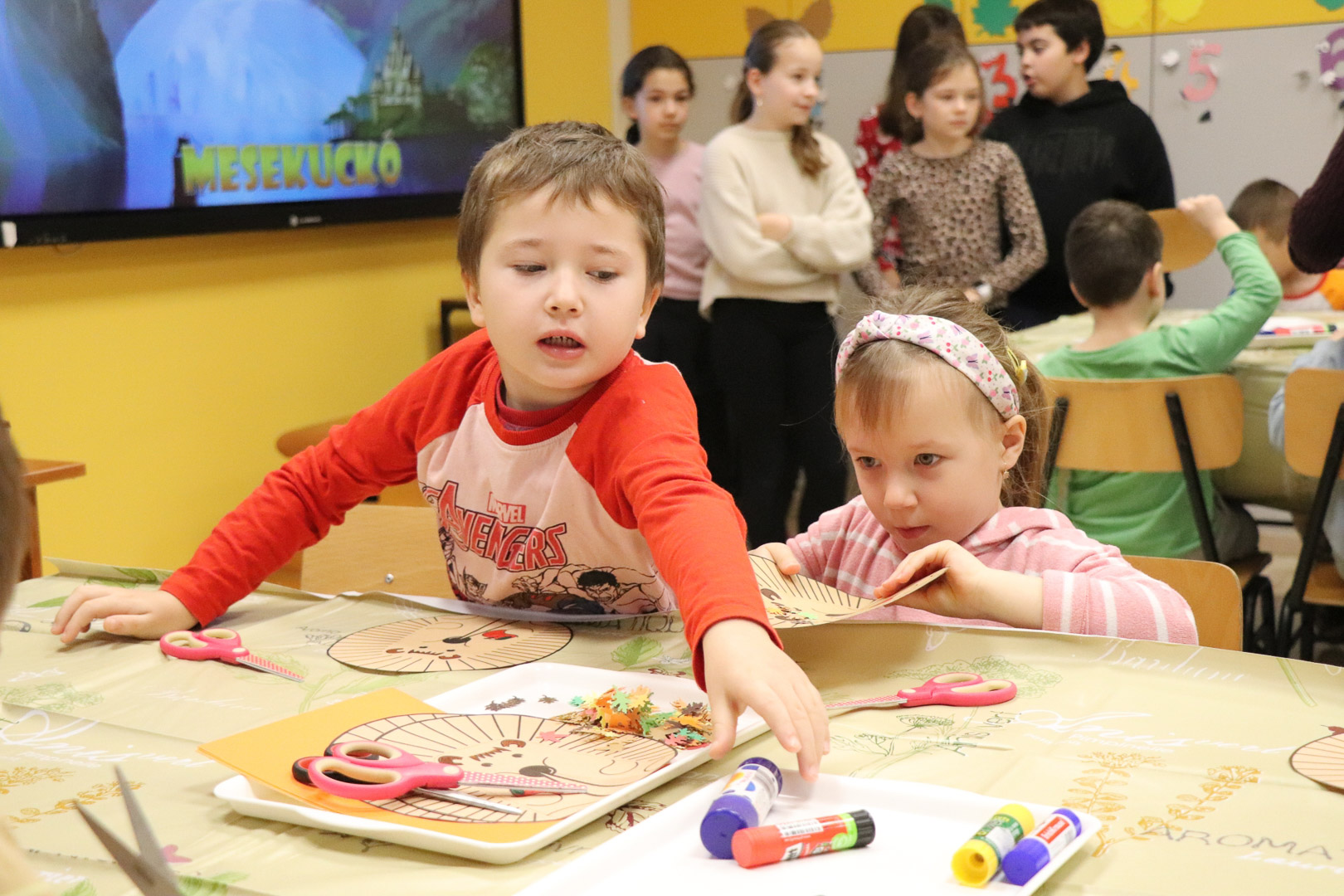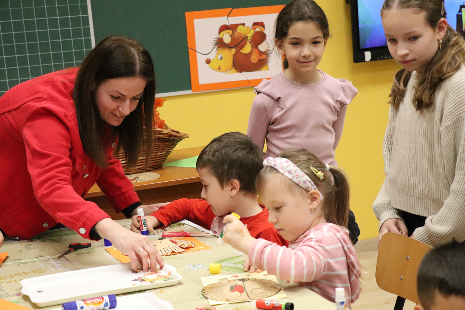 Már csak pár hét és vége lesz az ősznek. A természet most készül fel a hosszú, hideg télre. A színes, lehulló levelek és termések kupacaiban azonban megbújik valaki! November 18-án, idei első iskolára hangoló játszóházunkban a kíváncsi gyerekekkel közösen kutattuk, kerestük, hogy ki lehet az?!  A levelek, termések alatt meleget kereső kicsi állatot gyorsan megtaláltuk! Egy kis szúrós gombóc lapult a levelek alatt! Hosszú téli álma előtt még egy jó nagy kalandra indult velünk. Így rögtön megismerkedtünk vele is, és egymással is. Memóriajátékban a párját is megtaláltuk az interaktív táblán, majd pihenésképpen meghallgattuk Sün Balázs történetét. A mese után sok-sok ügyes kis kézre volt szükség, hiszen mindenki elkészíthette saját sünijét.