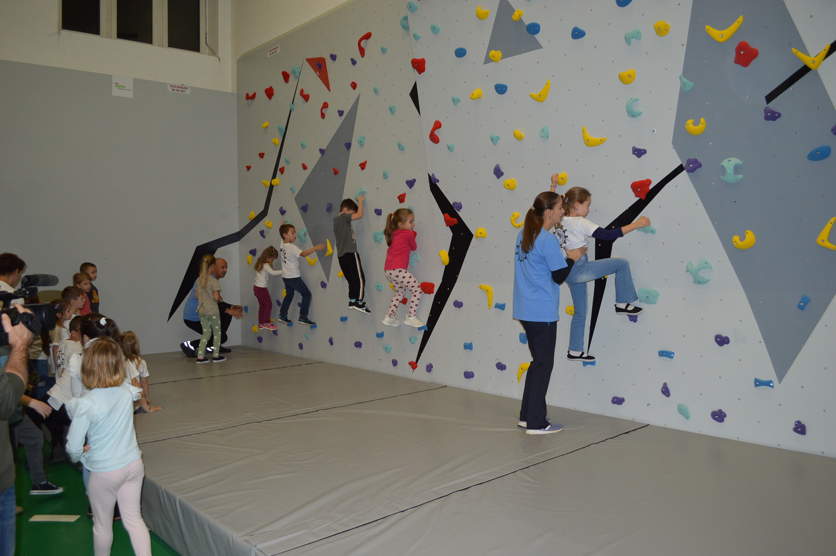 A frissen elkészült, modern és biztonságos mászófal nagy izgalmat váltott ki a gyermekek körében. Az átadó ünnepséget követően a bátrabbak máris kipróbálhatták a falat, szakértő felügyelet mellett.