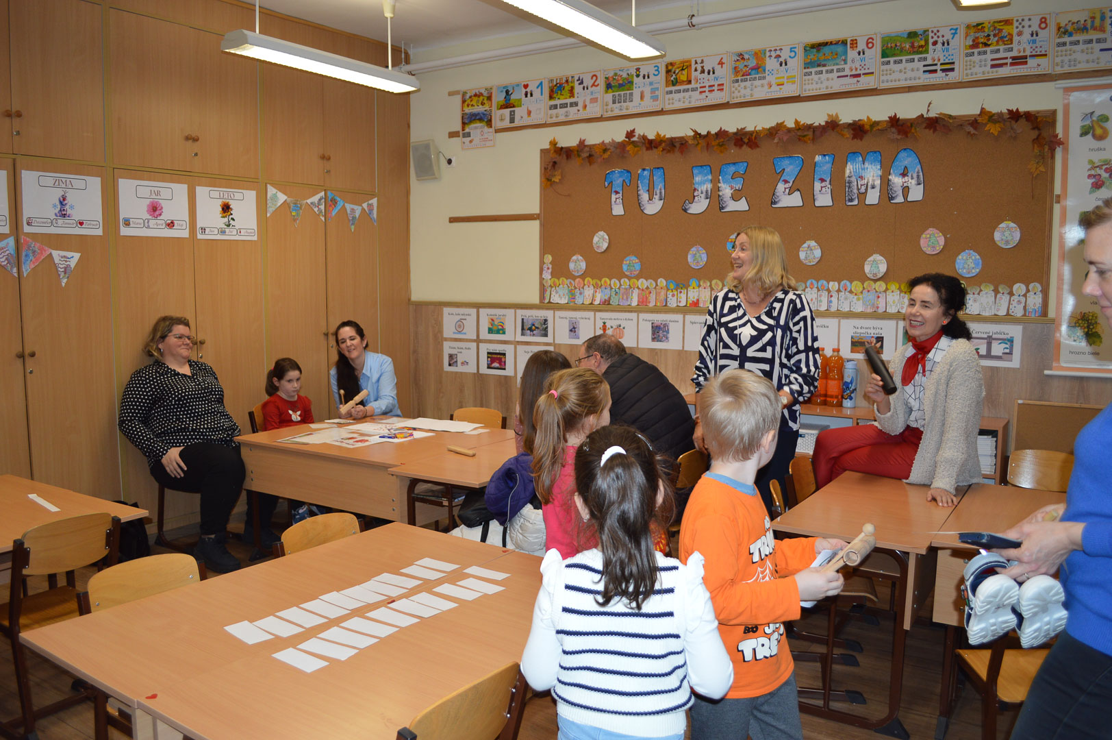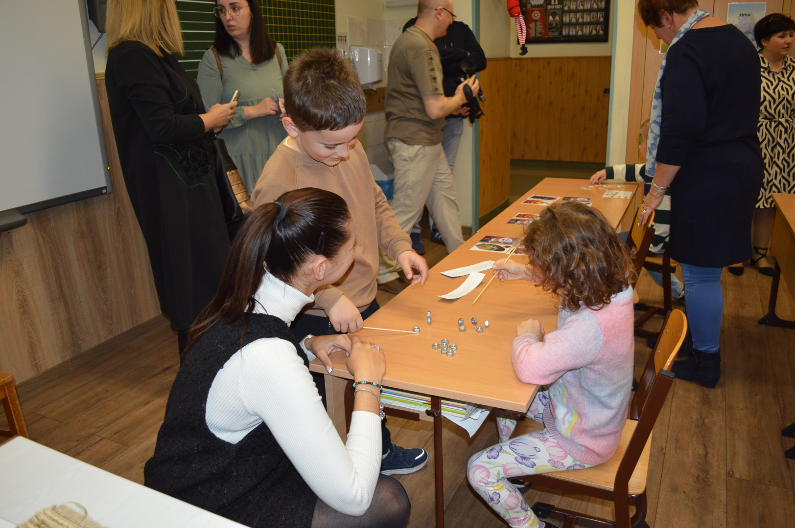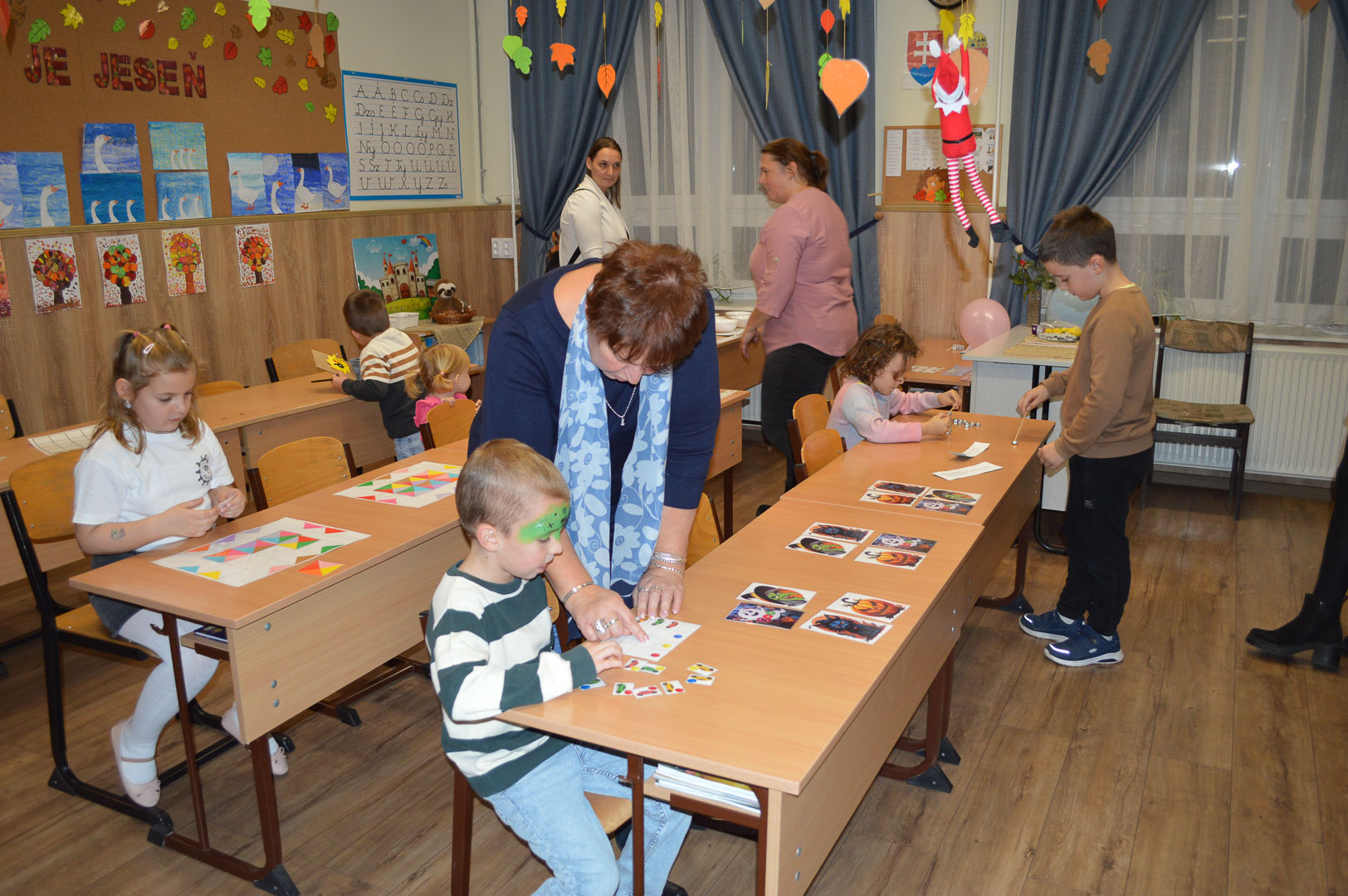 Az érdeklődő sokaság ezután számos állomáson próbálhatta ki magát. Volt kézműves sarok, ahol színes ceruzák, ragasztó és papír segítségével saját kis alkotások születtek; tornaszoba ügyességi feladatokkal, ahol játékos formában mozgathatták át magukat a gyermekek. Angol és szlovák nyelvű foglalkozást is szerveztünk, melyen bepillantást nyerhettek az iskolánkban folyó nyelvi oktatásba a megjelentek; valamint játékbarlang, ahol logikai játékok várták a kíváncsi gyerekeket. A vidám hangulatot arcfestés, és a szabadulószoba nyújtotta izgalmak tették még teljesebbé. Amíg a gyerekek játszottak, addig szüleik a teaházban beszélgethettek, cserélhettek hasznos információkat.